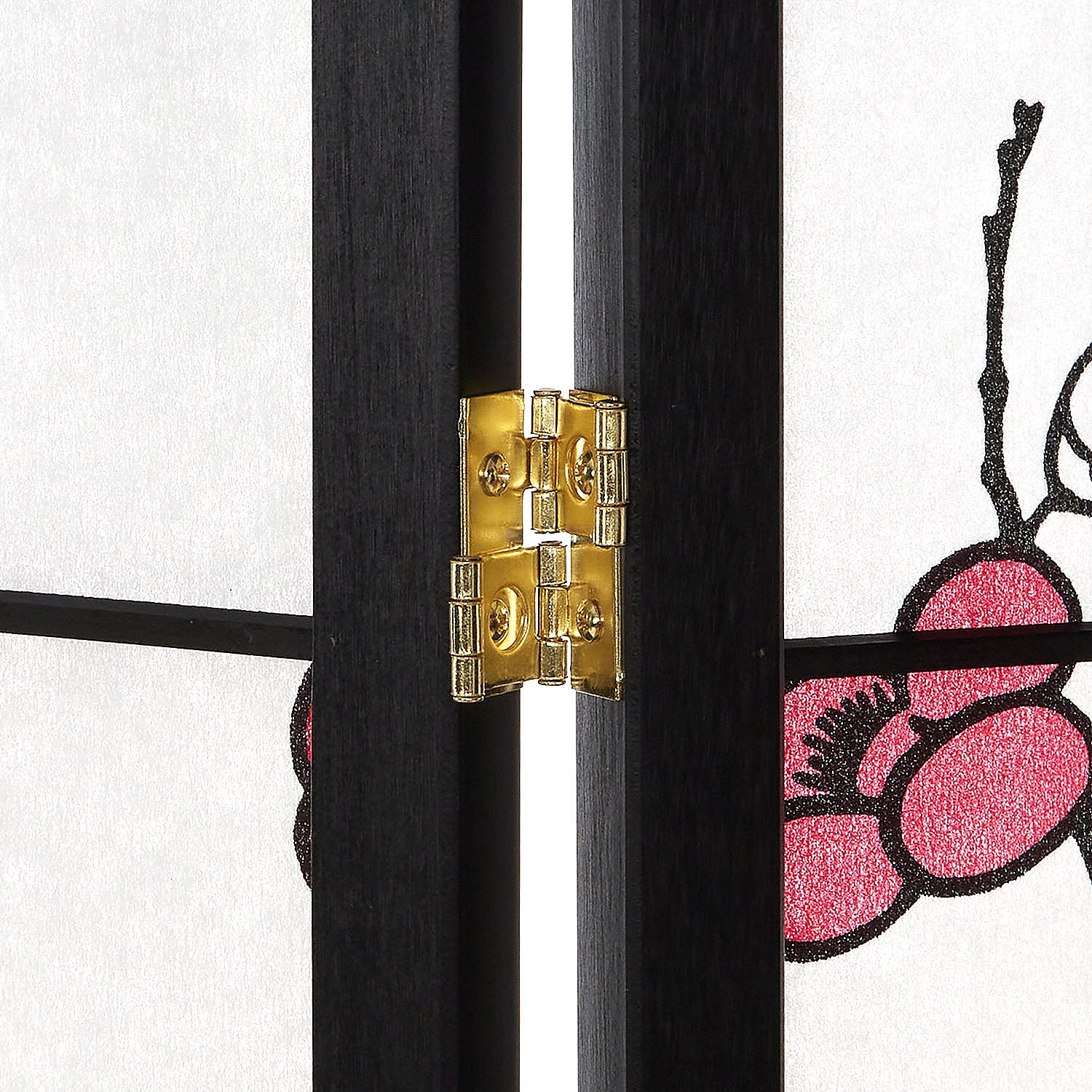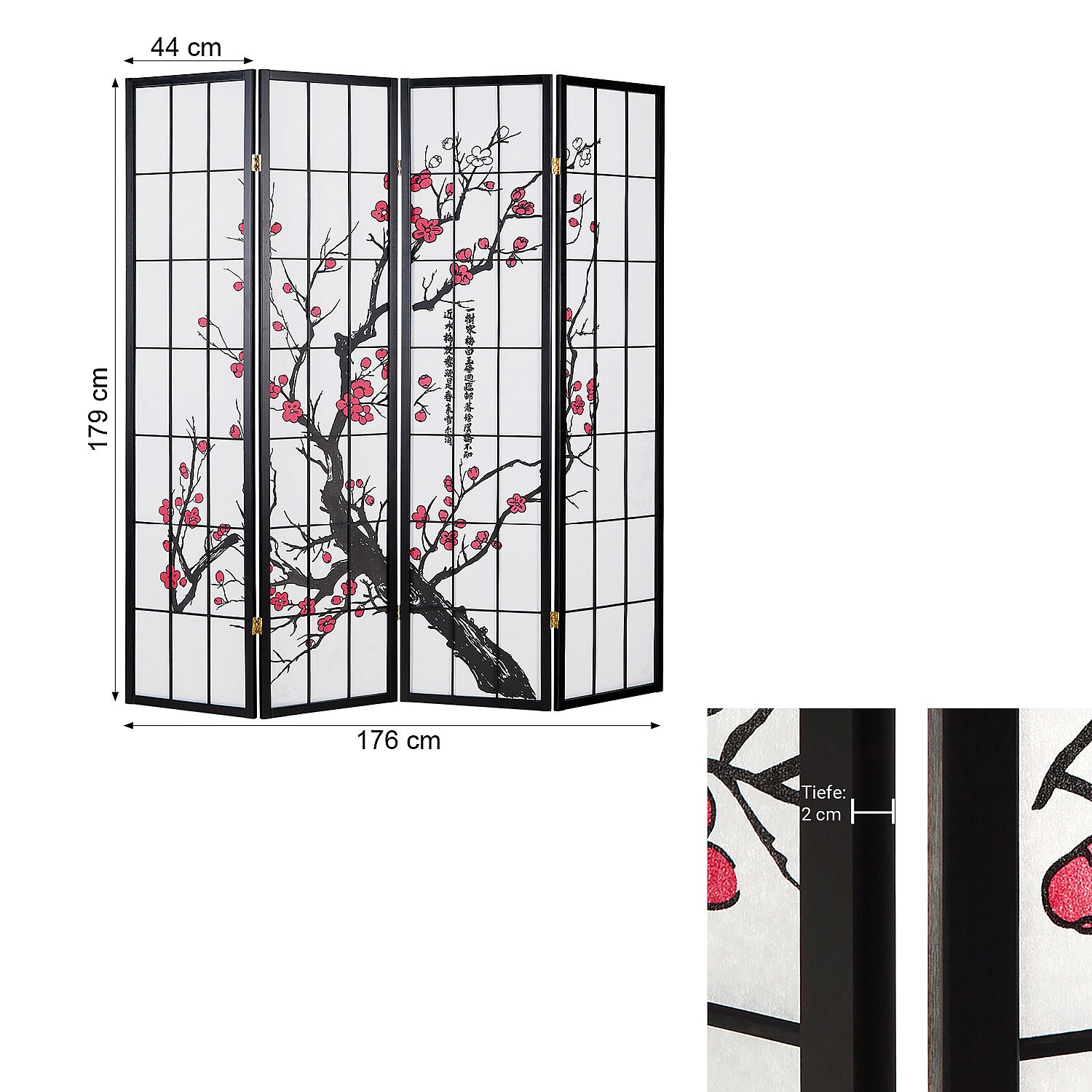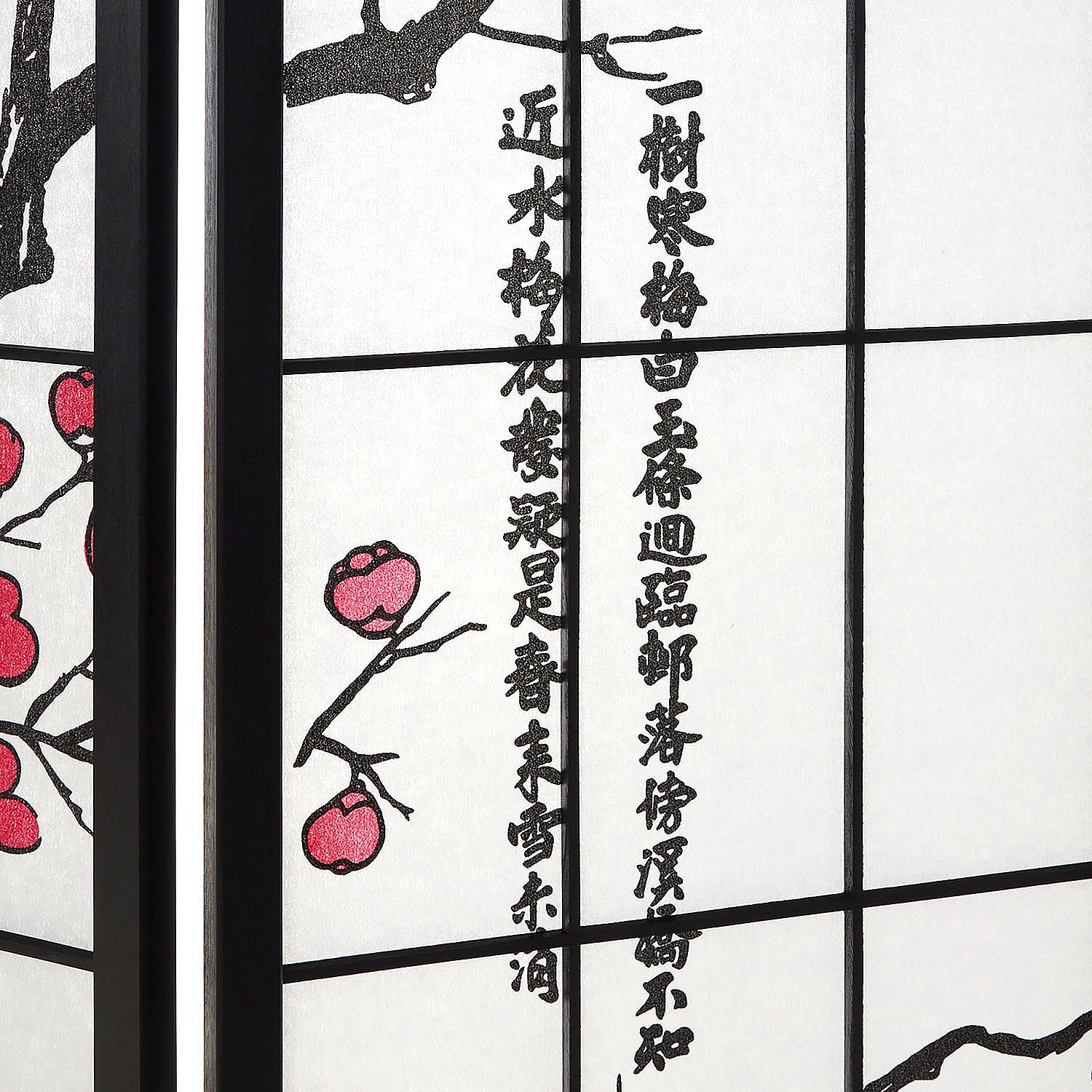 Divisorio SucceBuy, Divisorio Giapponese a 4 Pannelli con Motivo Fiori di Ciliegio, Portatile, in Legno, Ruotabile a 360°, per Separare gli Ambienti