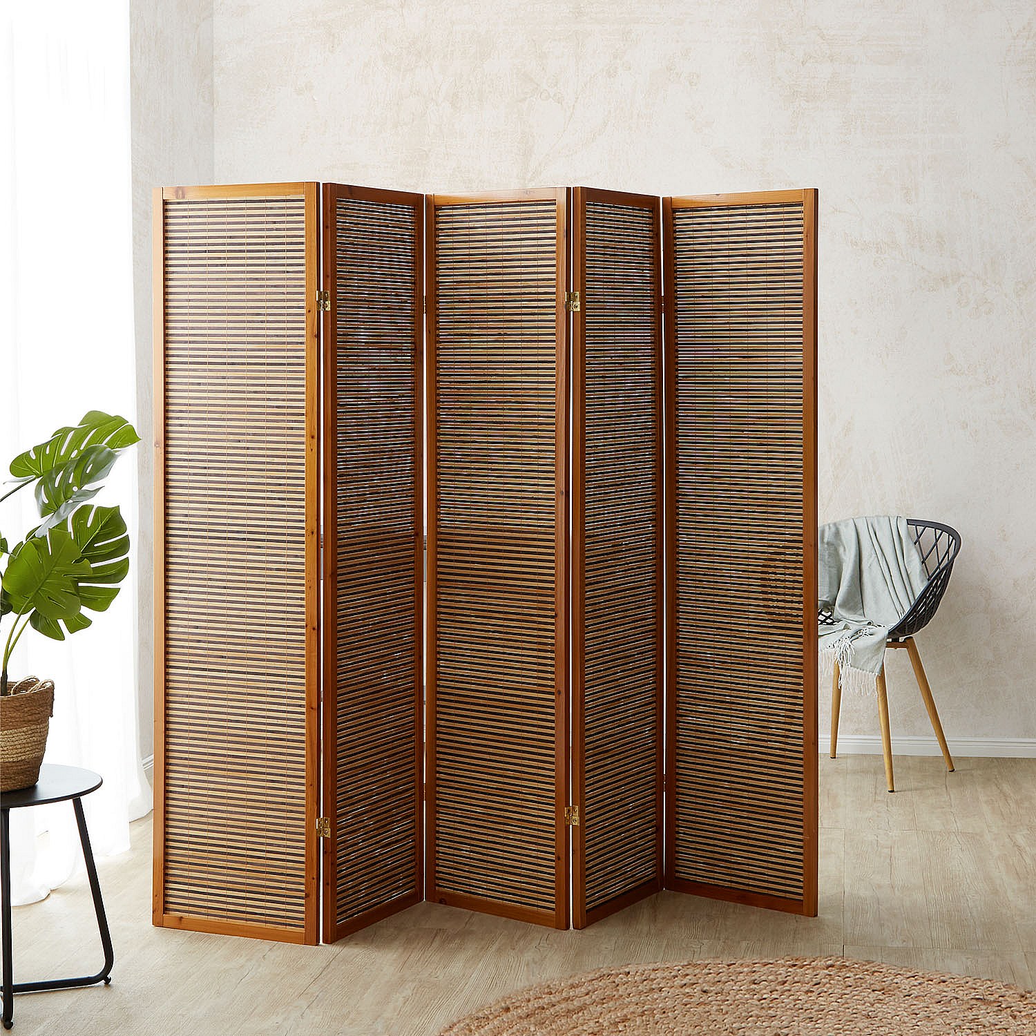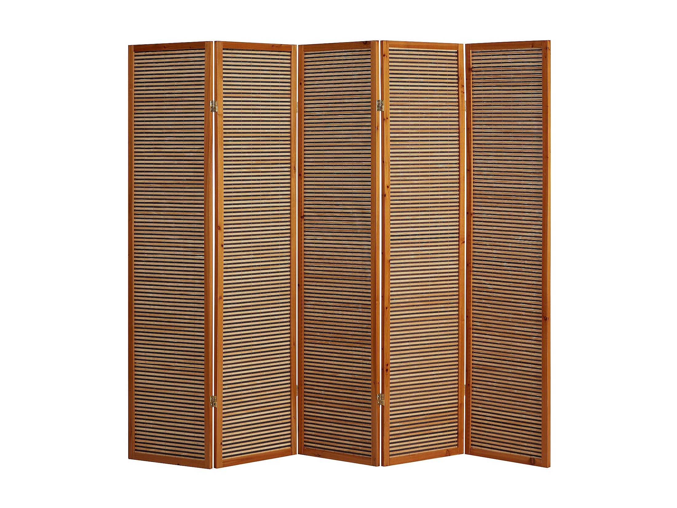Parete divisoria composta da 5 pannelli marroni in legno massello di paulownia