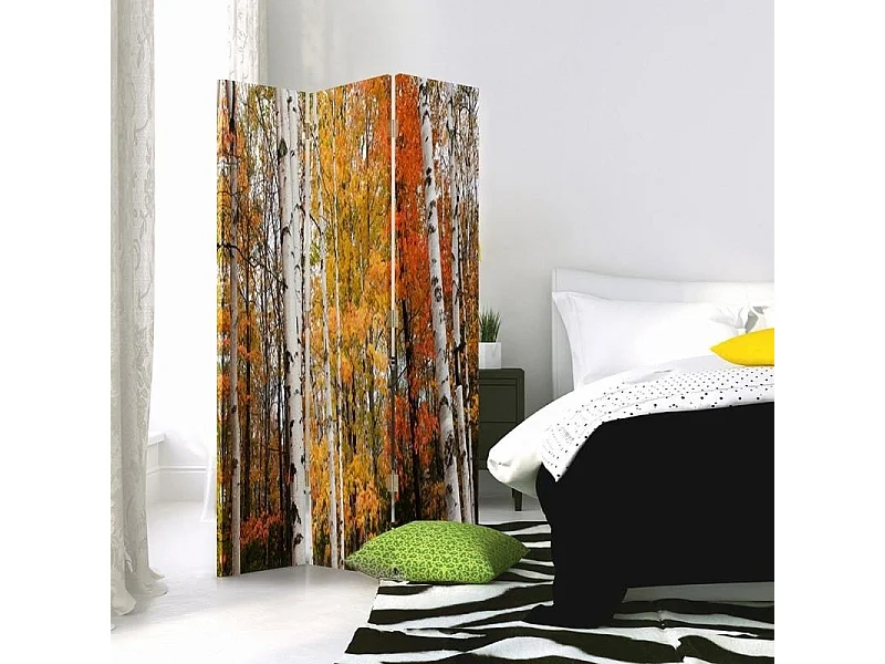 Paravento bilaterale 360, Bosco di betulle in autunno - 110x170