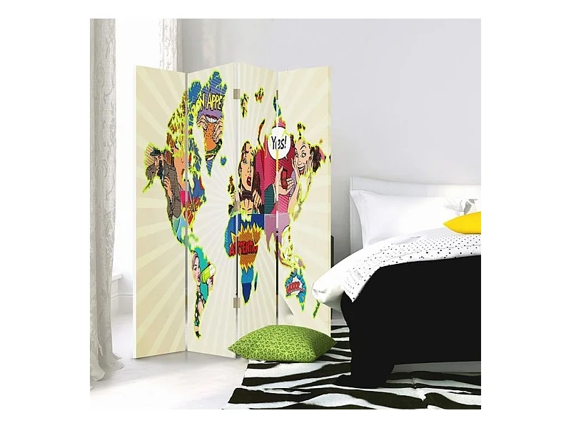 Paravento bilaterale, Mappa del mondo pop-art - 145x170