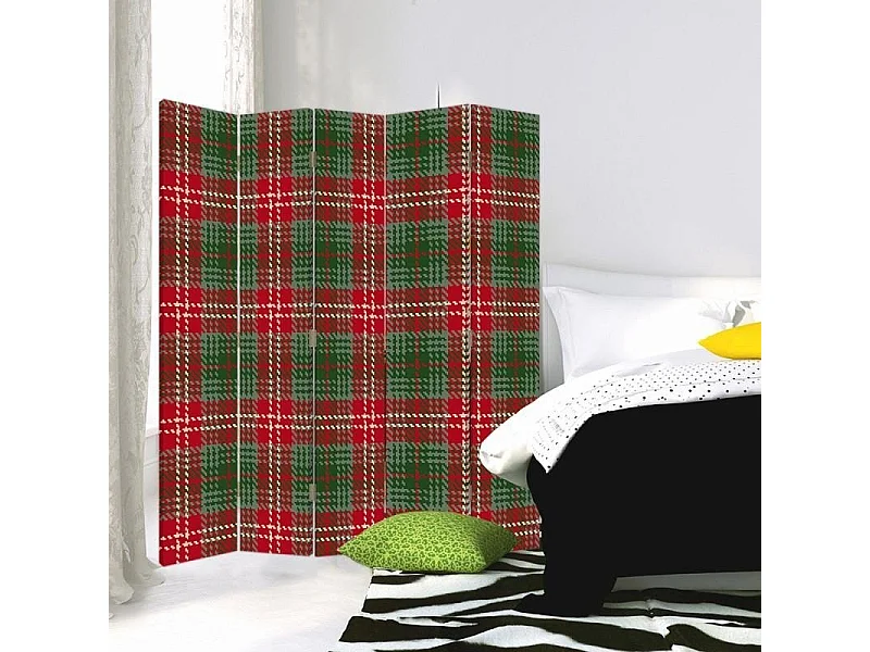 Paravento bilaterale, Motivo a scacchi rossi e verdi - 180x170