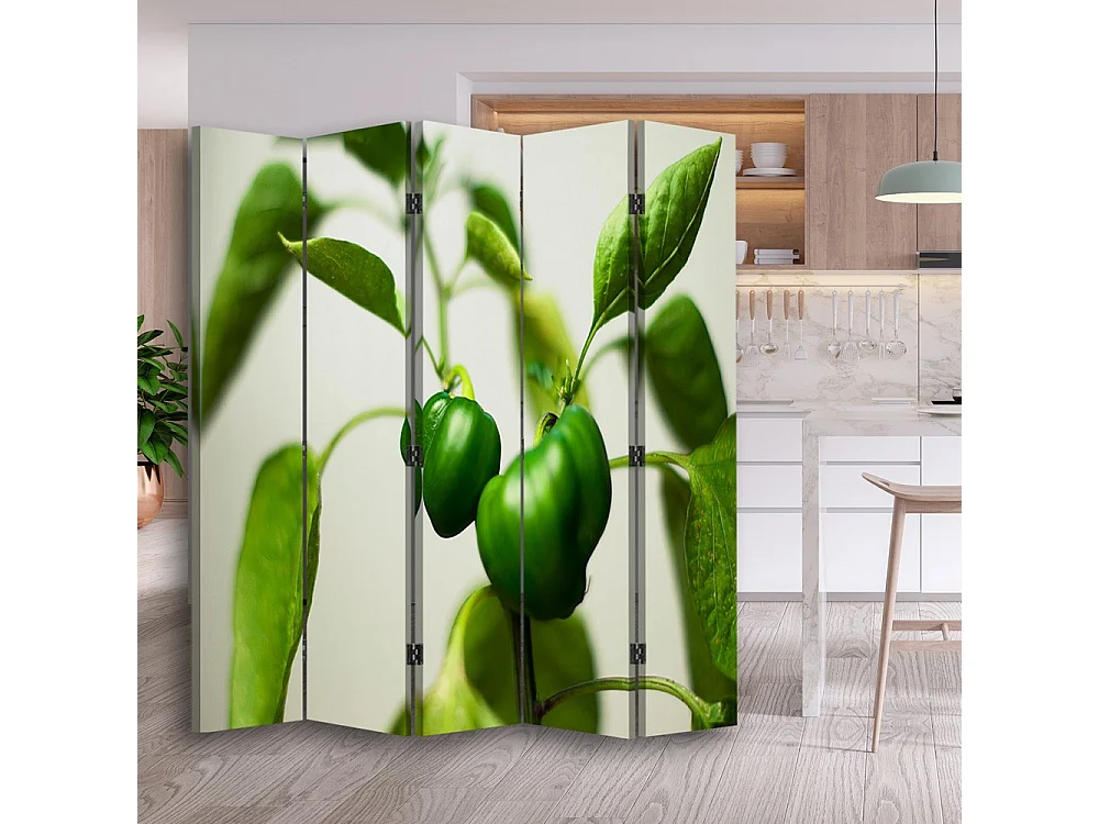 Paravento bilaterale, Peperone verde su un ramo - 180x170