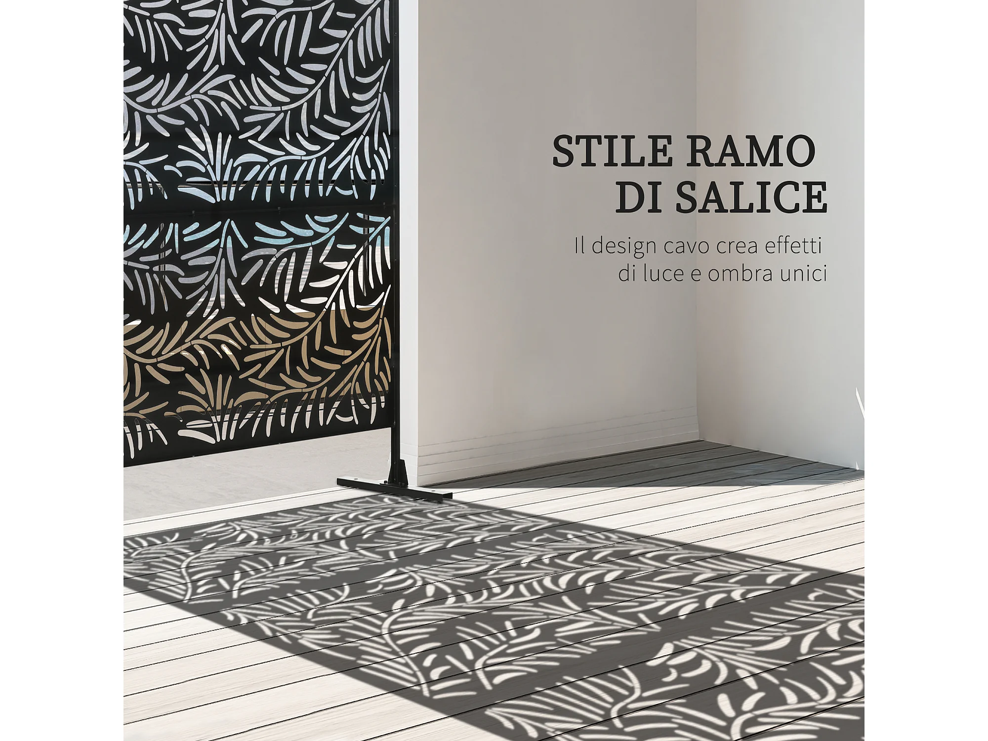 Paravento da esterno con motivi a salice e 2 piedini in acciaio nero