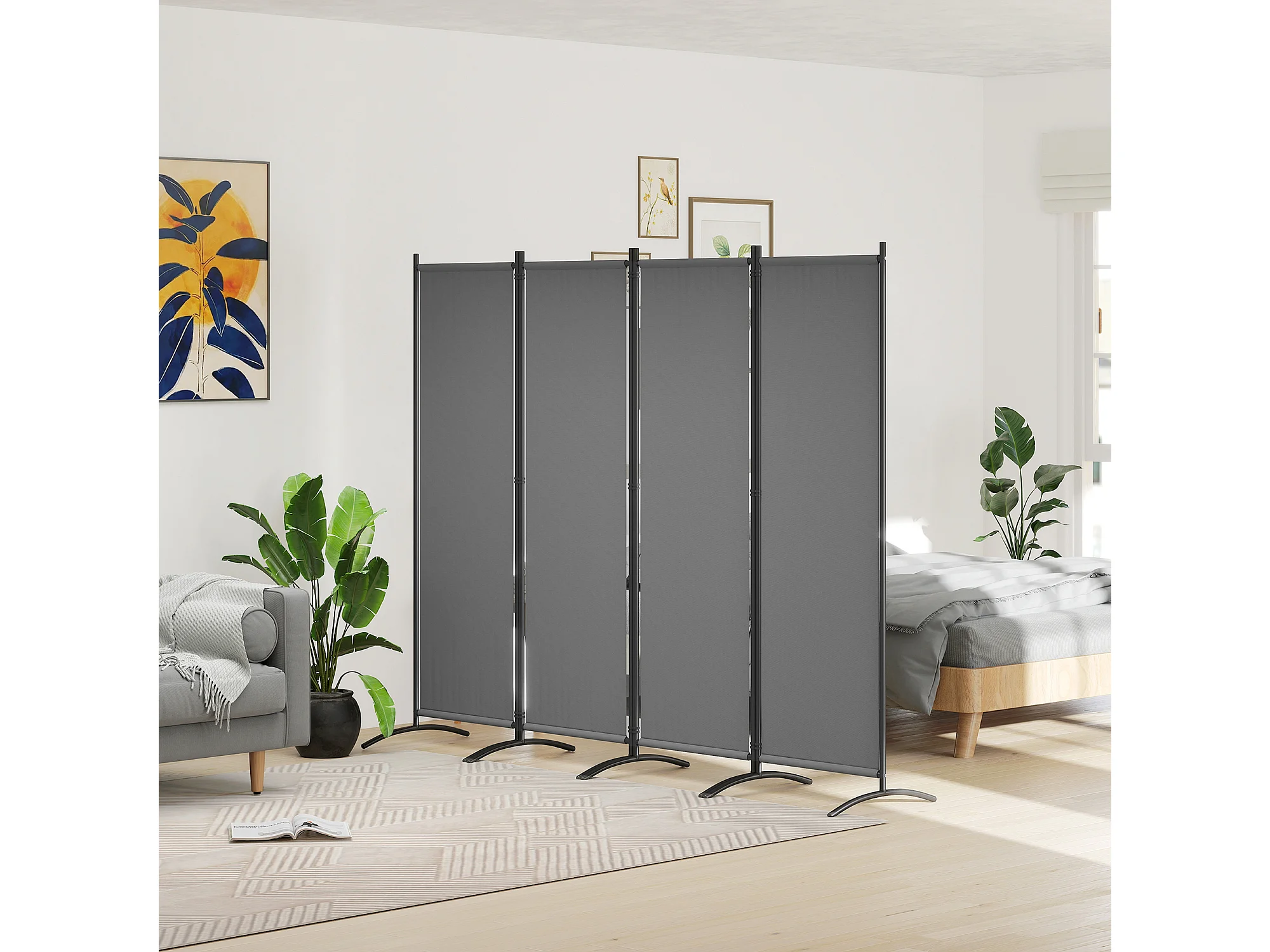 Paravento da giardino 4 pannelli pieghevoli, 221x50x172cm grigio scuro