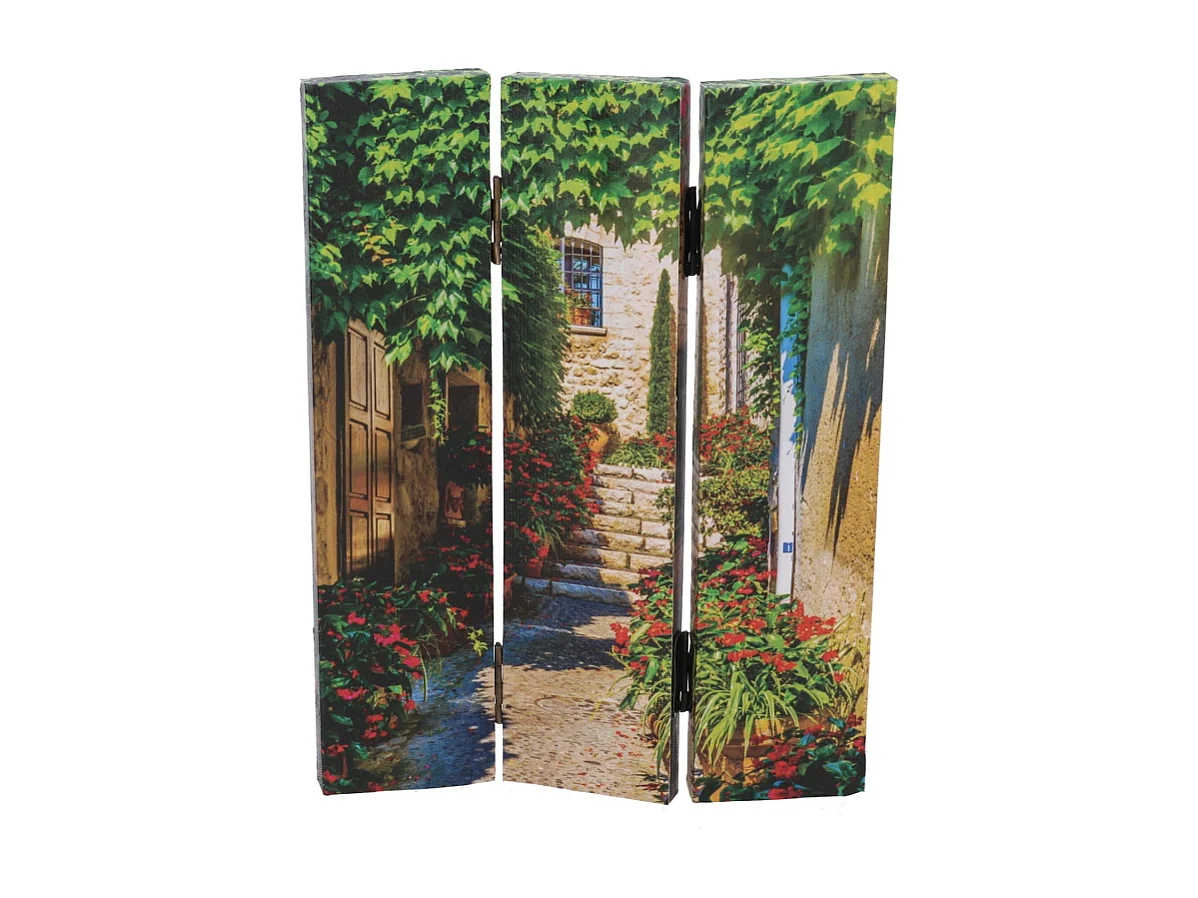 Paravento stampa 3 ante scalinata con fiori cm 120,6x2,5h180