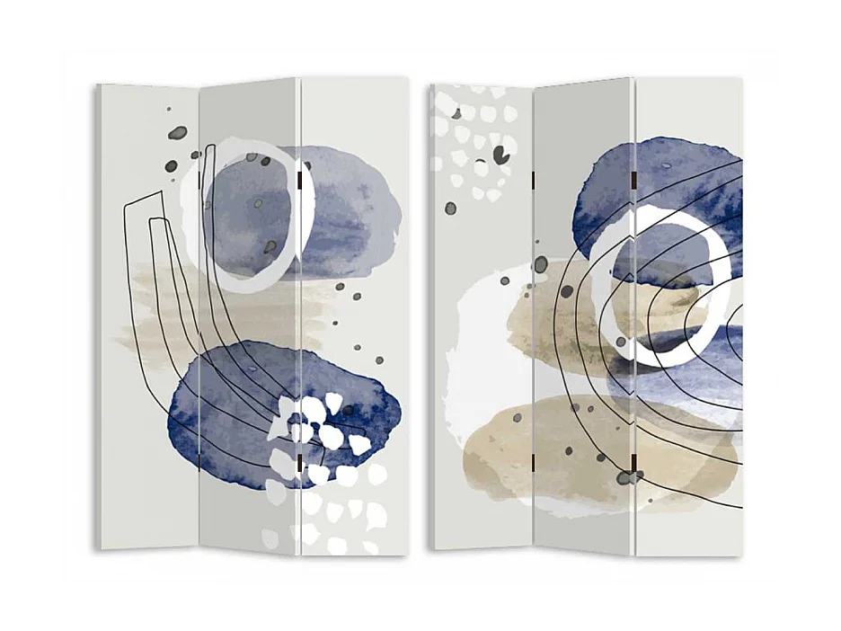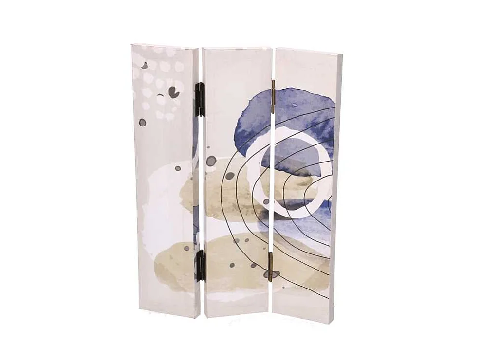 Paravento stampa cerchi bianco blu 3 ante rettangolare cm 120,6x2,5h180