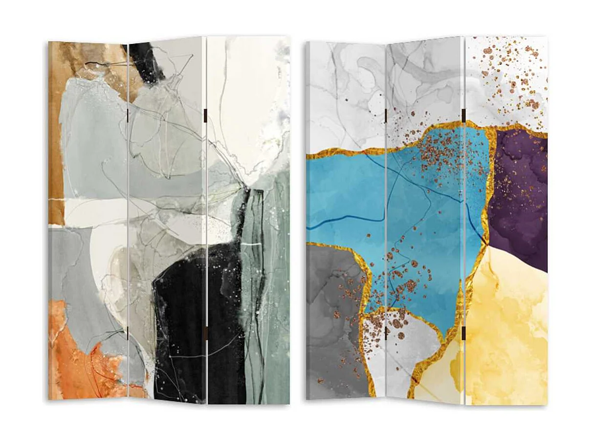 Paravento stampa astratto azzurro 3 ante rettangolare cm 120,6x2,5h180