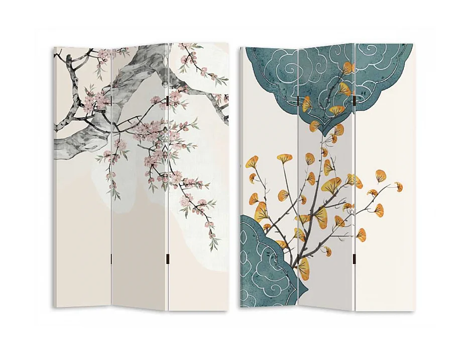 Paravento stampa rami beige 3 ante rettangolare cm 120,6x2,5h180
