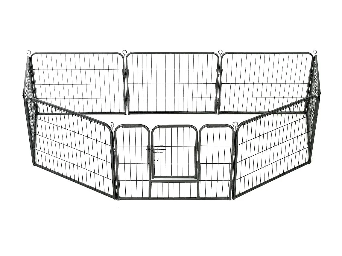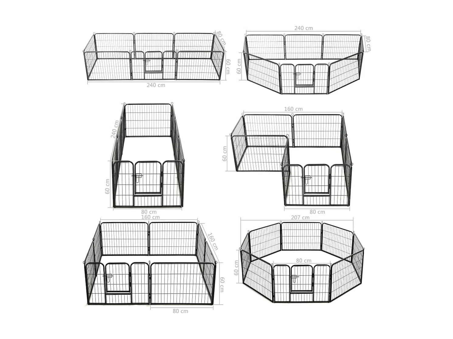 Parco per cani 8 pannelli in acciaio 60 x 80 cm recinto per cani nero 02_0000566