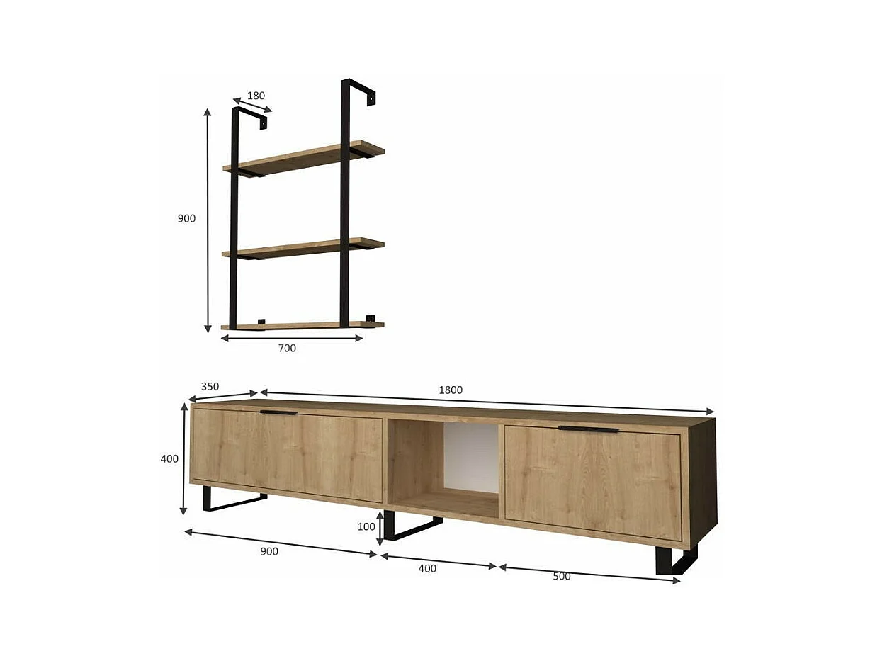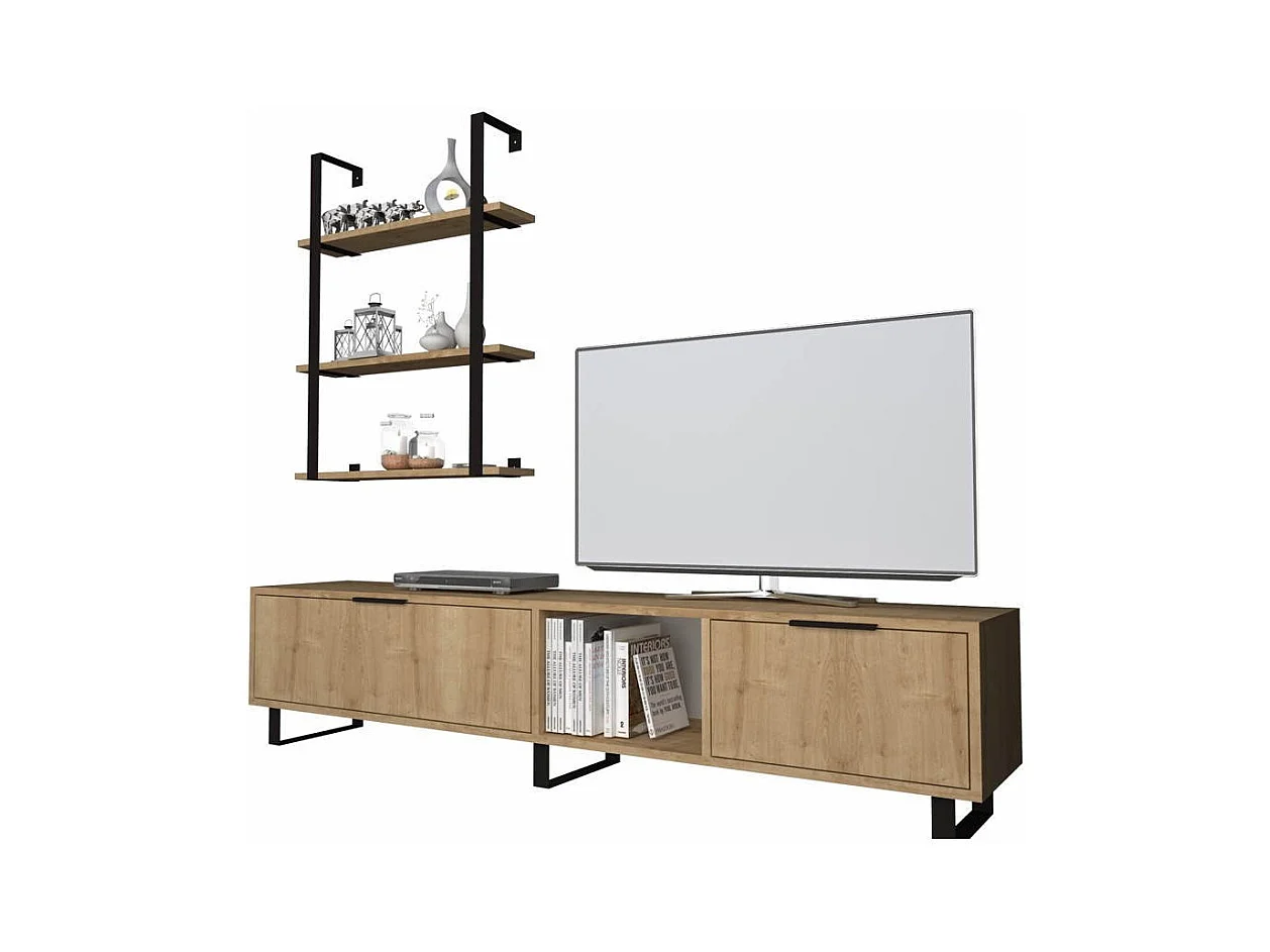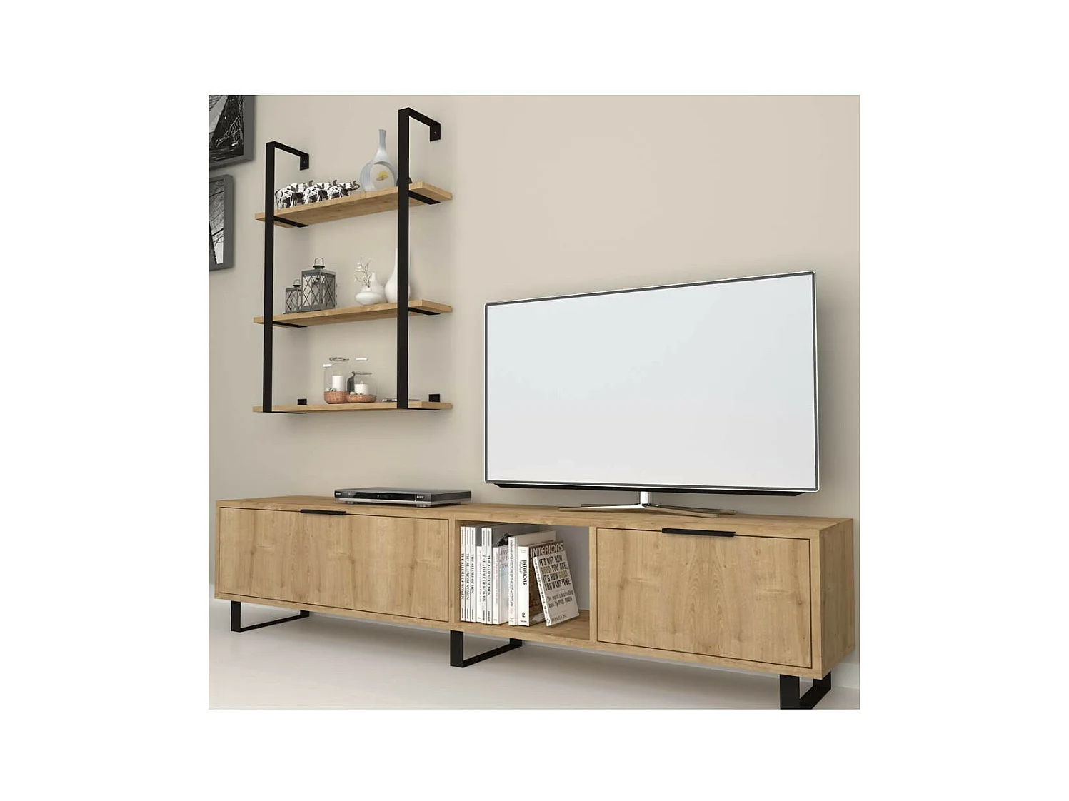 Parete attrezzata 180 cm porta tv e libreria Zenon colore rovere