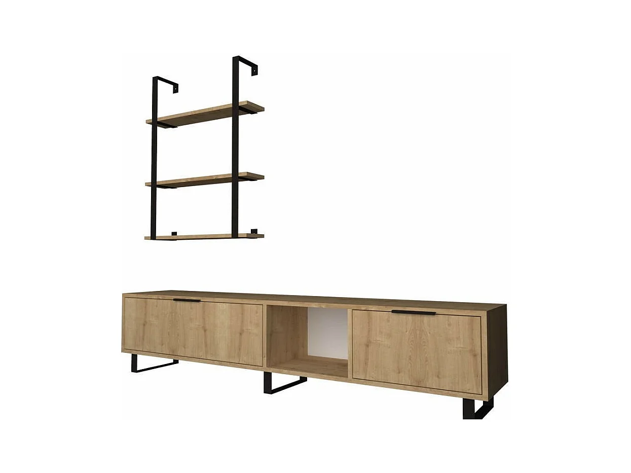 Mobile base in metallo nero e legno 161x41x50,5h cm