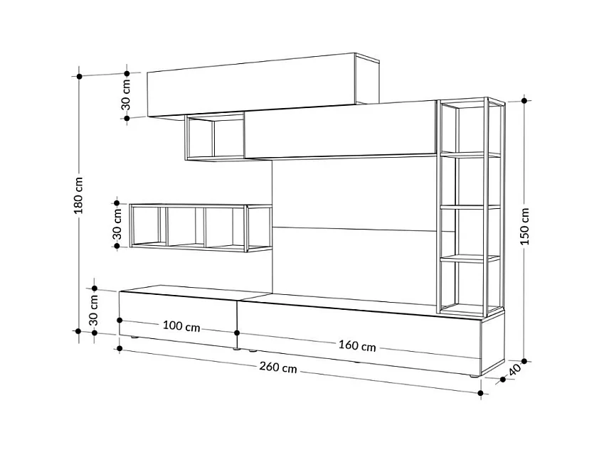 Parete attrezzata 260 cm. Tronador colore bianco e rovere