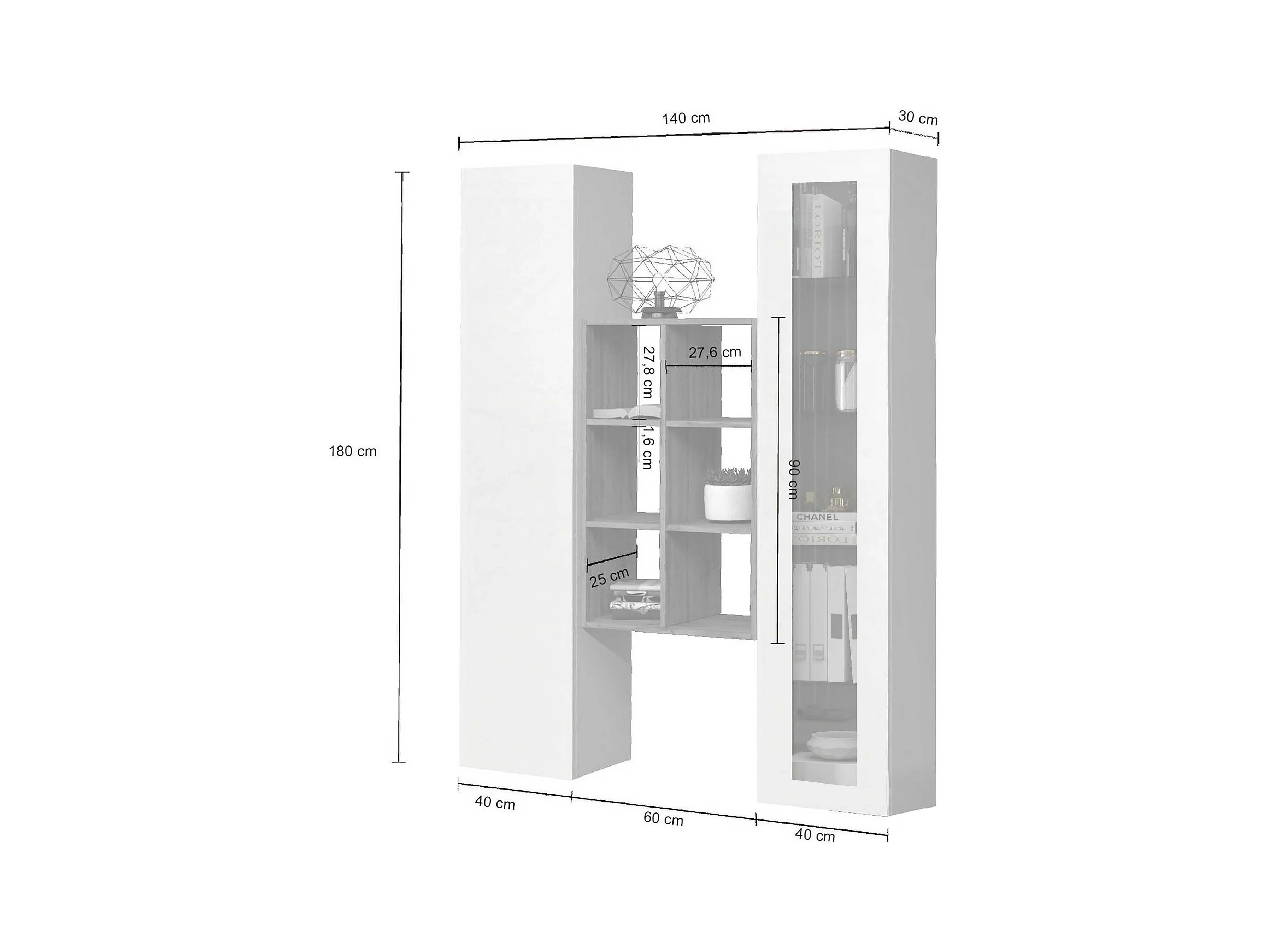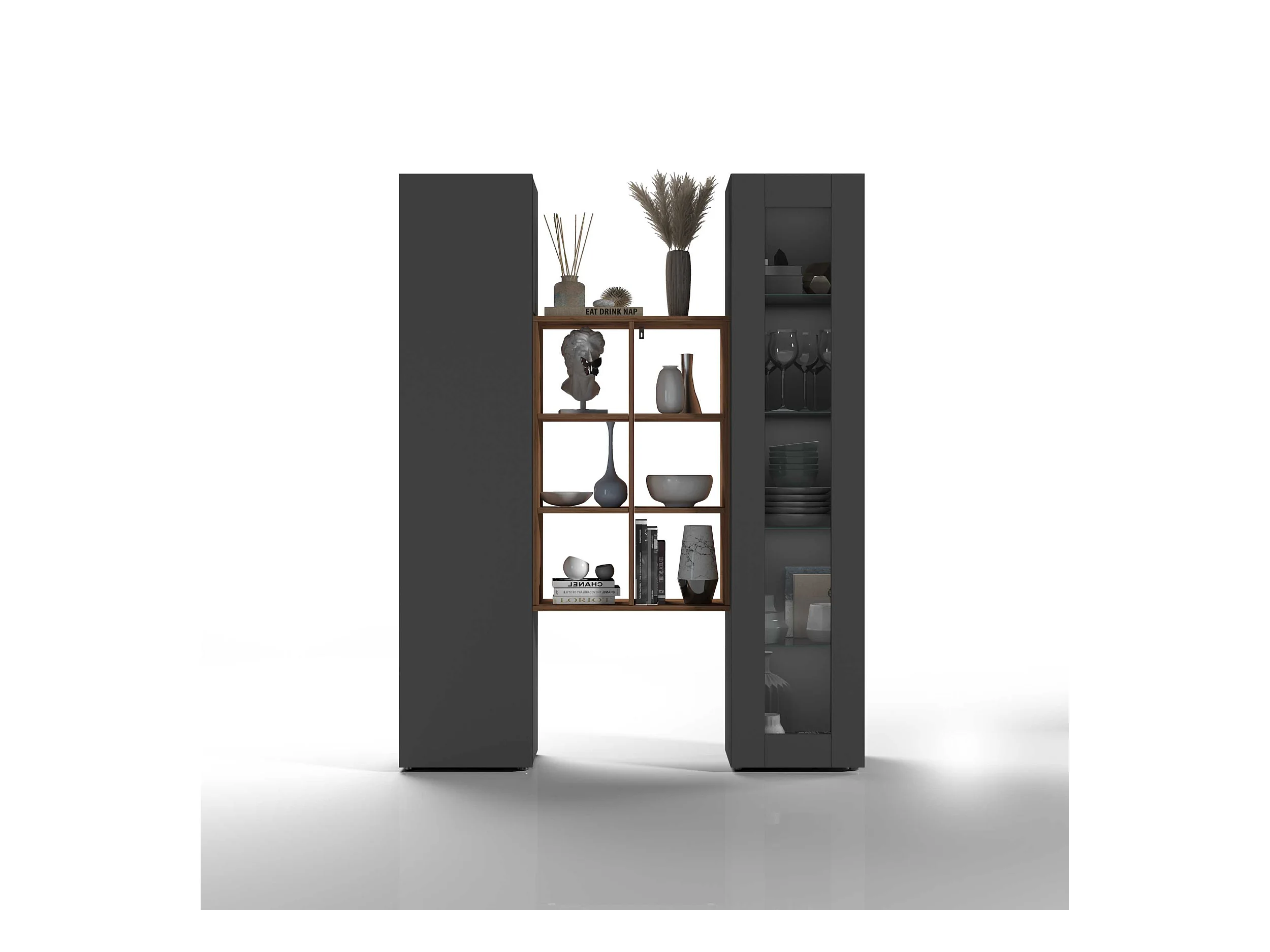 Libreria, vetrina e scaffale grigio