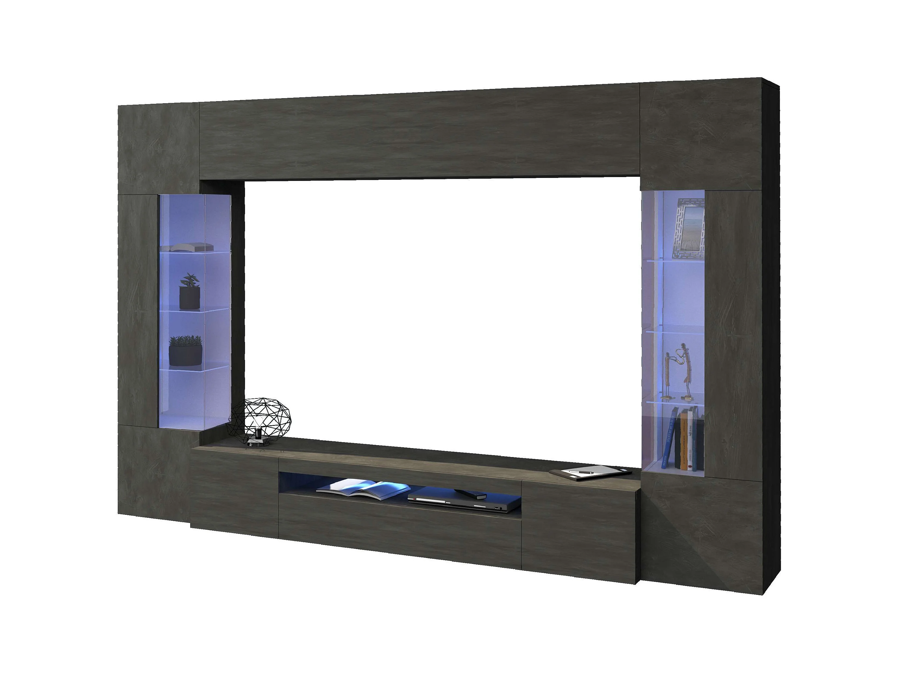 Parete attrezzata TV moderna antracite legno 2 vetrine pensile Sultan AP