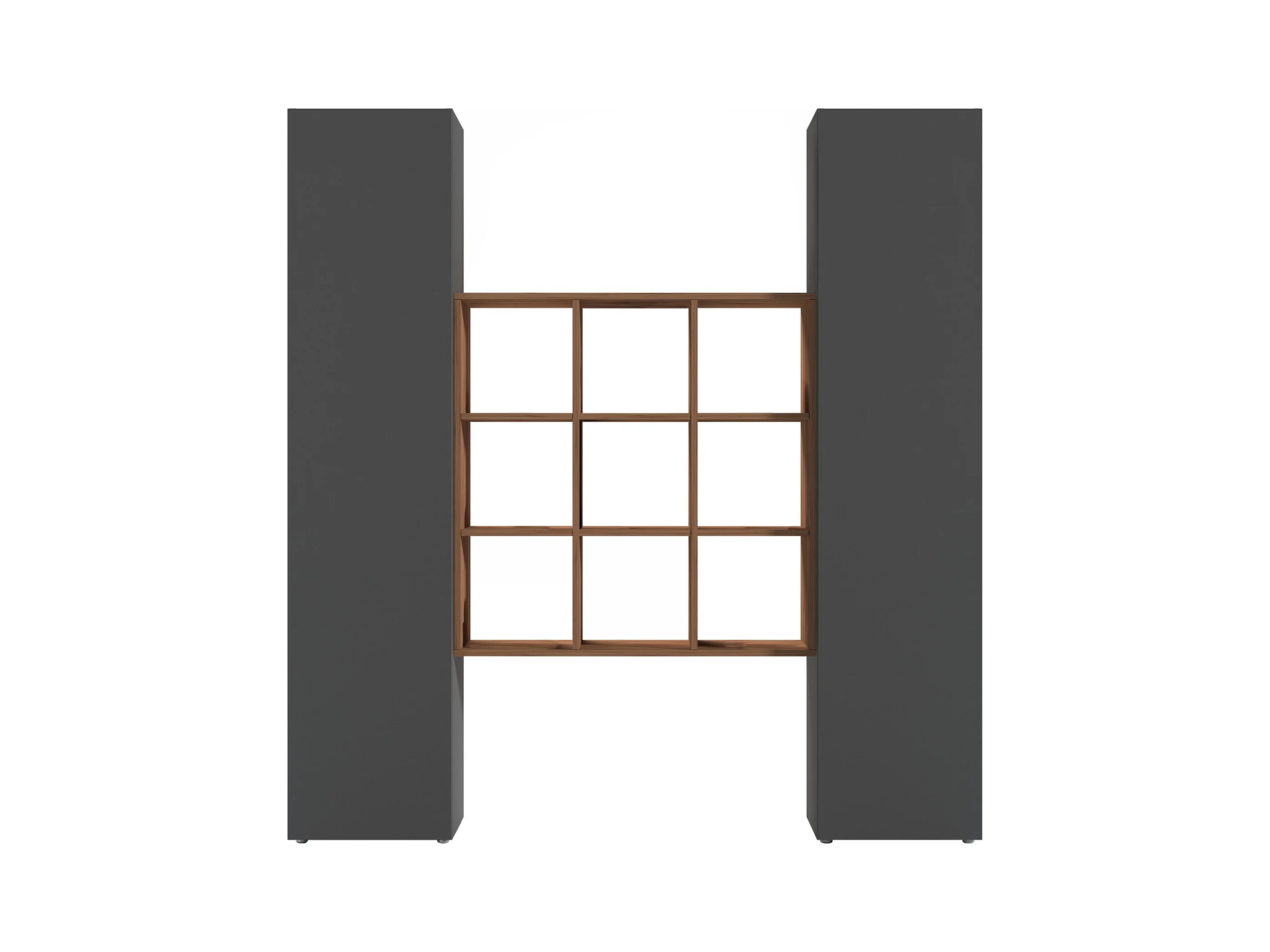 Set soggiorno Maruska con libreria e 2 colonne antracite opaco e rovere 170x30x180 cm