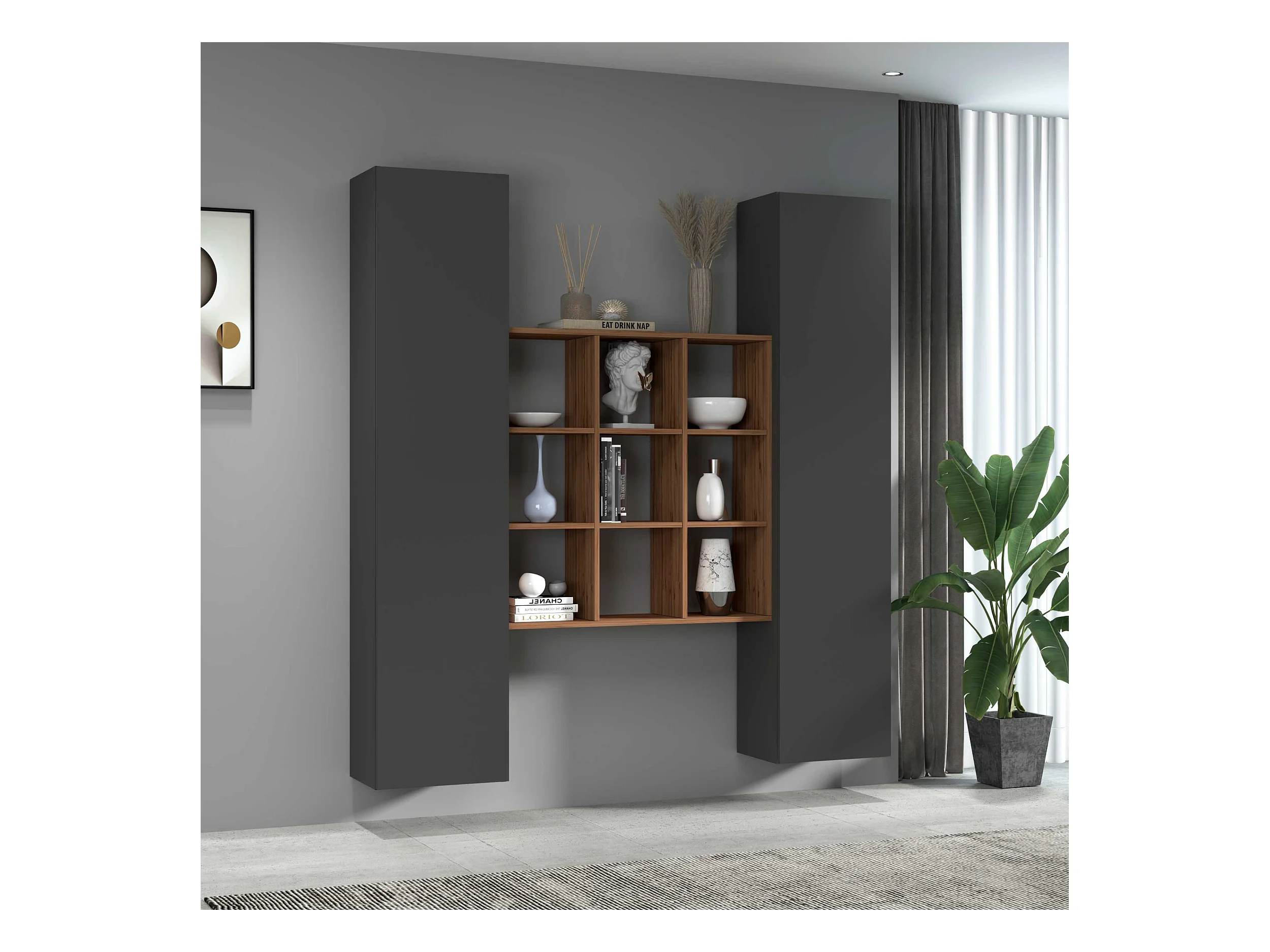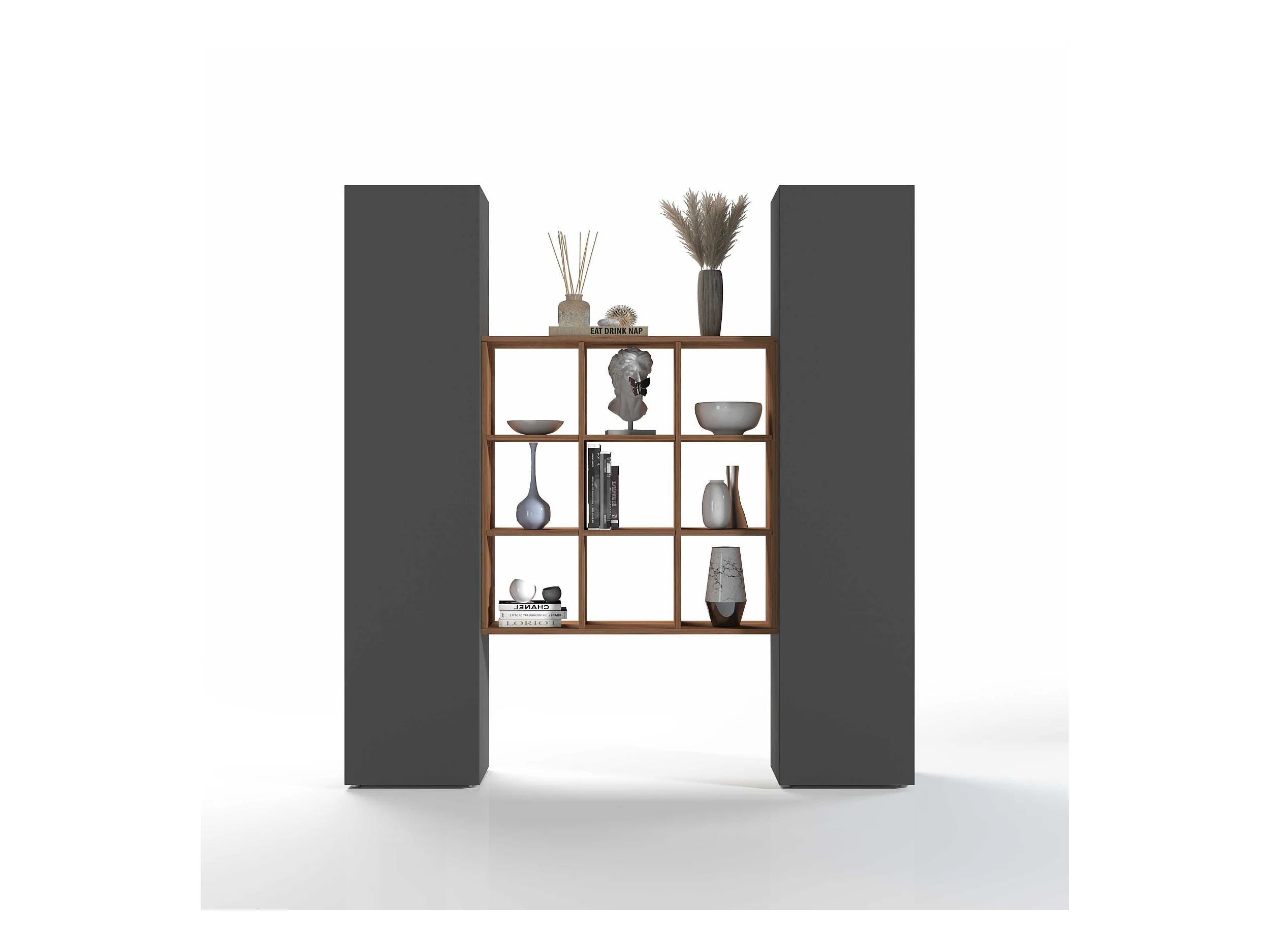 Set soggiorno Maruska con libreria e 2 colonne antracite opaco e rovere 140x30x180 cm
