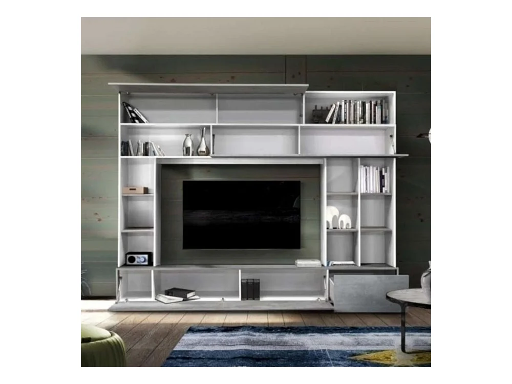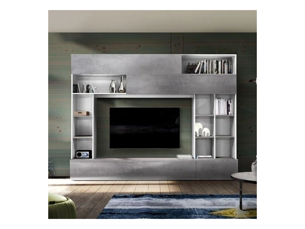 Parete attrezzata Leo 171x42x171 colore cemento bianco