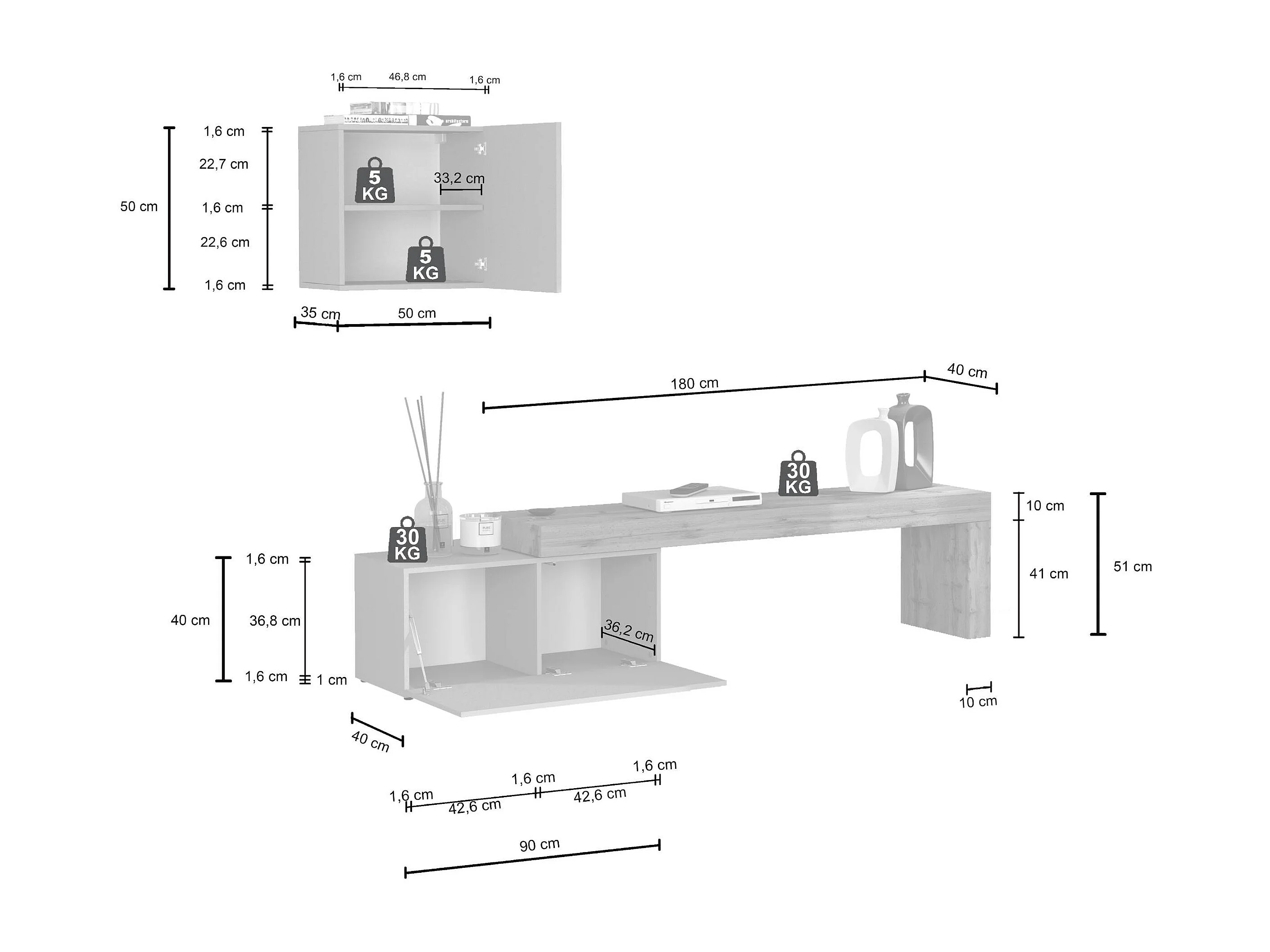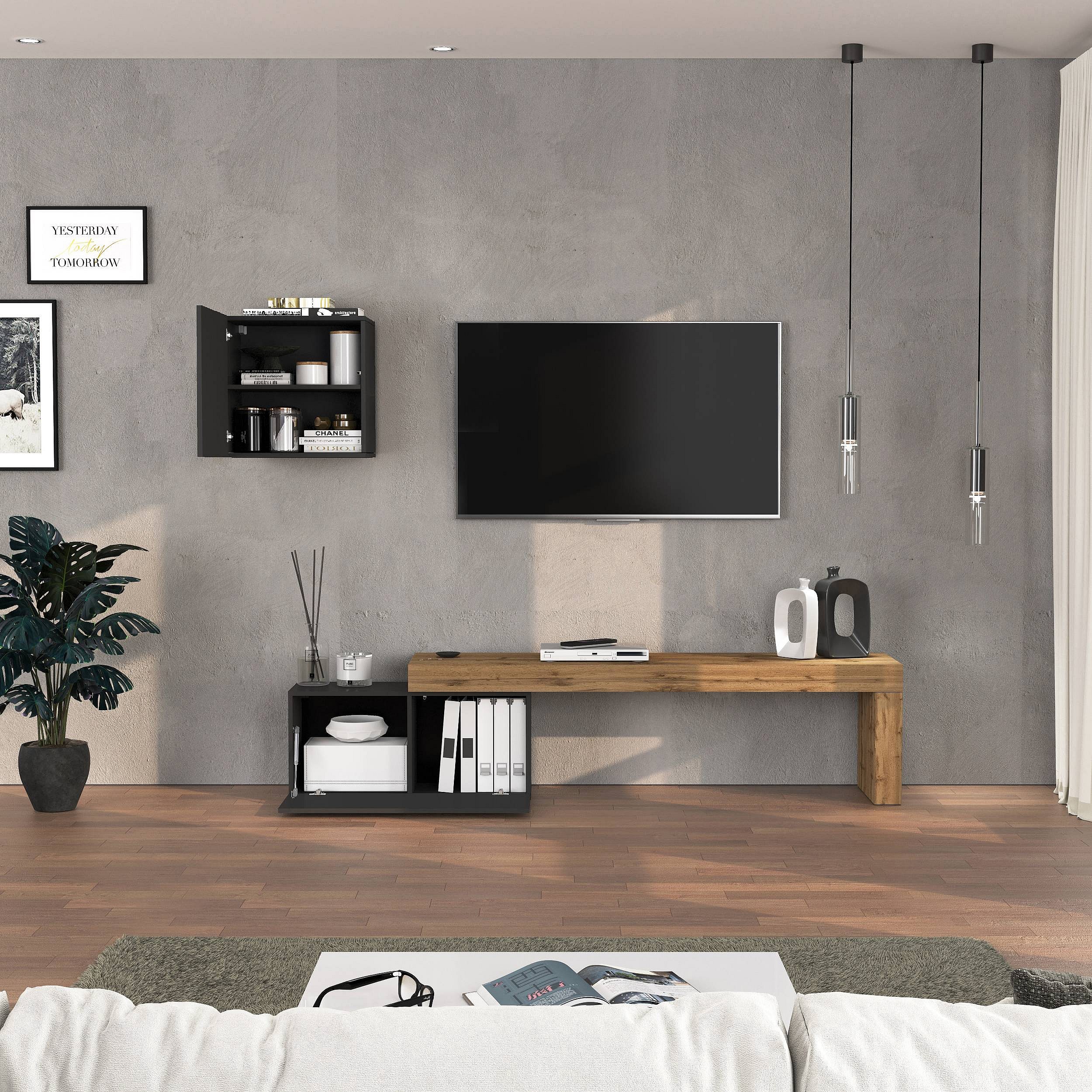 Parete attrezzata Chronos set soggiorno antracite opaco e rovere 180/260x40 cm