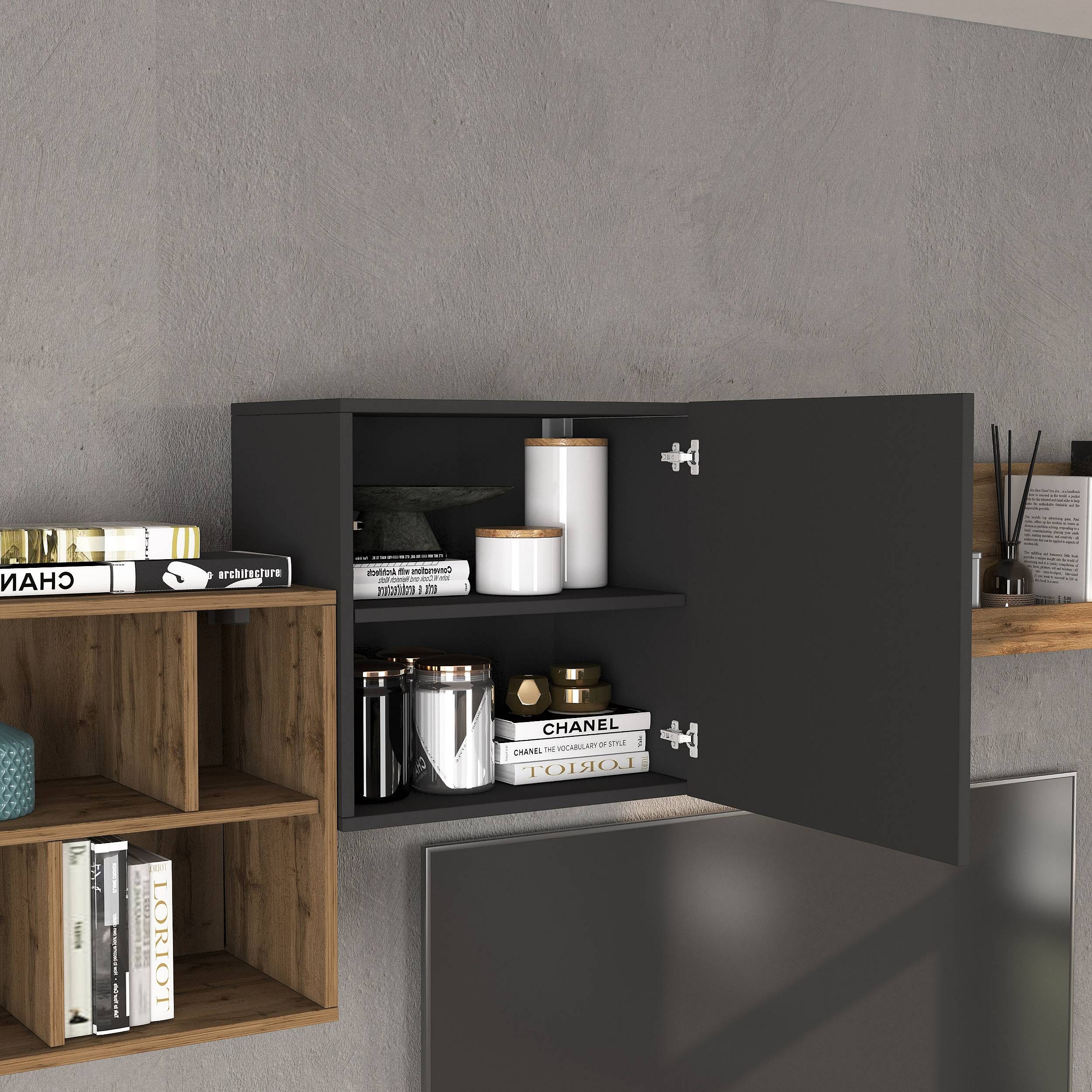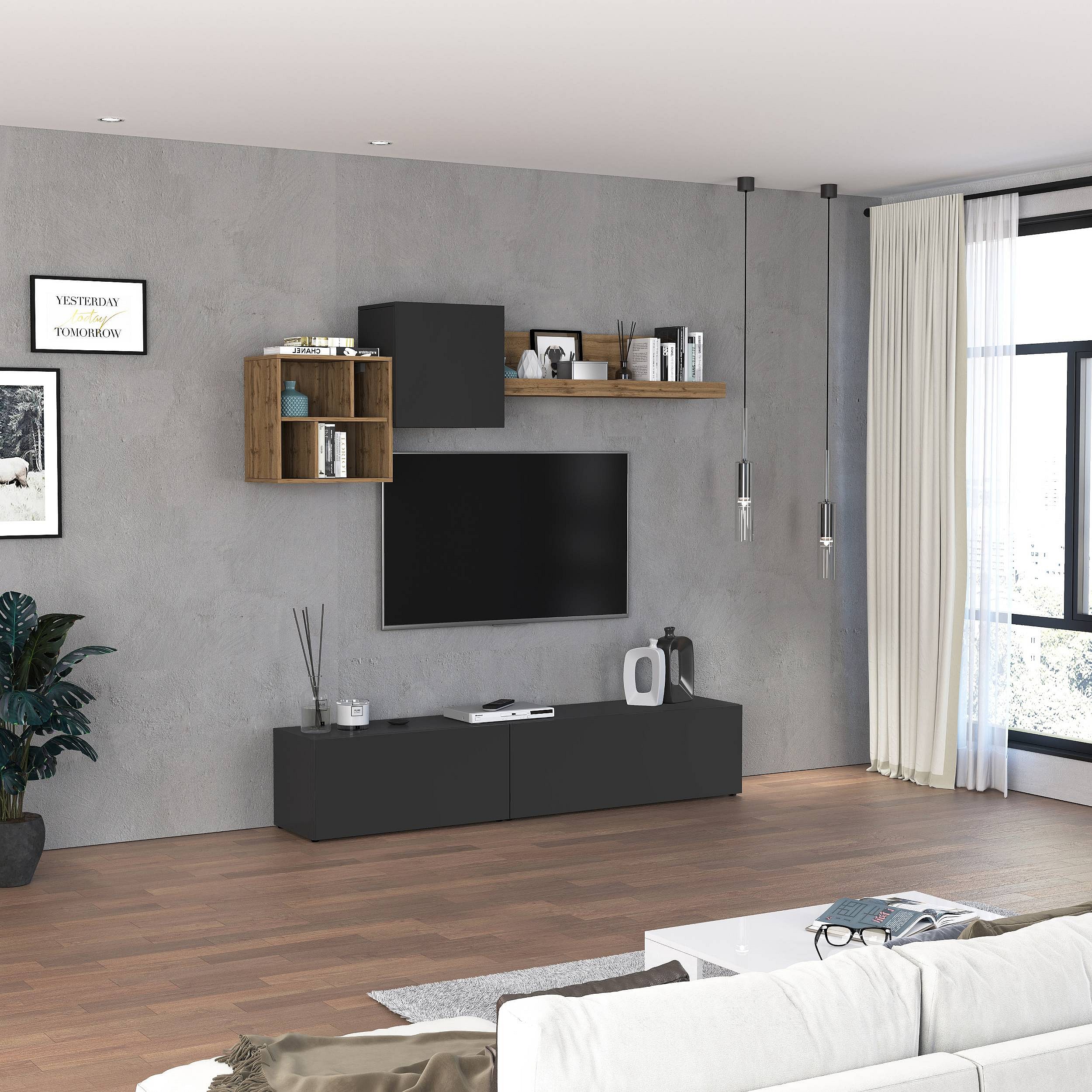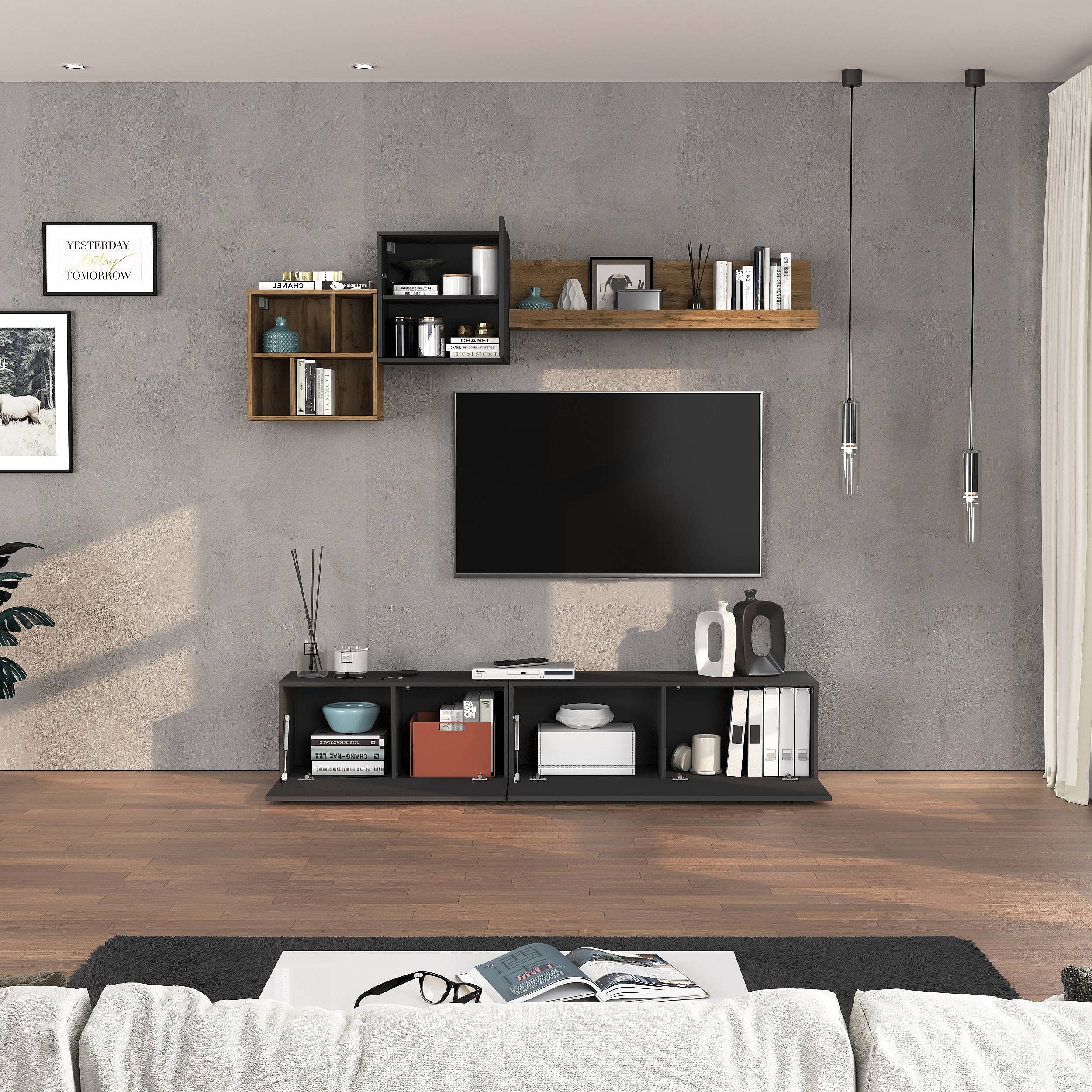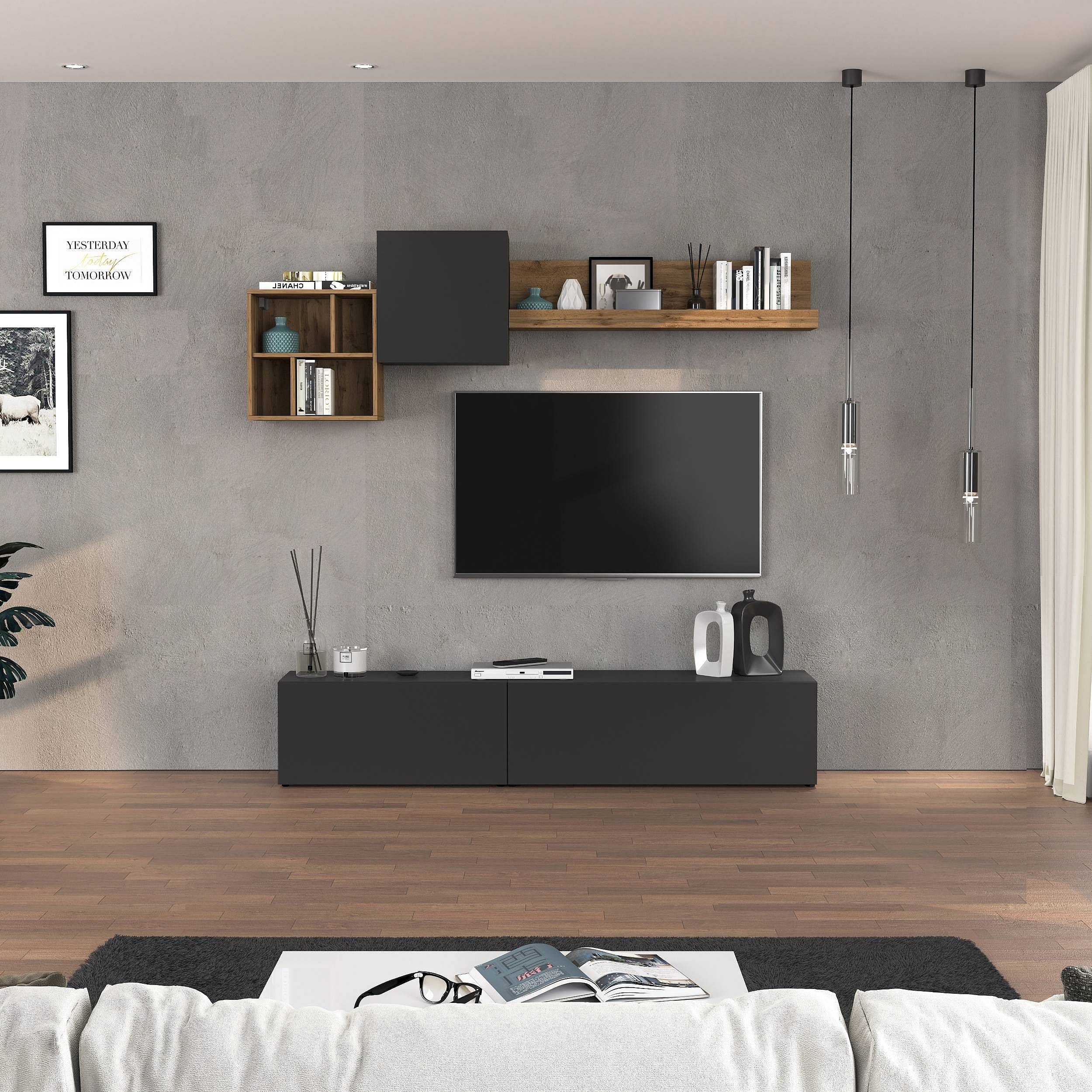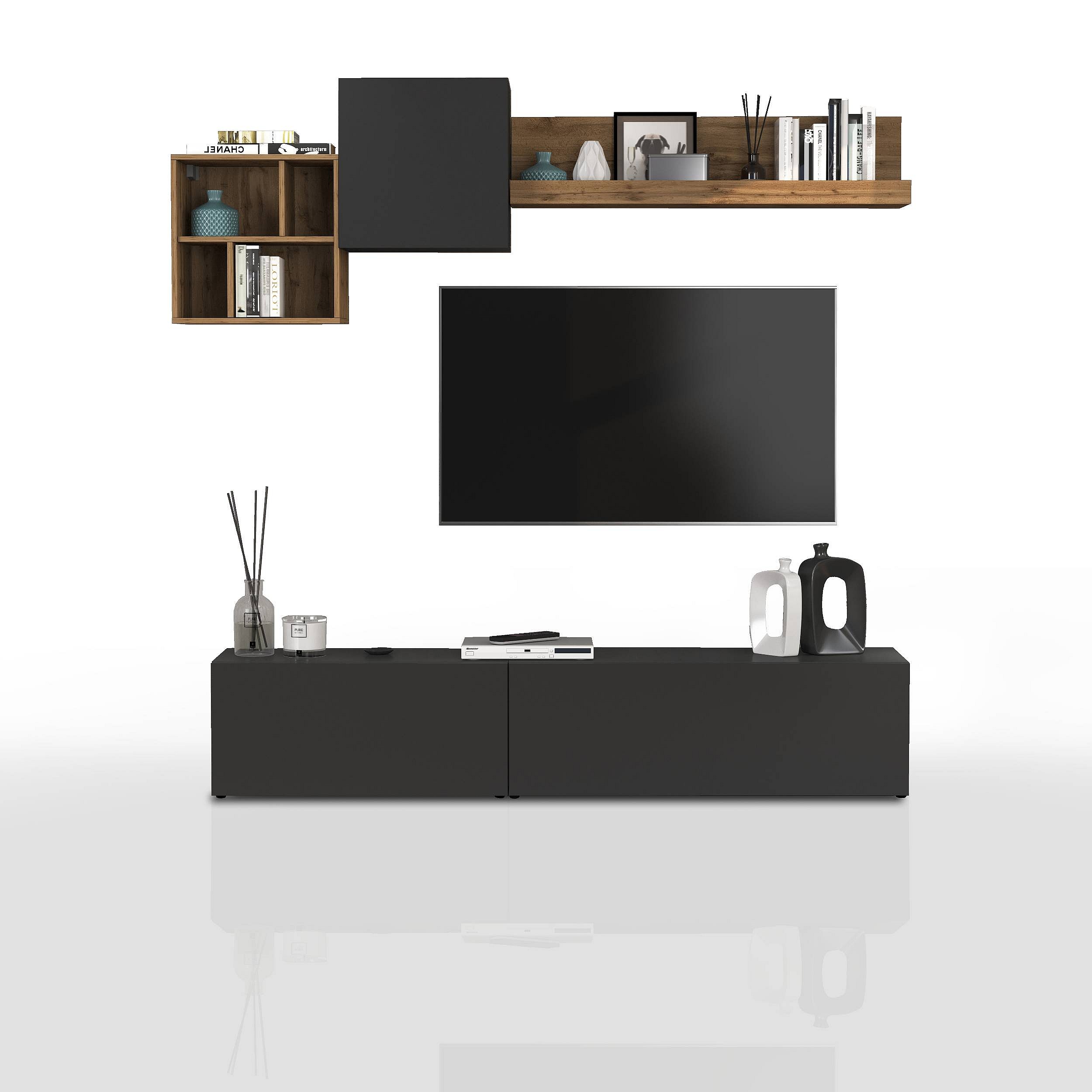 Parete attrezzata Chronos set soggiorno Antracite Opaco e Rovere 180/260x40 cm