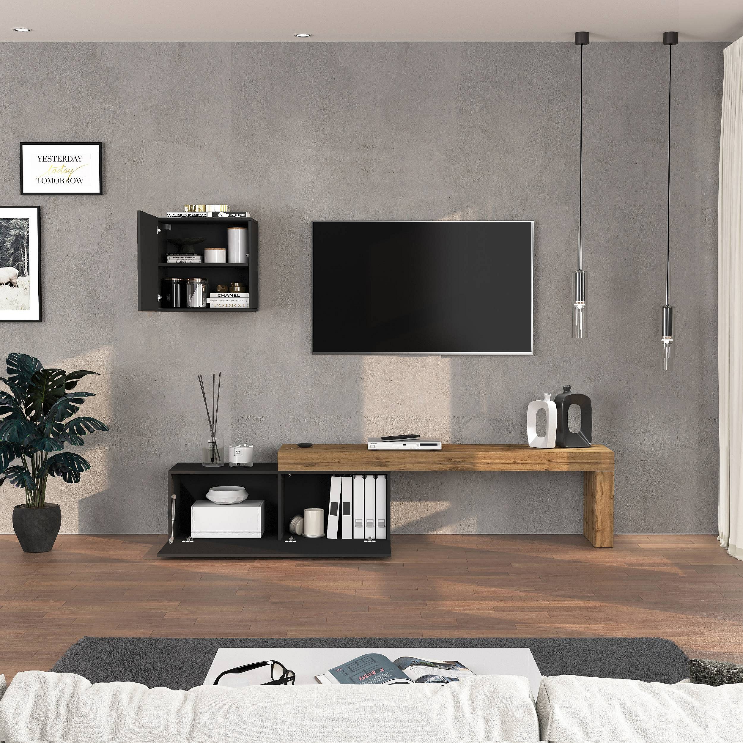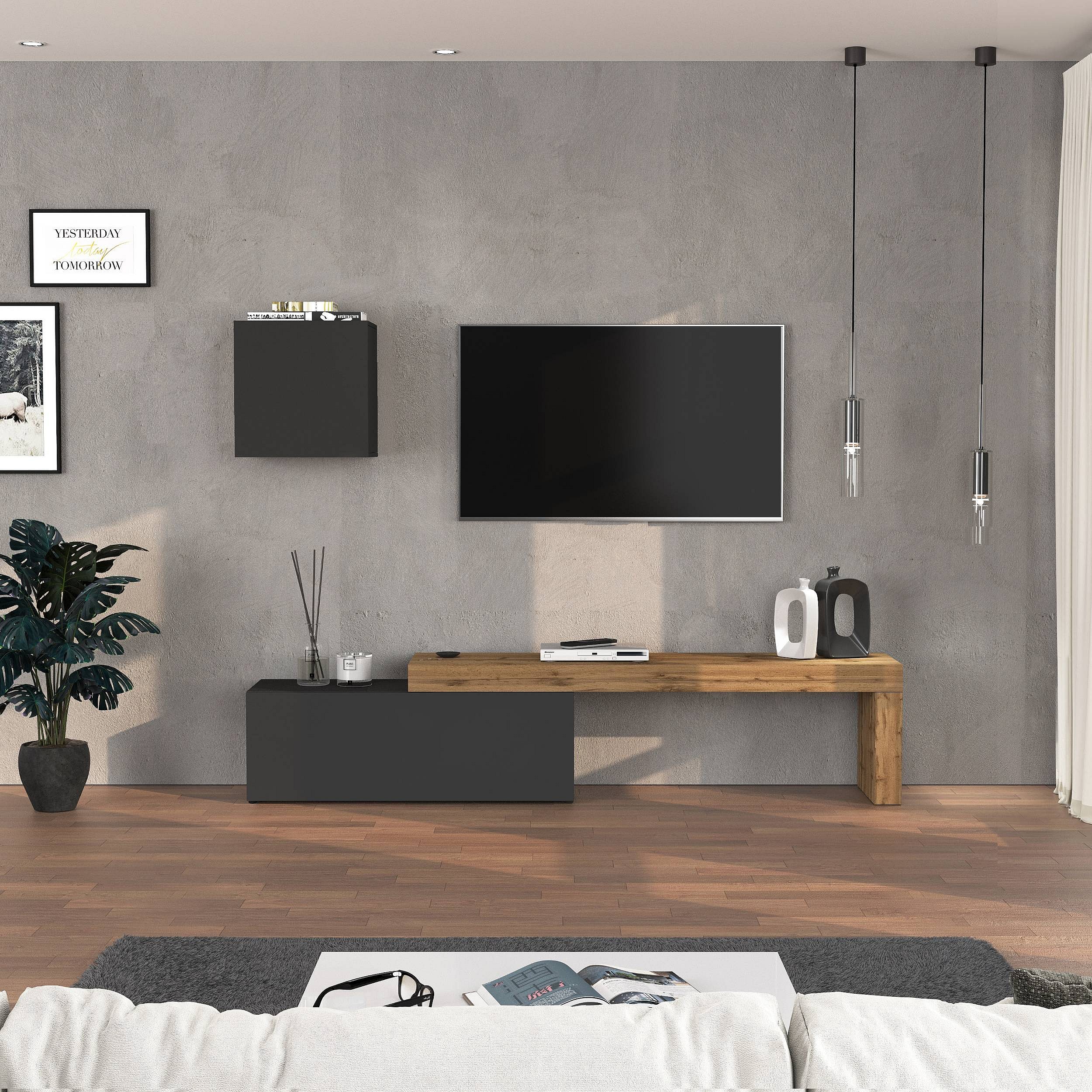 Parete attrezzata Chronos set soggiorno antracite opaco e rovere 180/290x40 cm