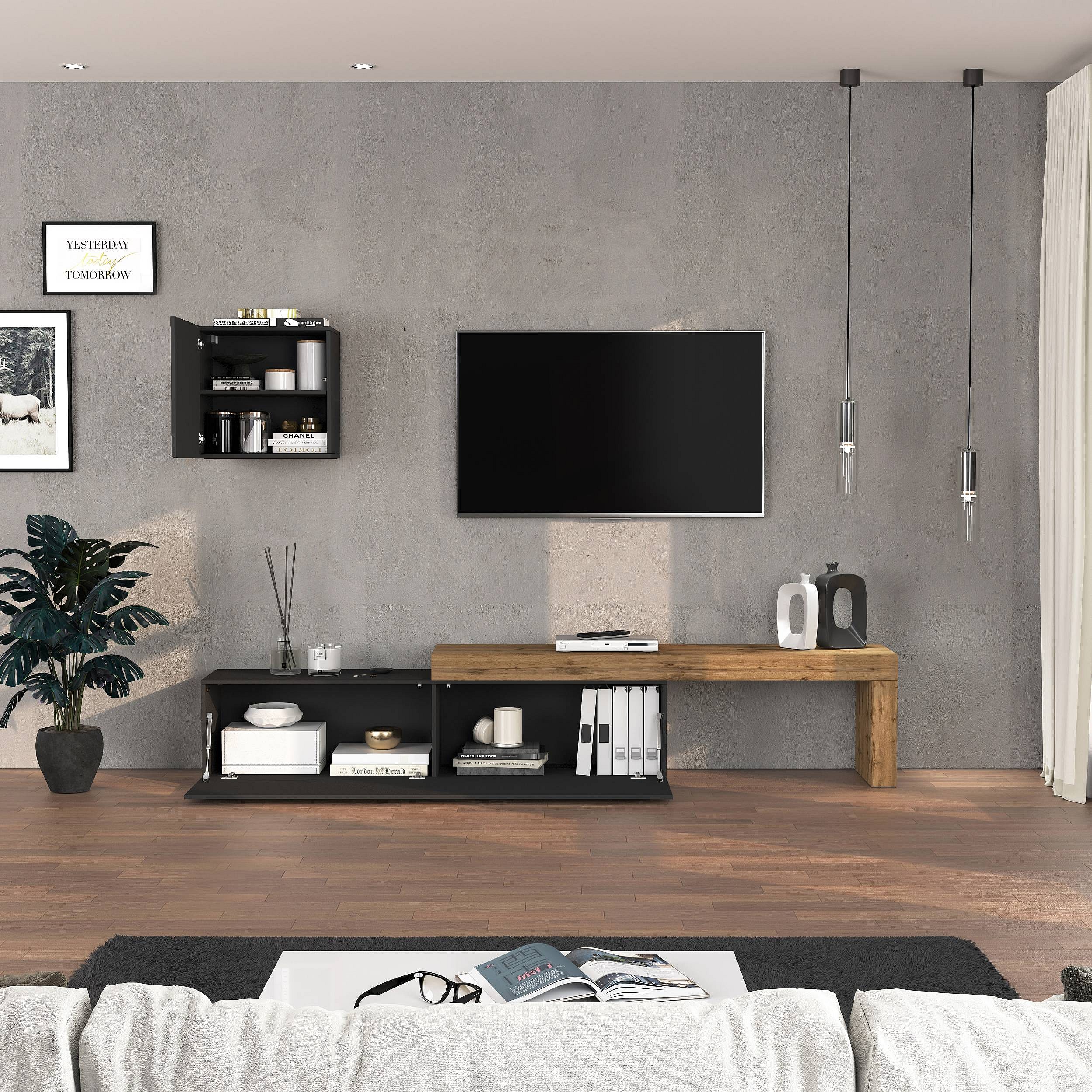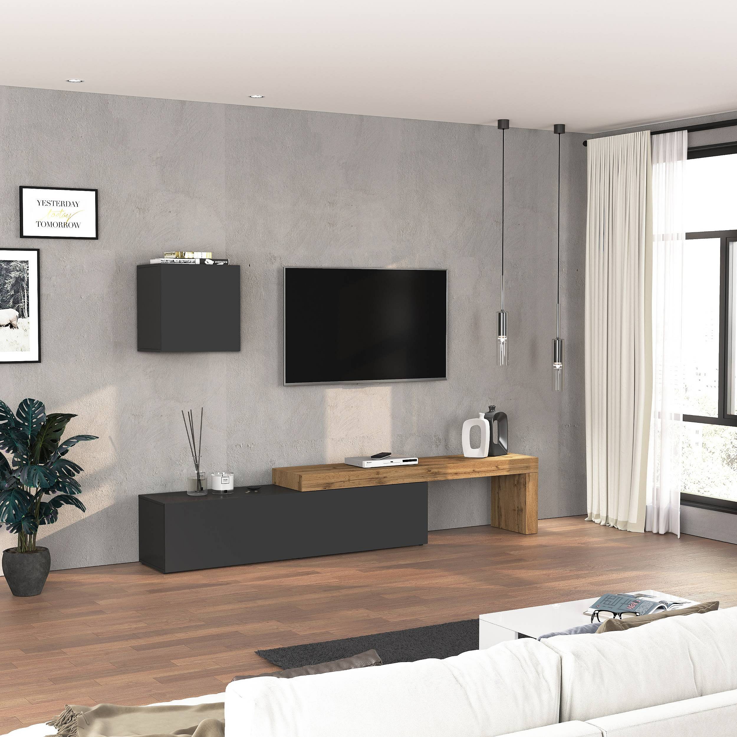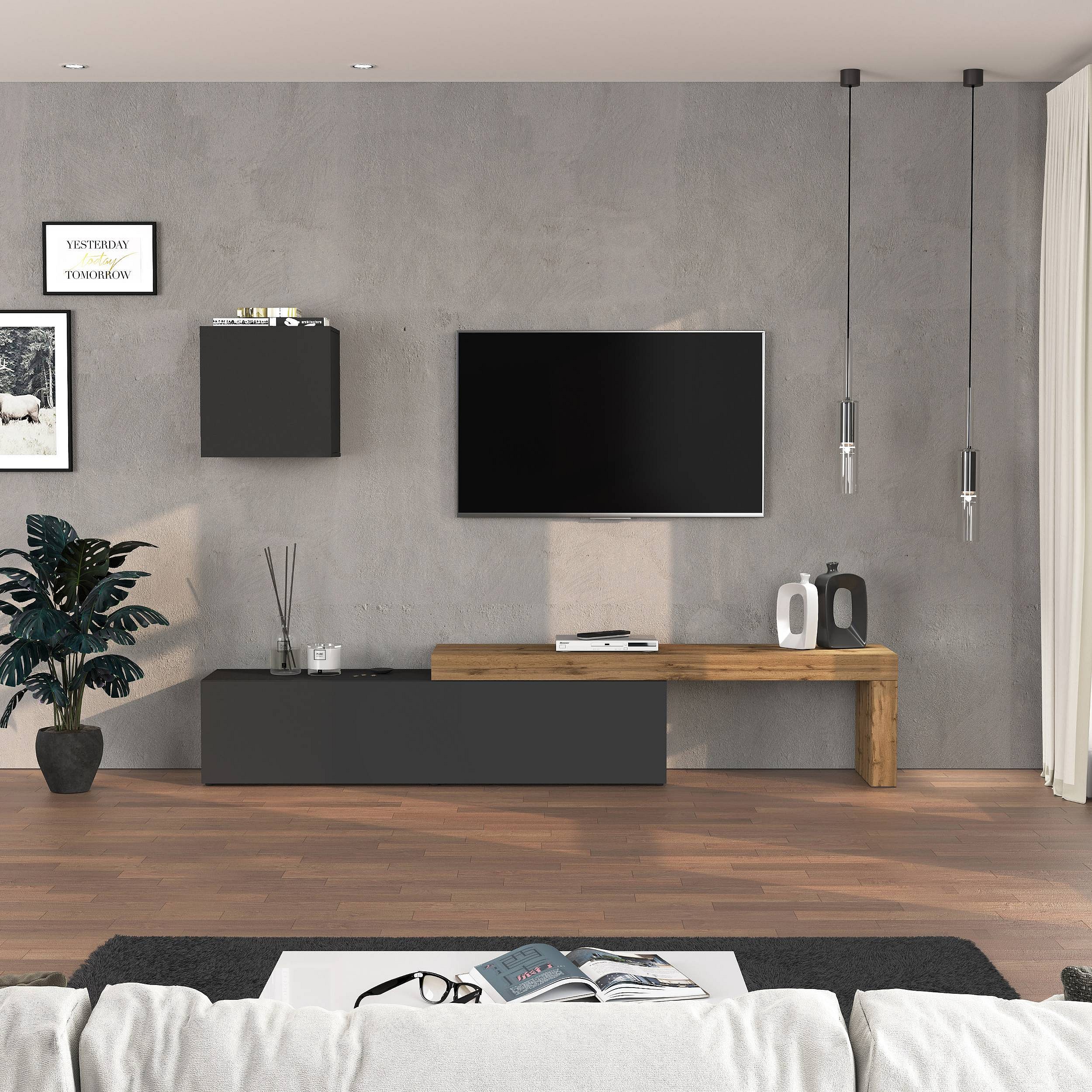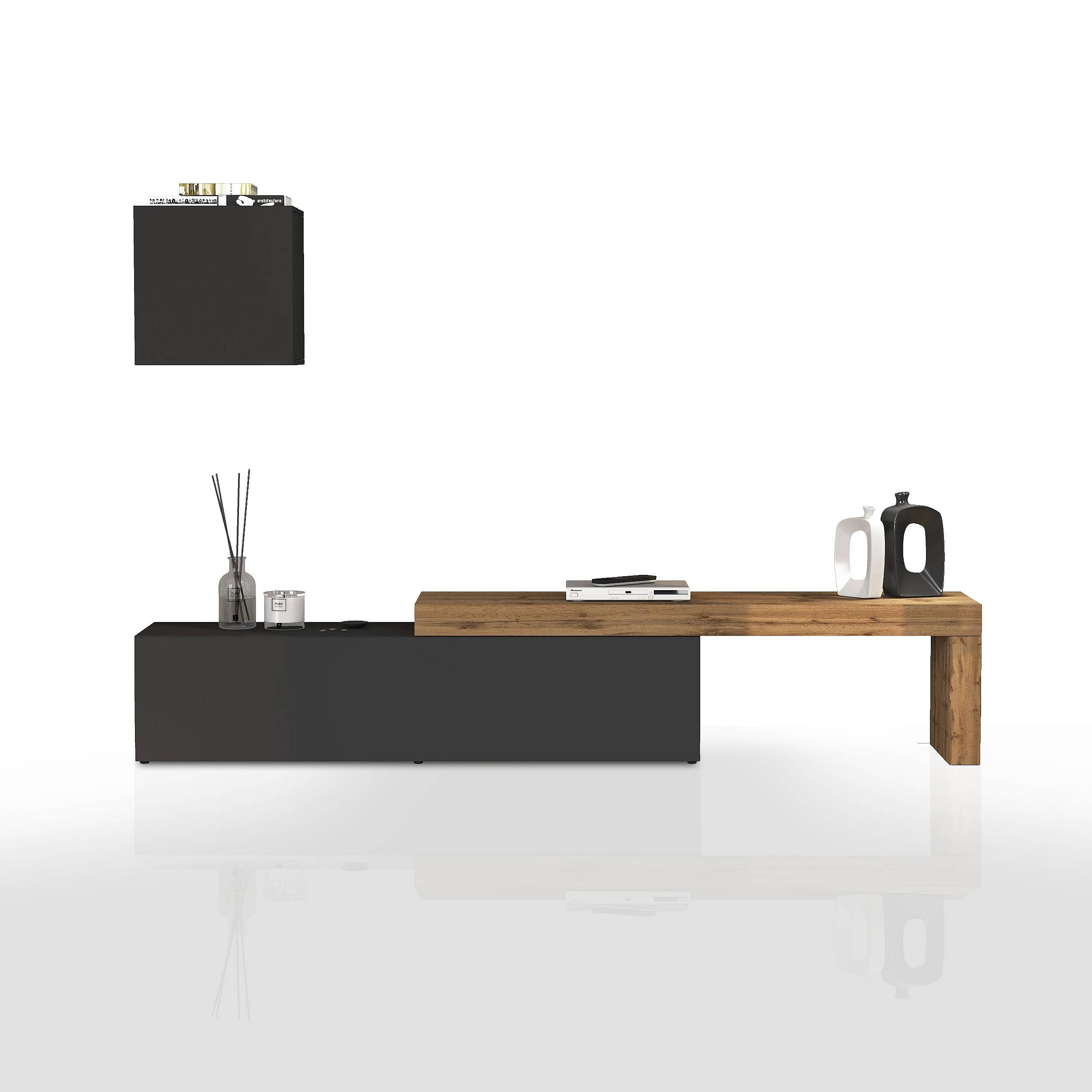Parete attrezzata Chronos set soggiorno antracite opaco e rovere 190/350x40 cm