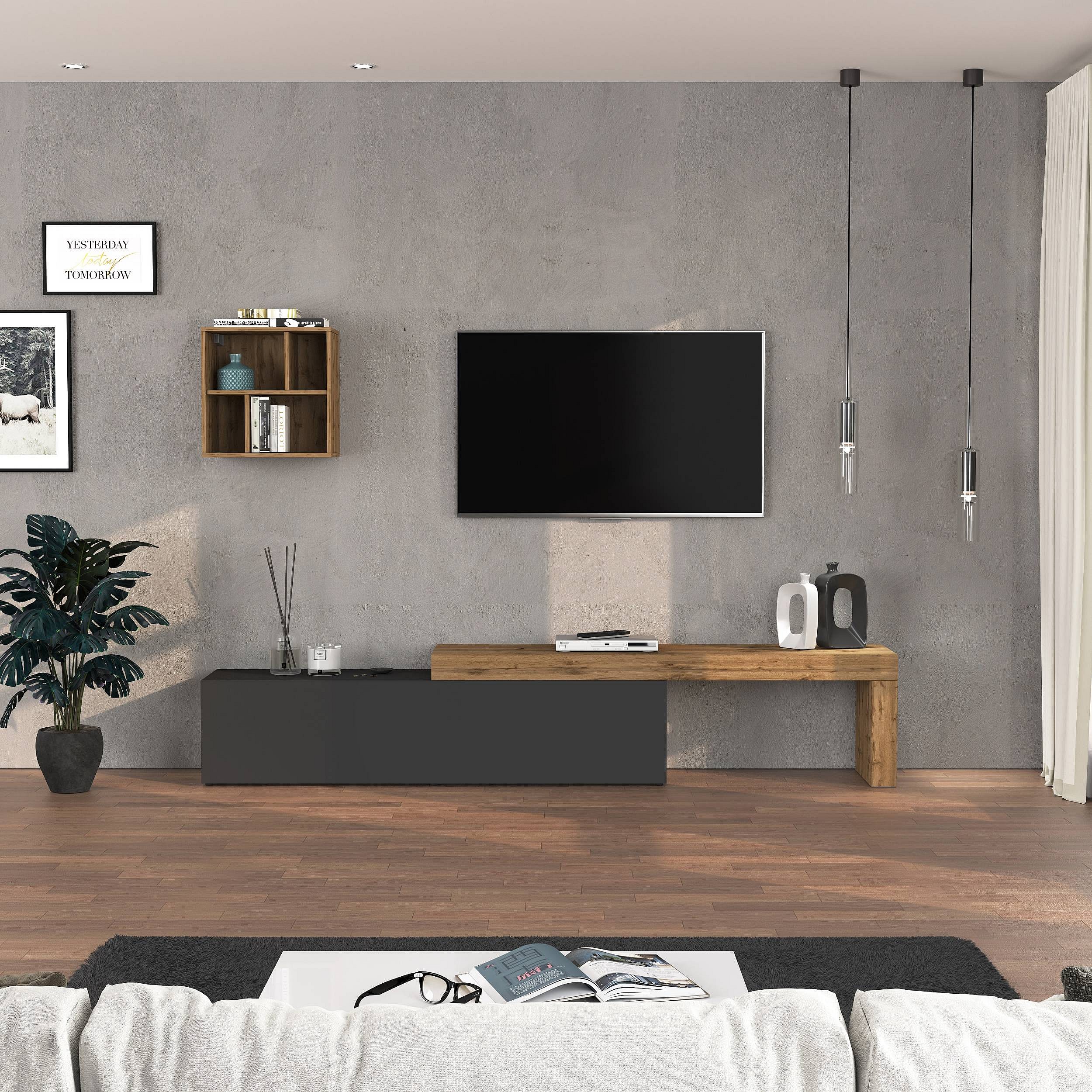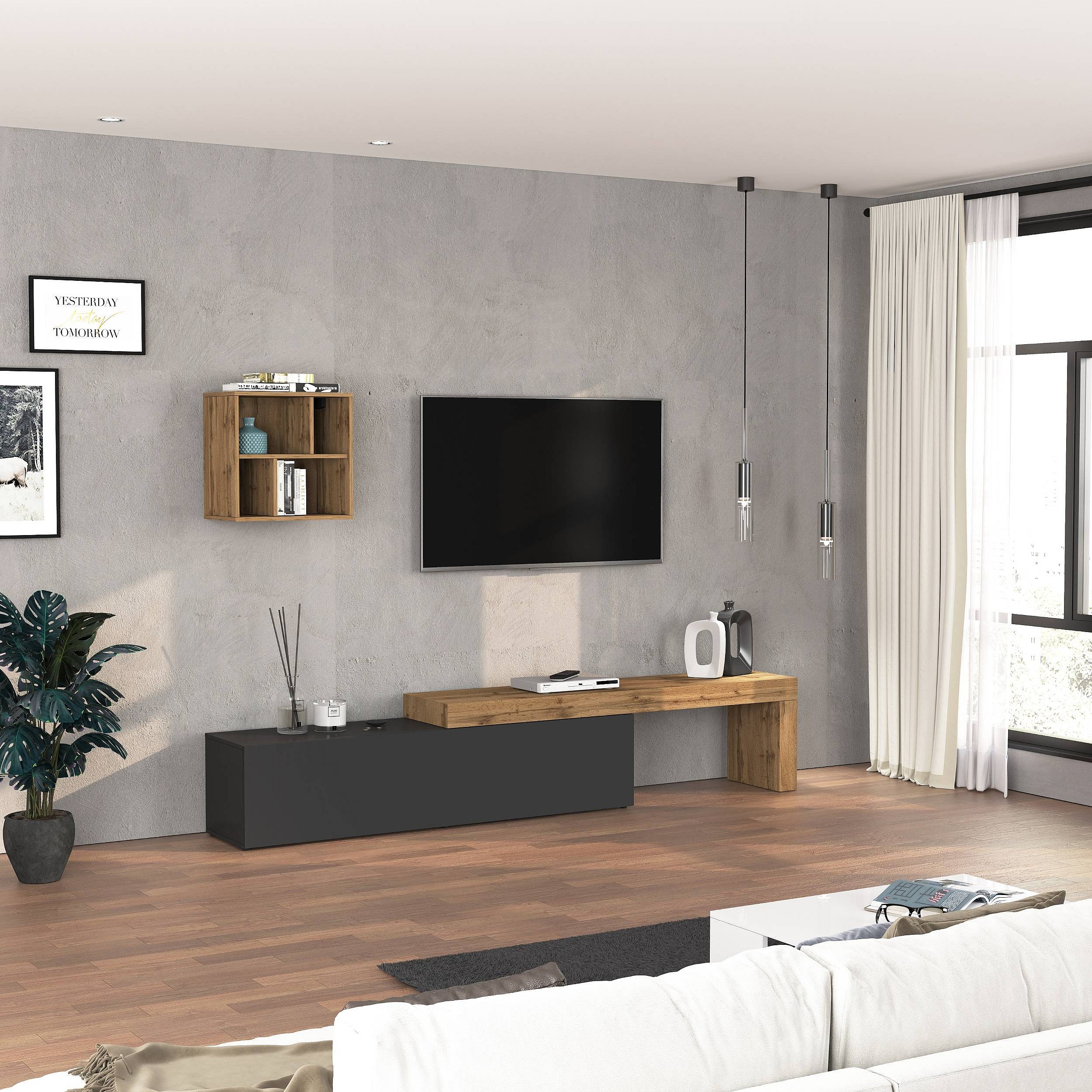 Parete attrezzata Chronos set soggiorno antracite opaco e rovere 190/350x40 cm