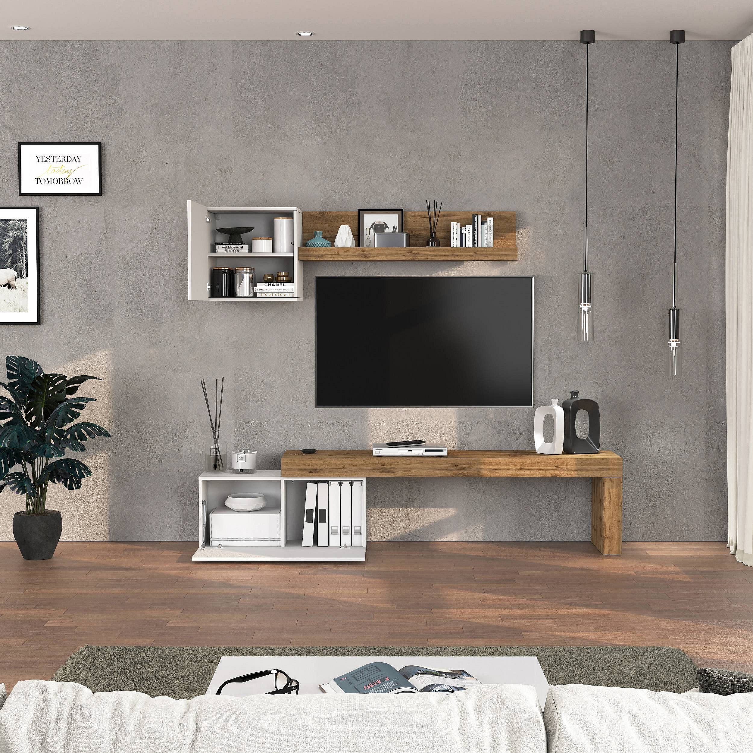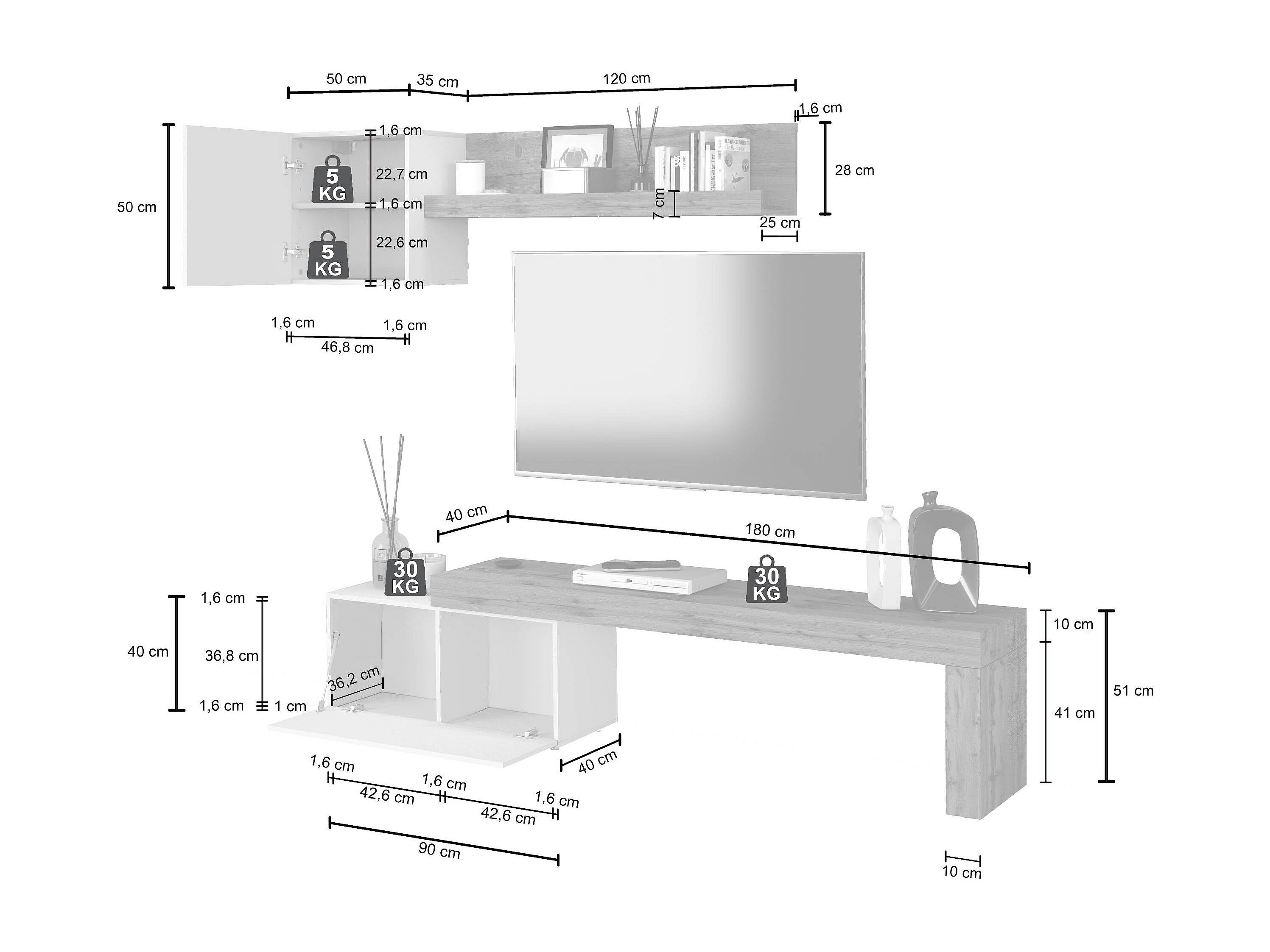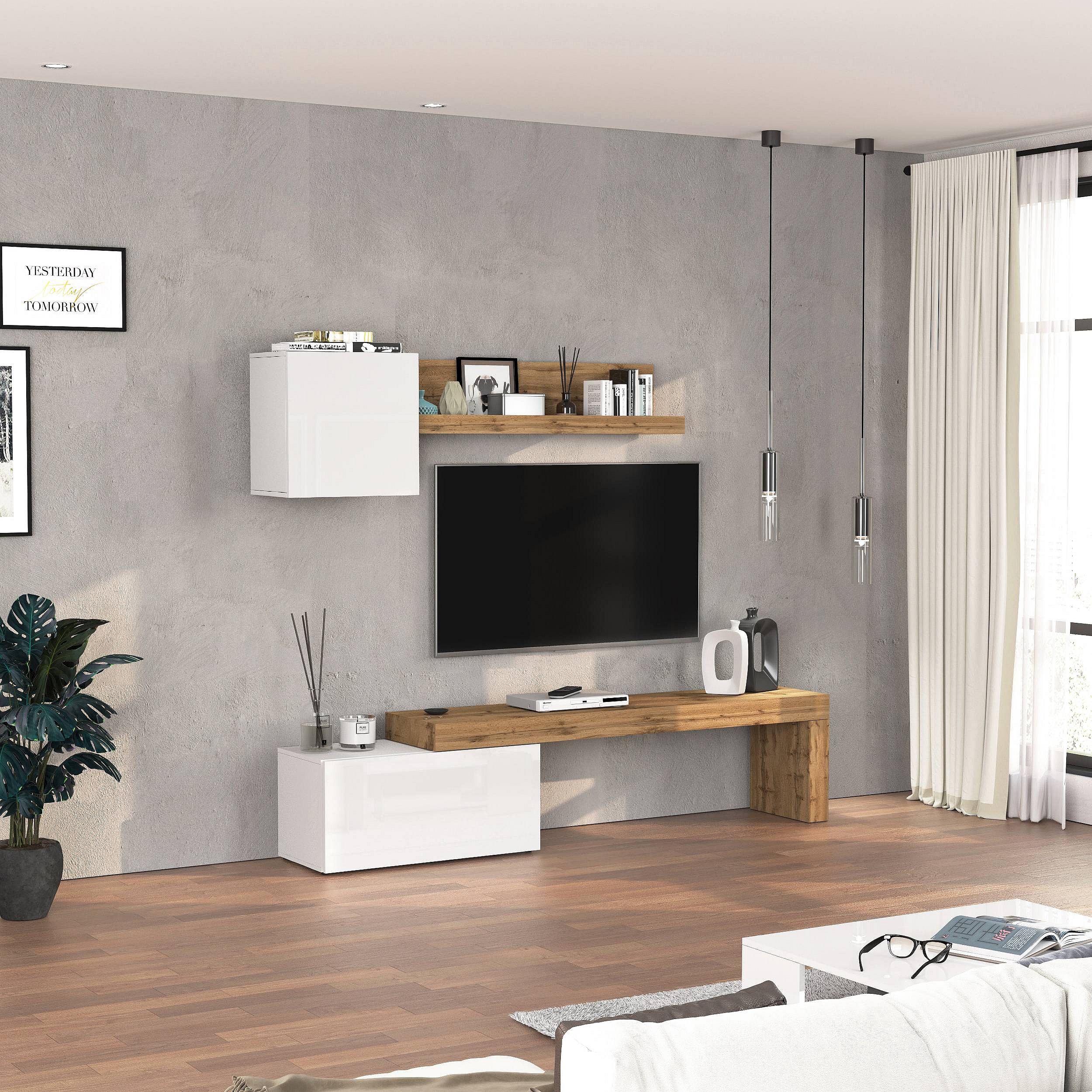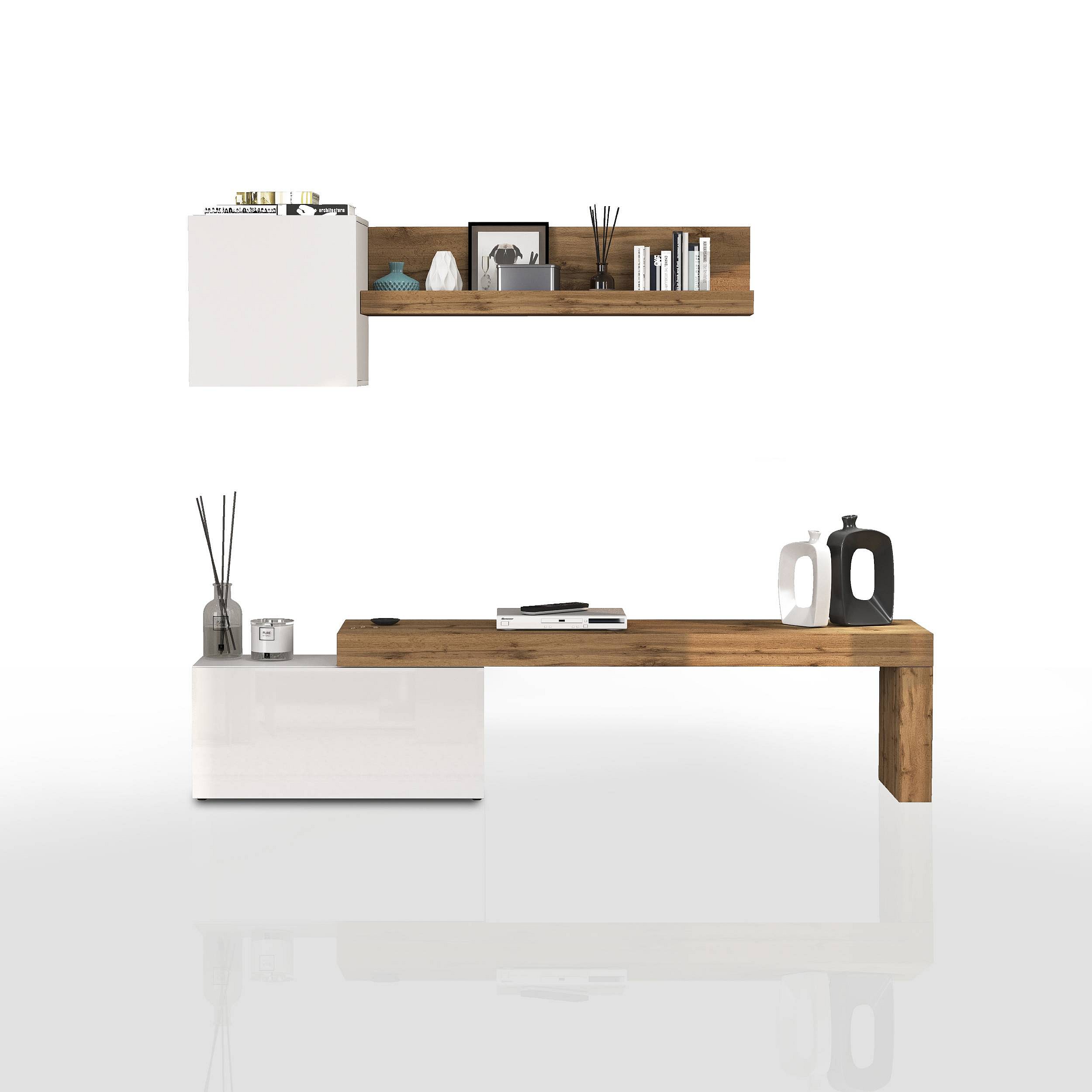 Parete attrezzata Chronos set soggiorno bianco lucido e rovere 180/260x40 cm