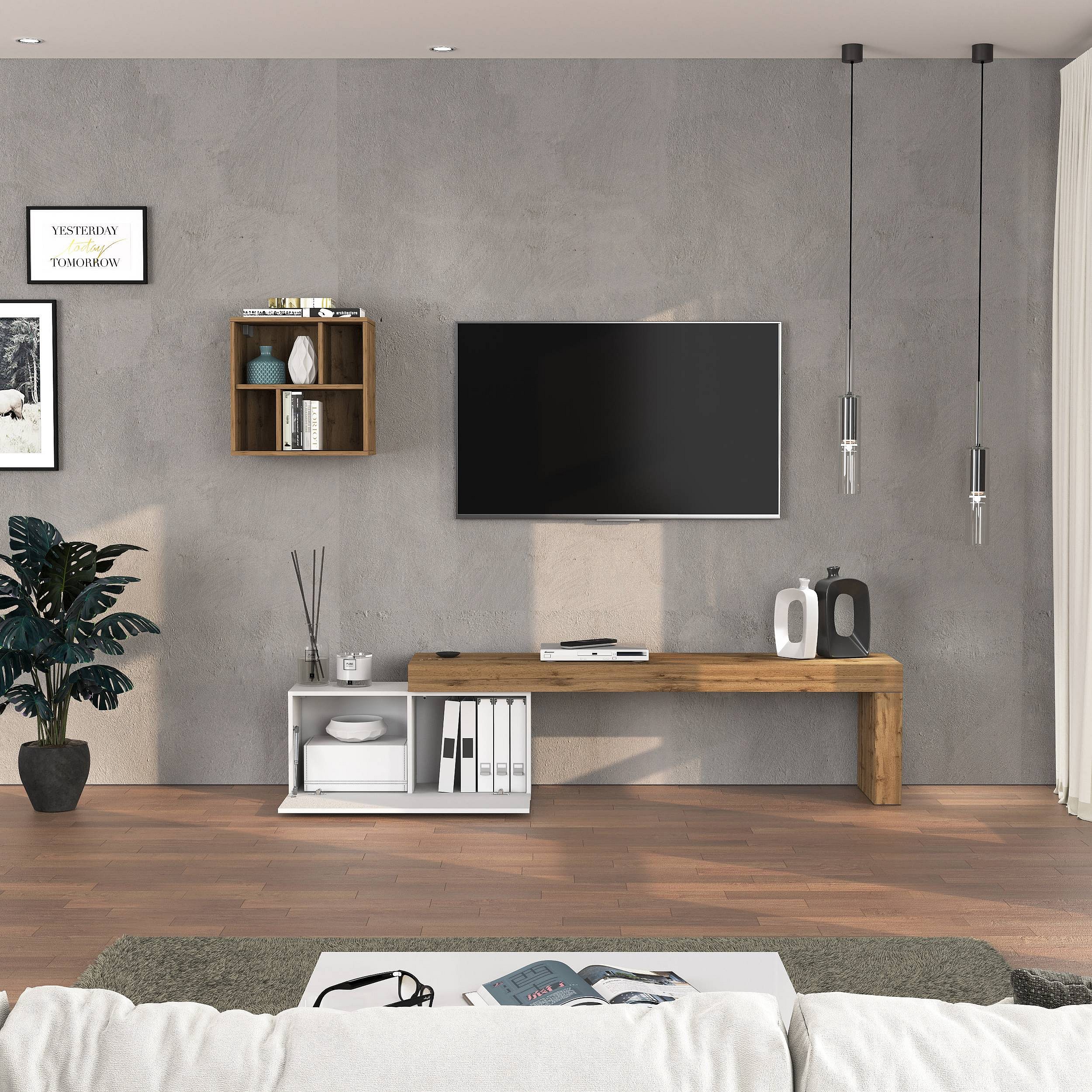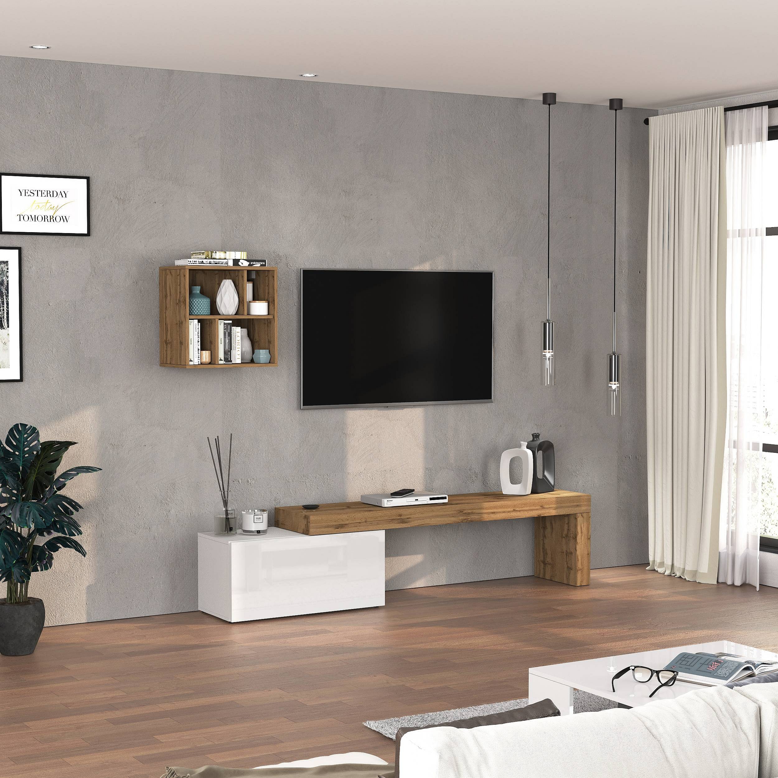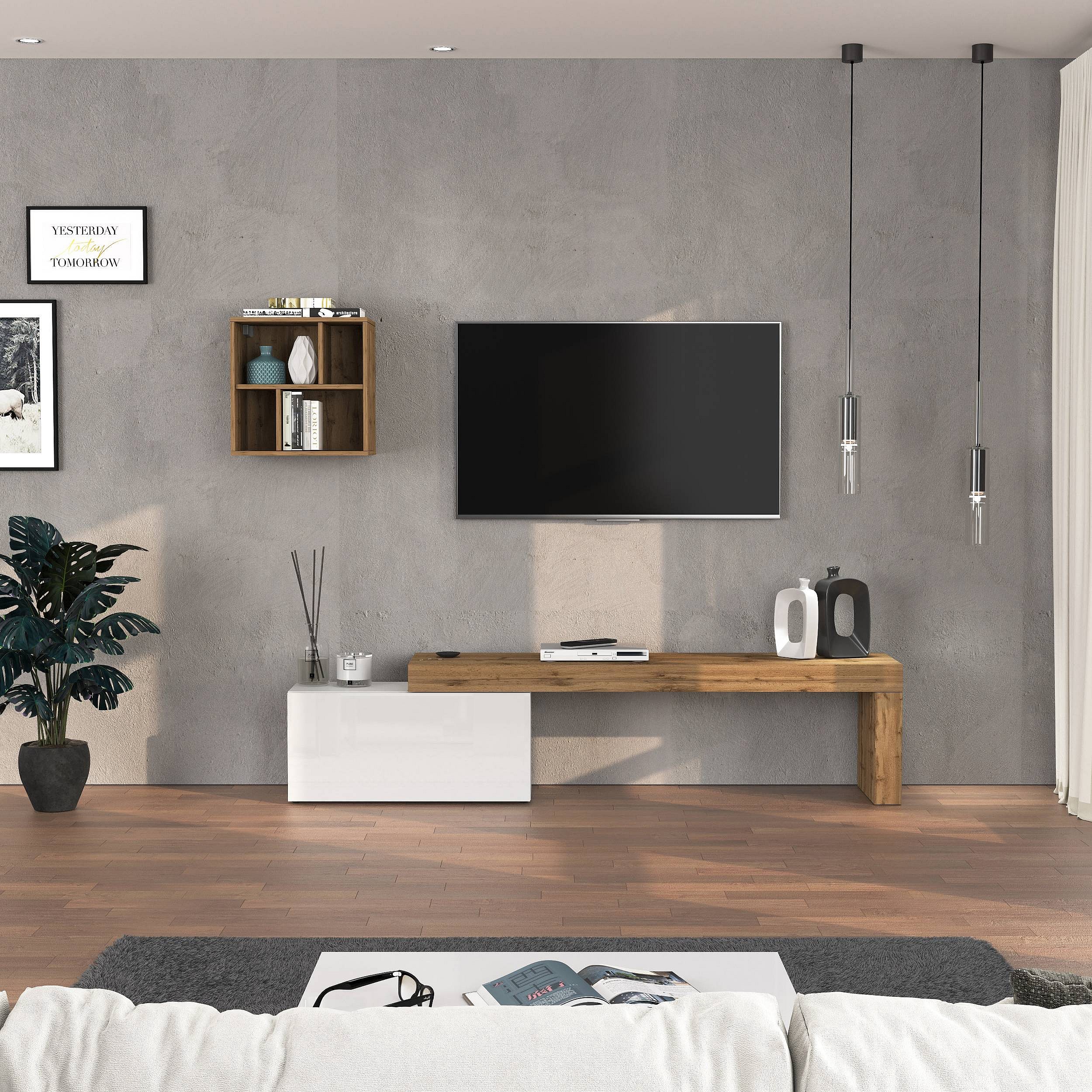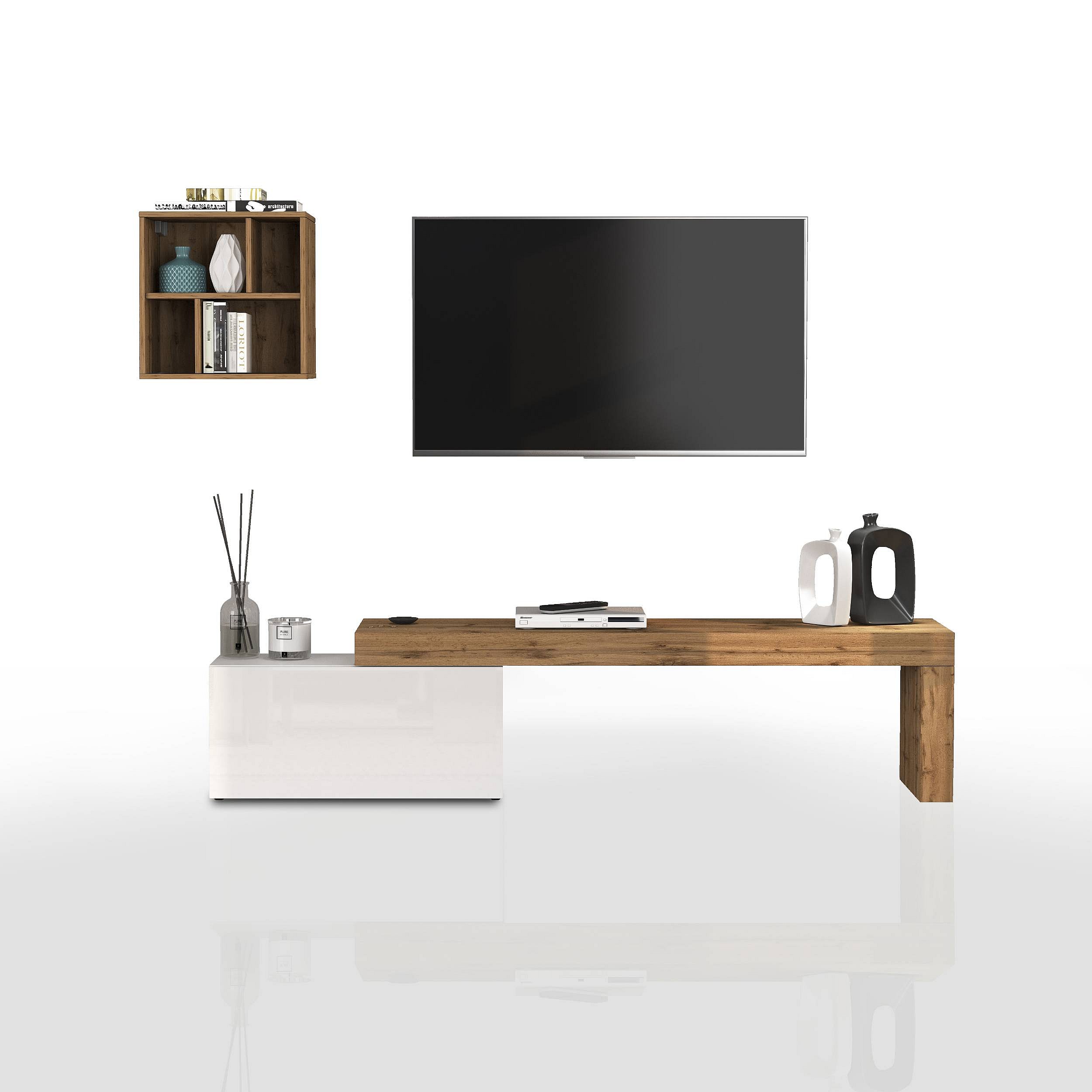 Parete attrezzata Chronos set soggiorno bianco lucido e rovere 180/260x40 cm