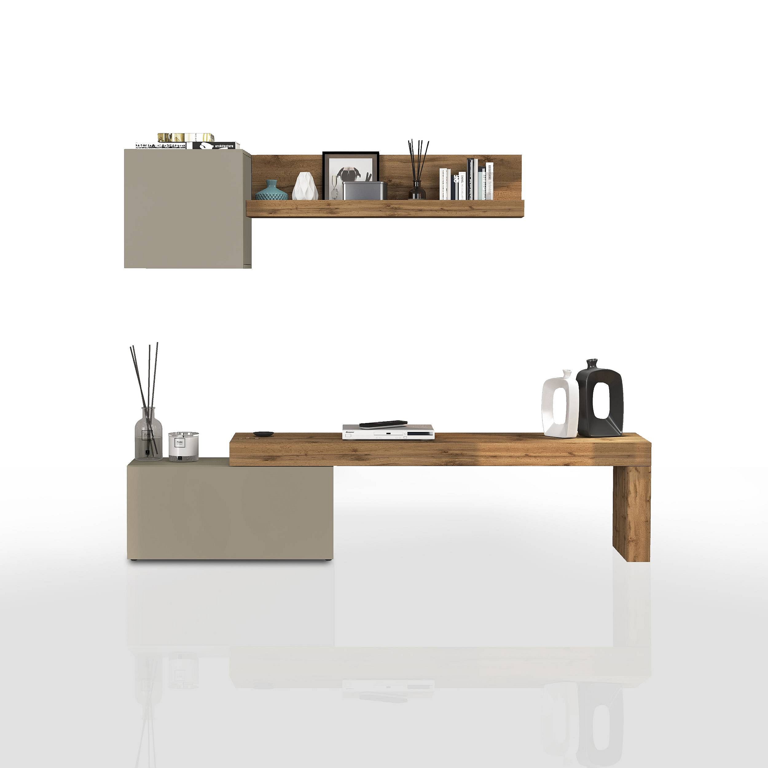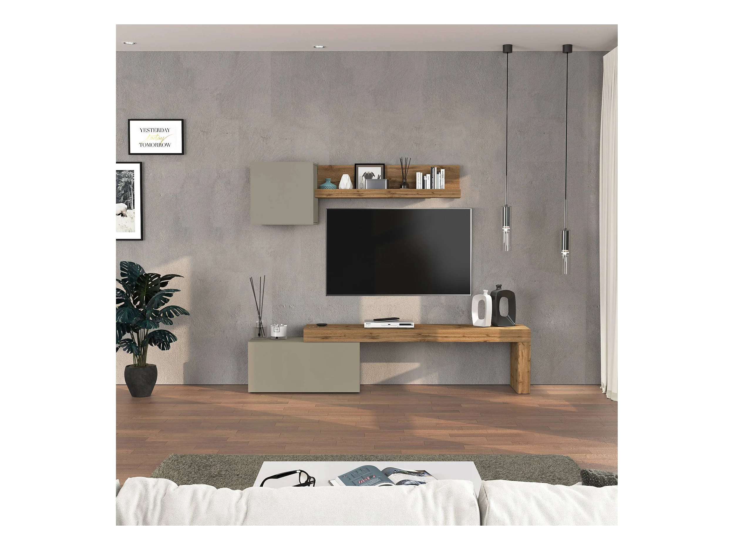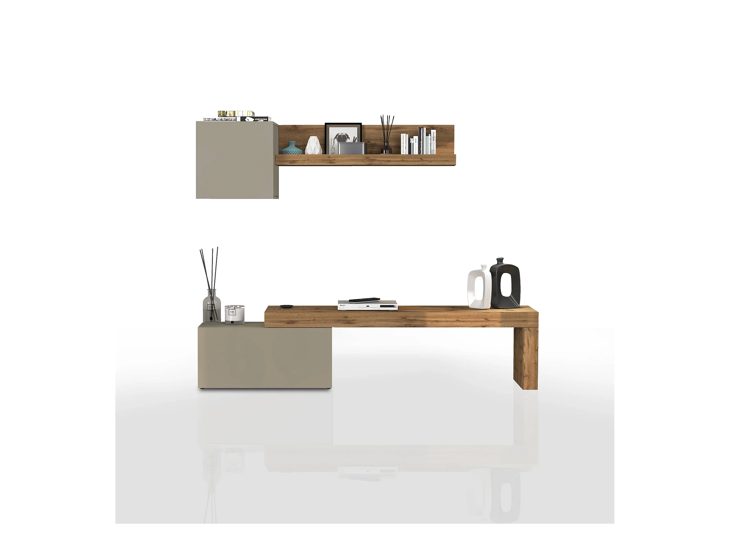 Parete attrezzata Chronos set soggiorno tortora opaco e rovere 180/260x40 cm