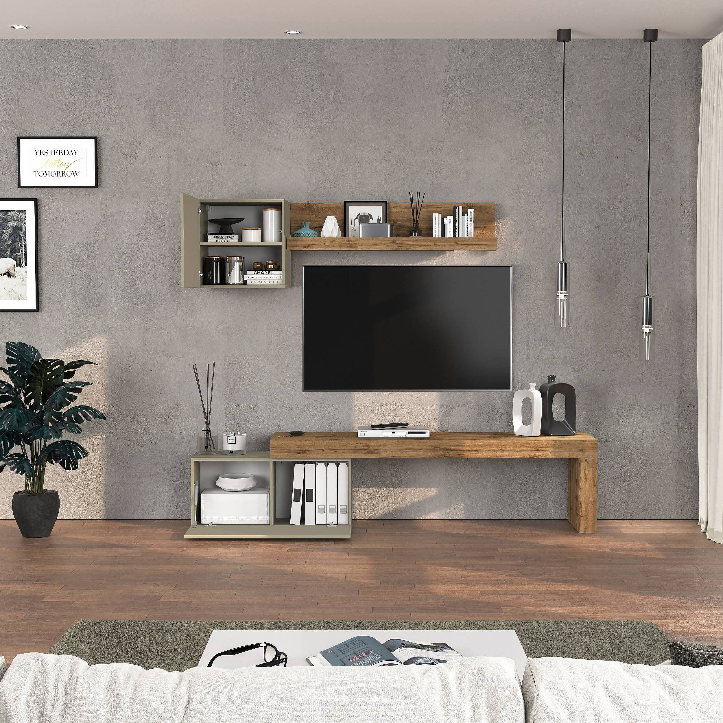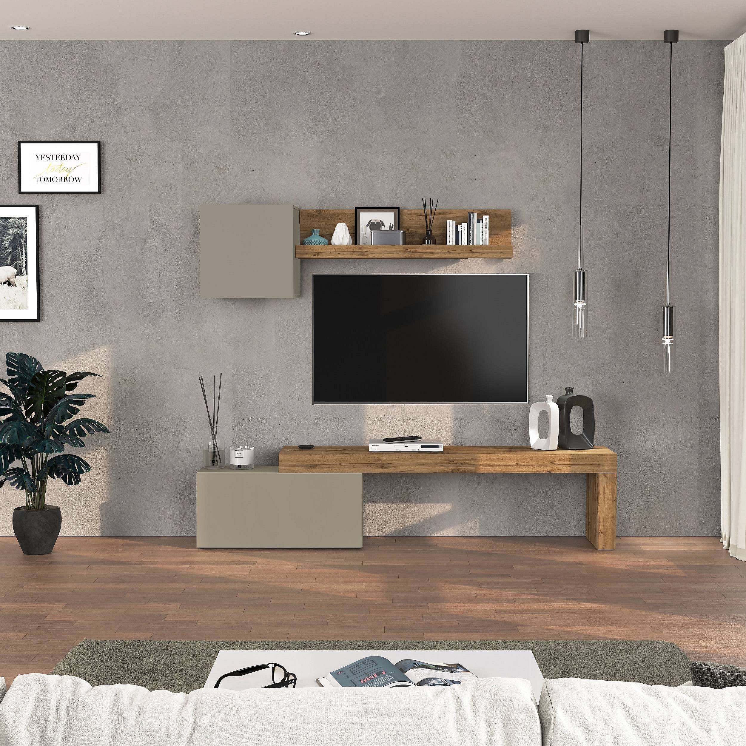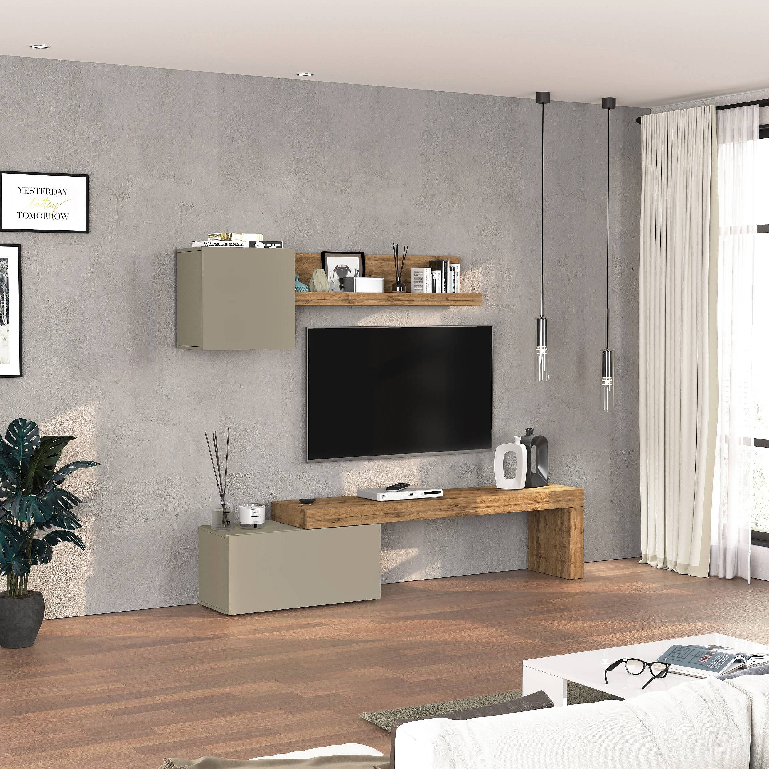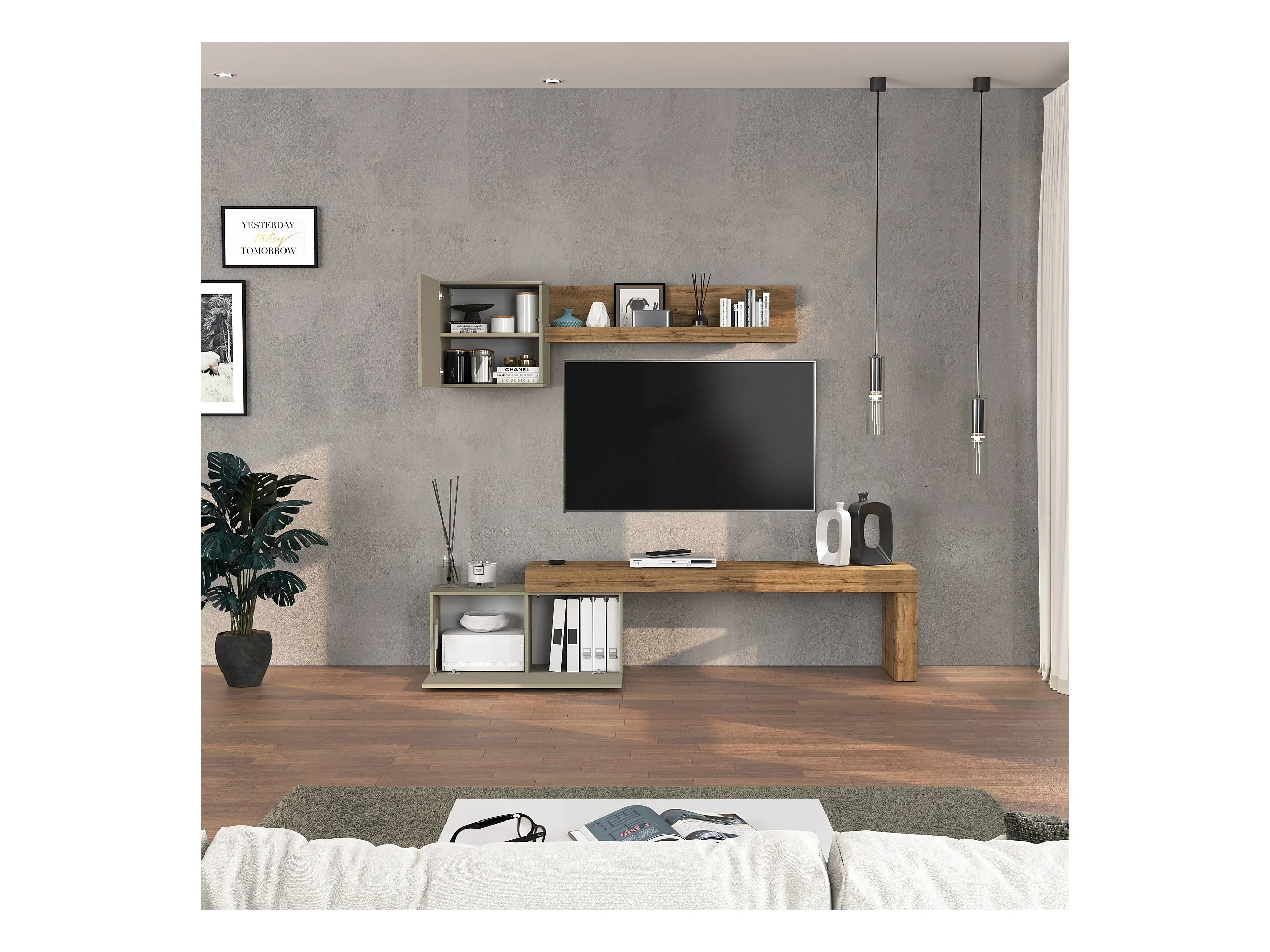 Parete attrezzata Chronos set soggiorno tortora opaco e rovere 180/260x40 cm