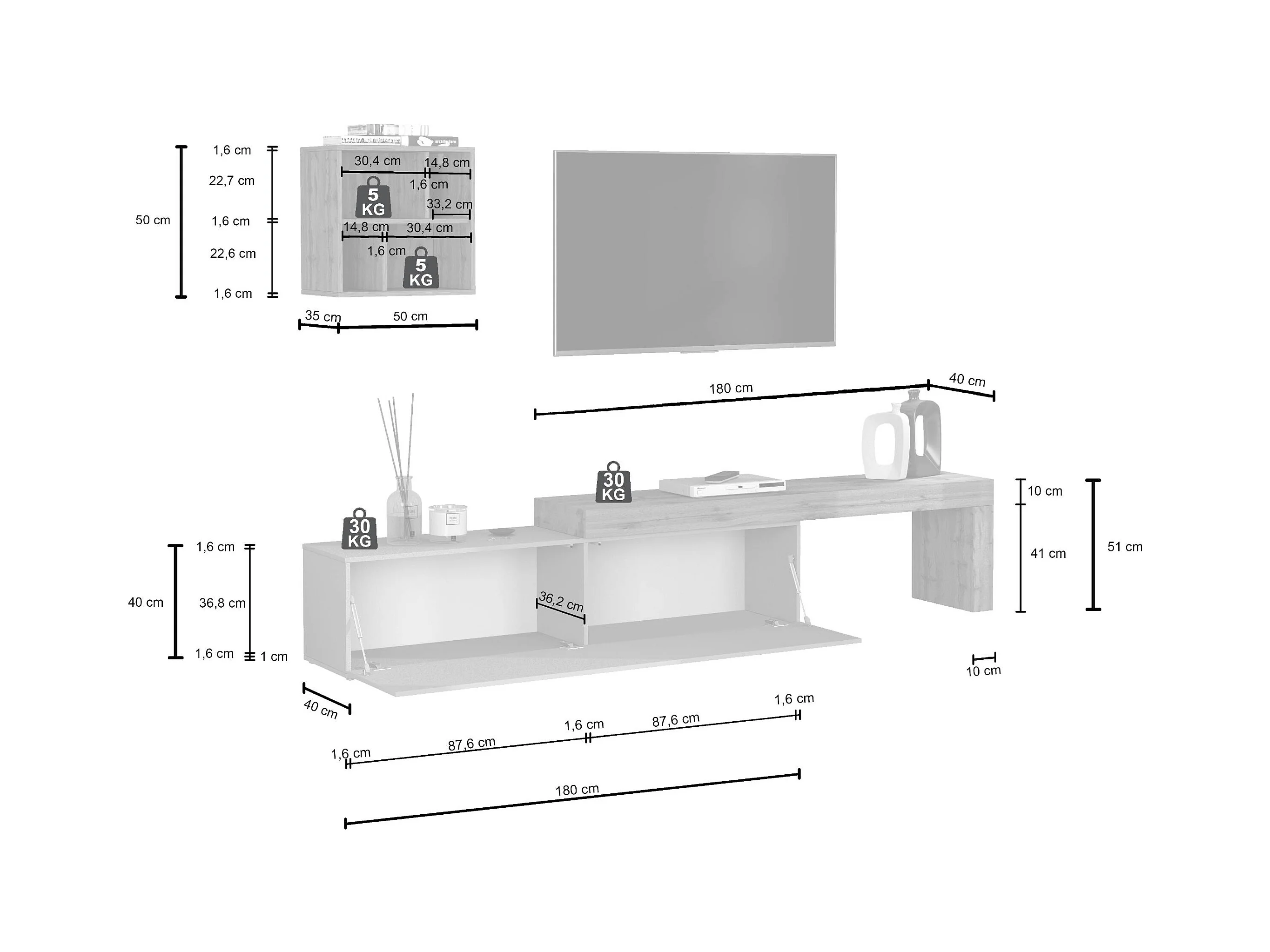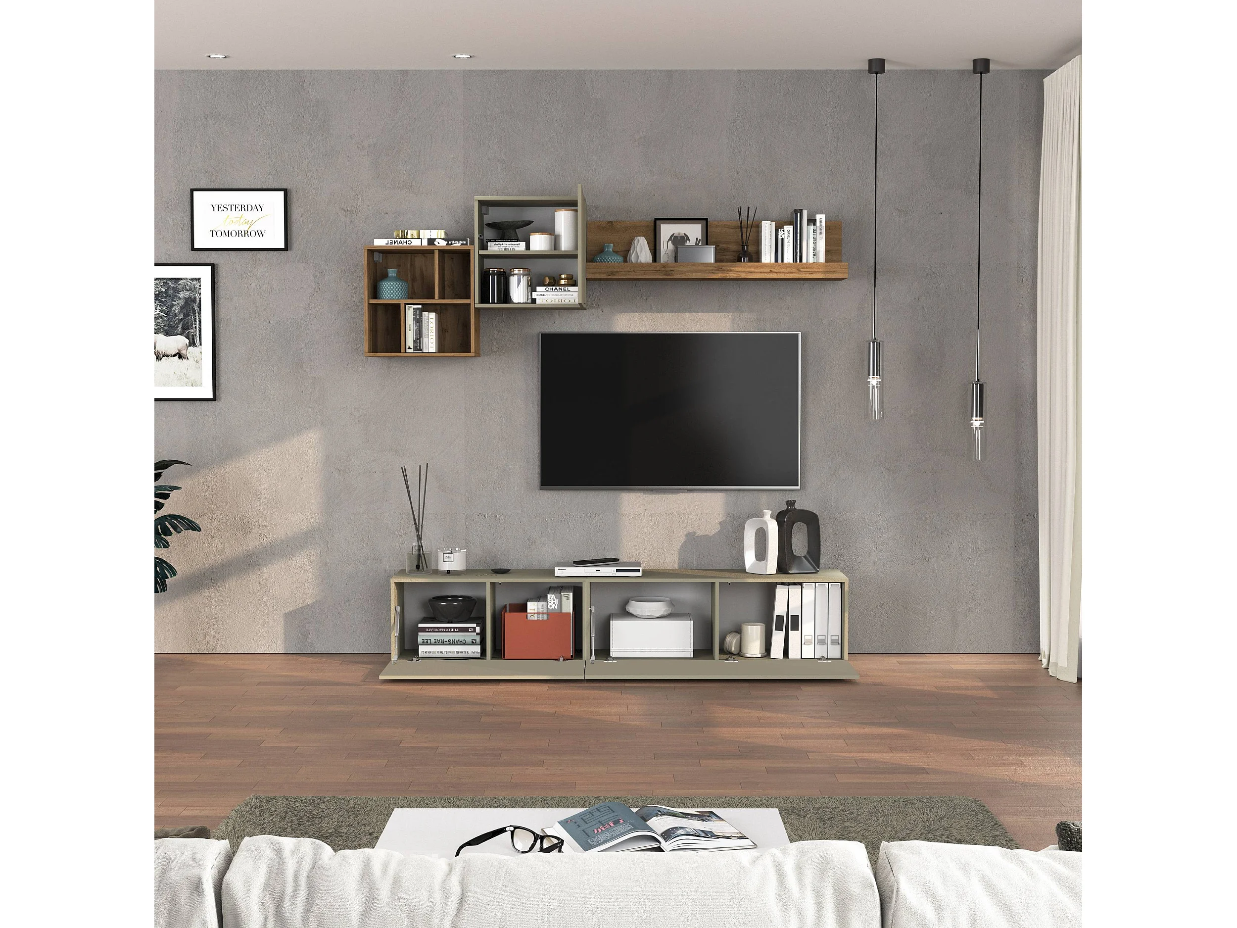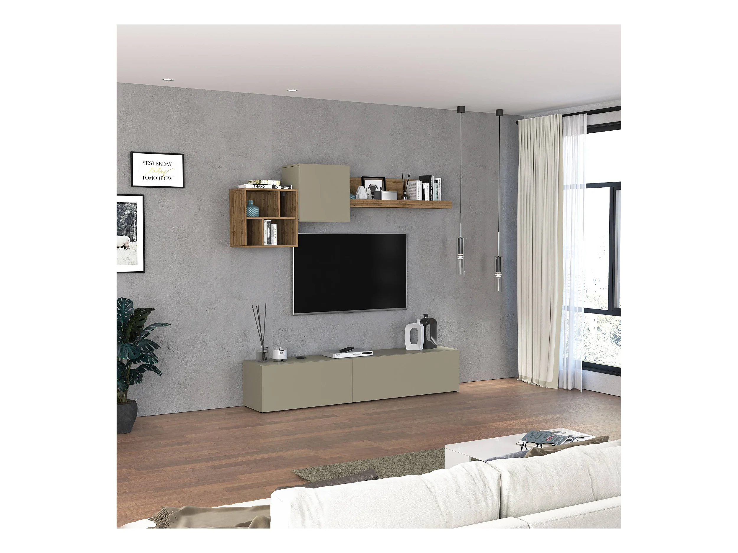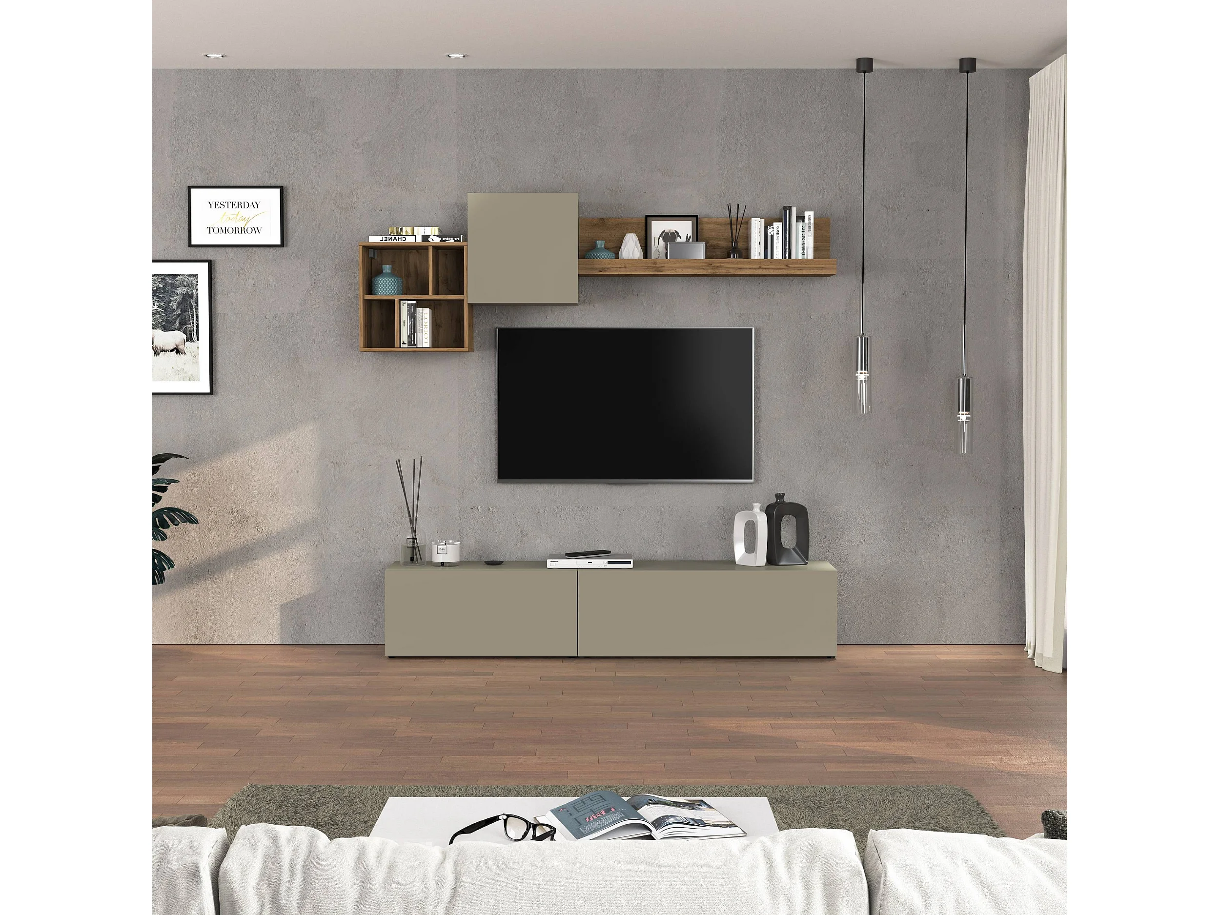 Parete attrezzata Chronos set soggiorno Tortora Opaco e Rovere 180/260x40 cm