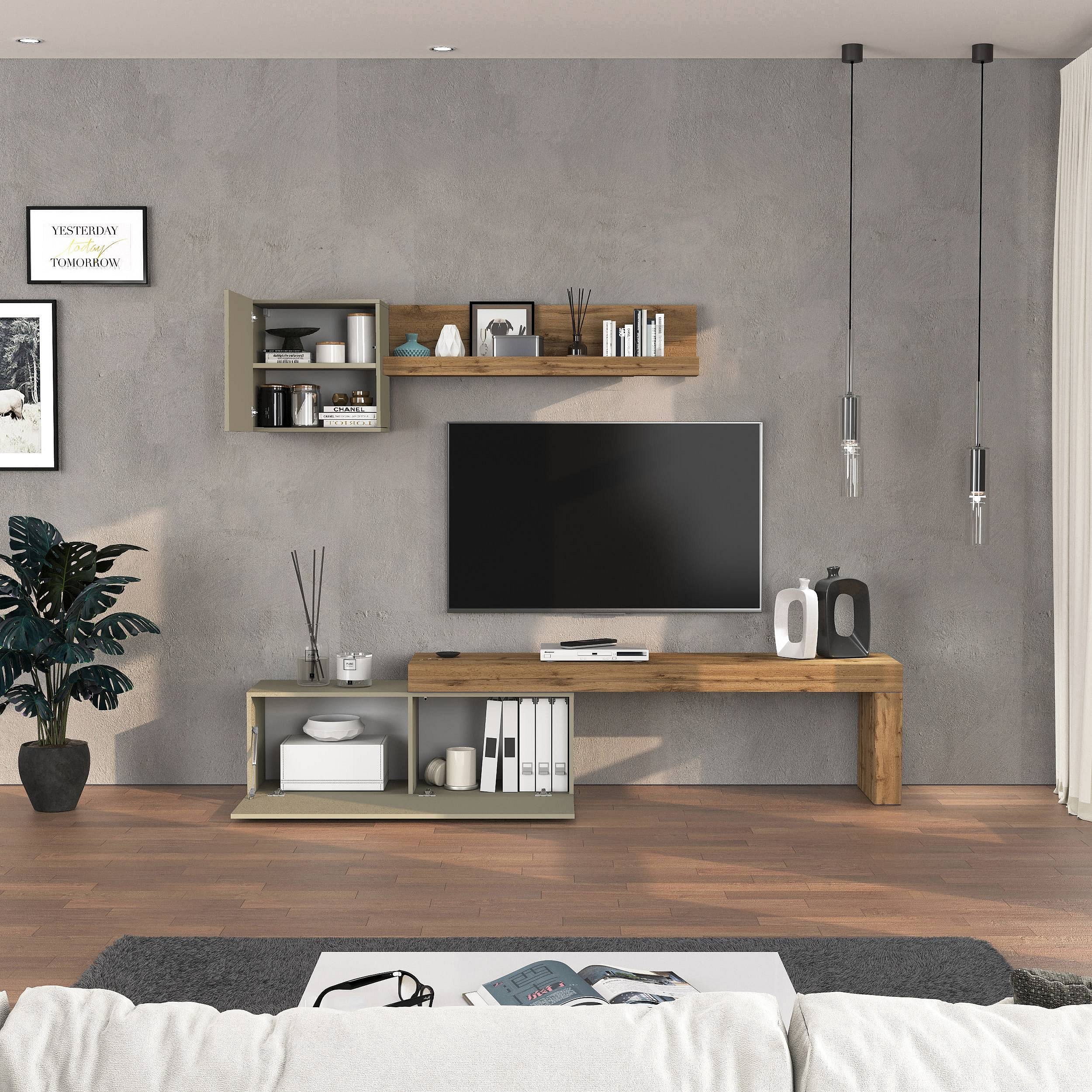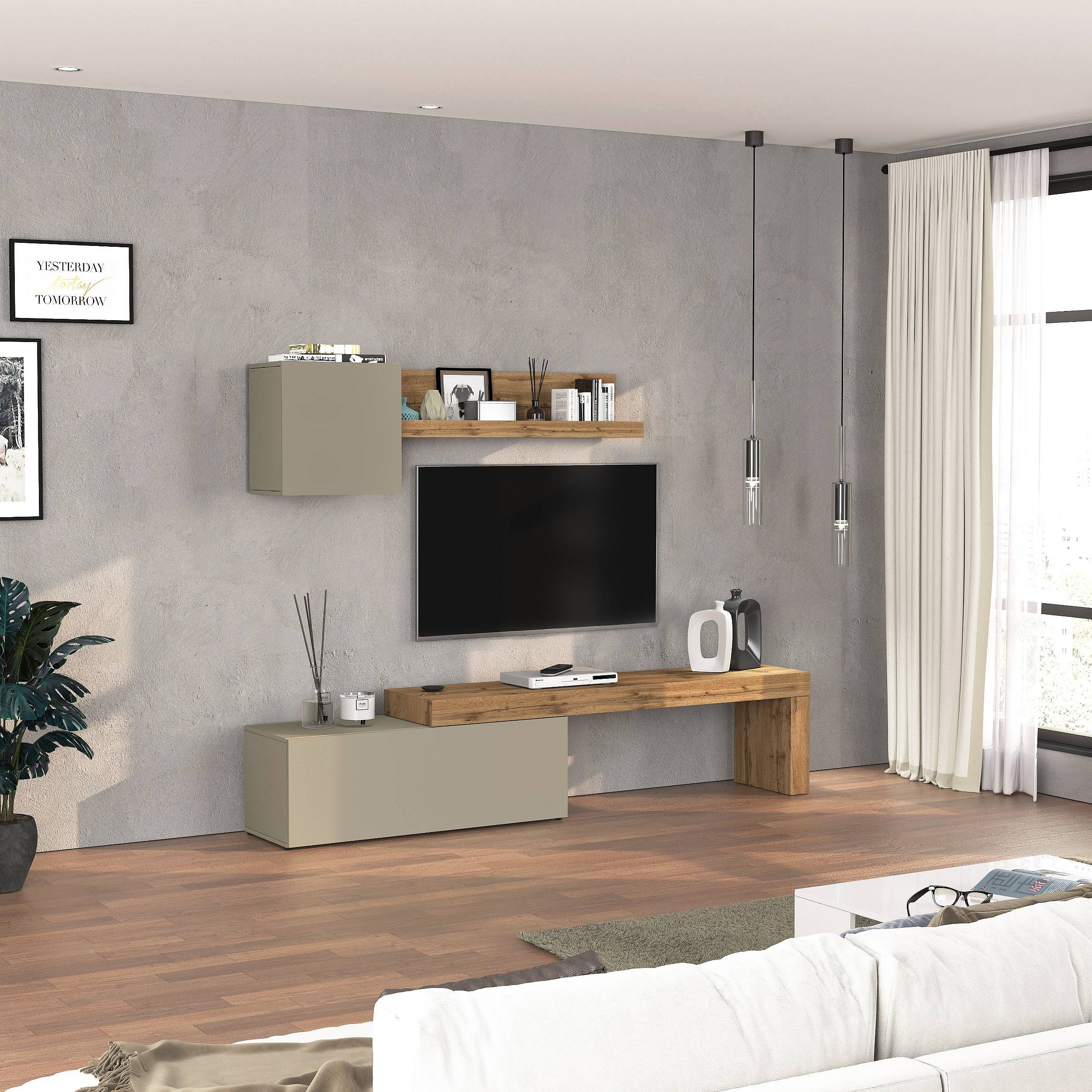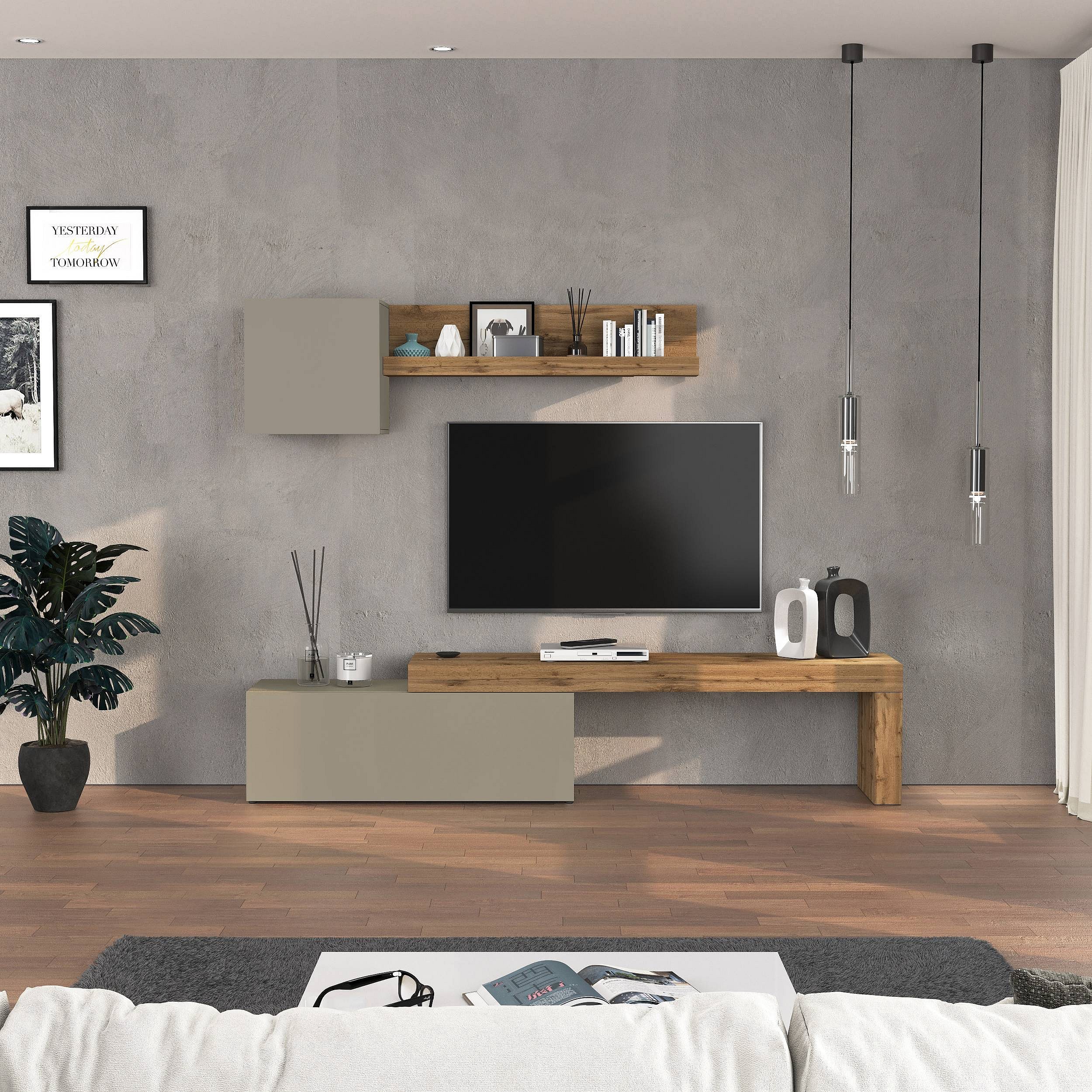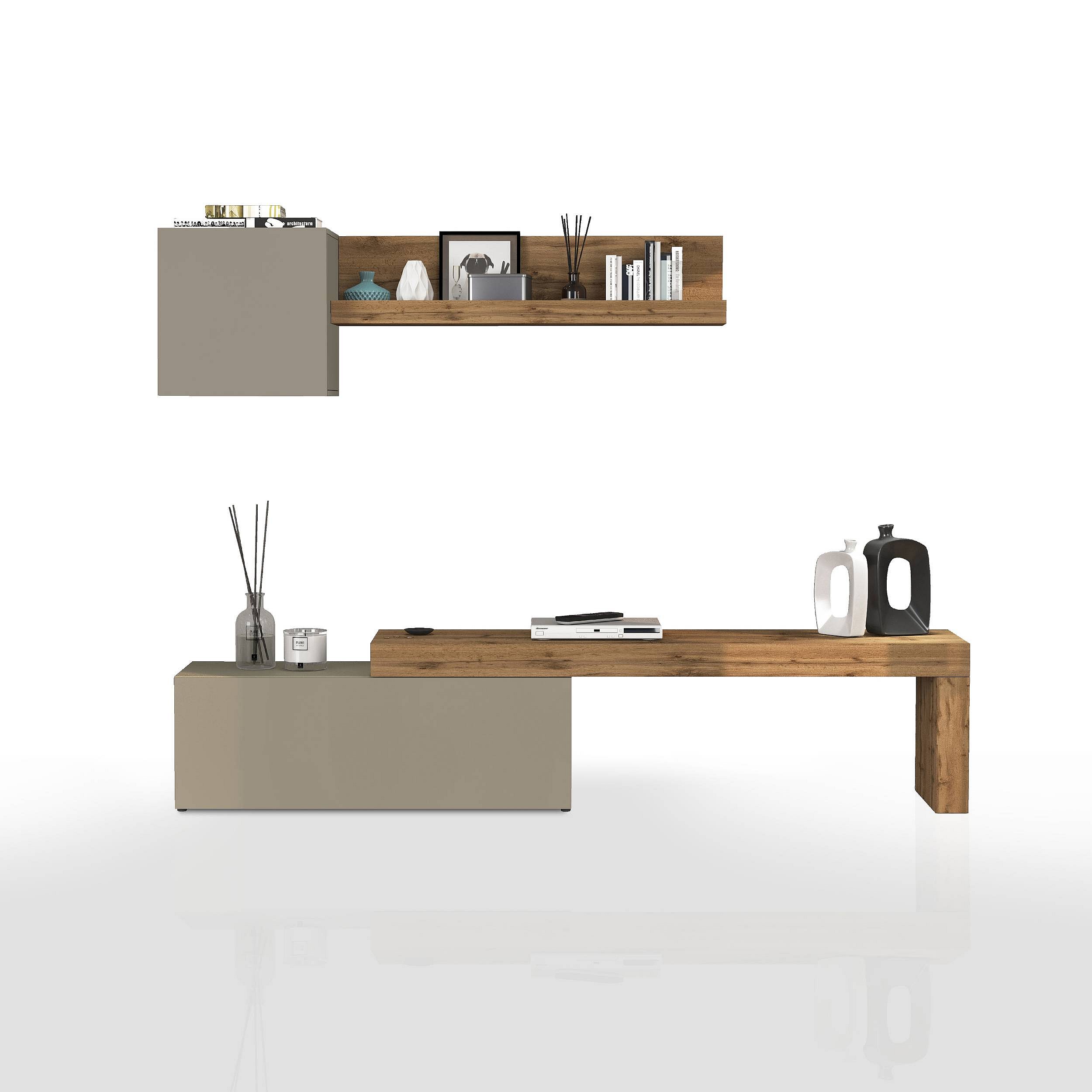 Parete attrezzata Chronos set soggiorno tortora opaco e rovere 180/290x40 cm
