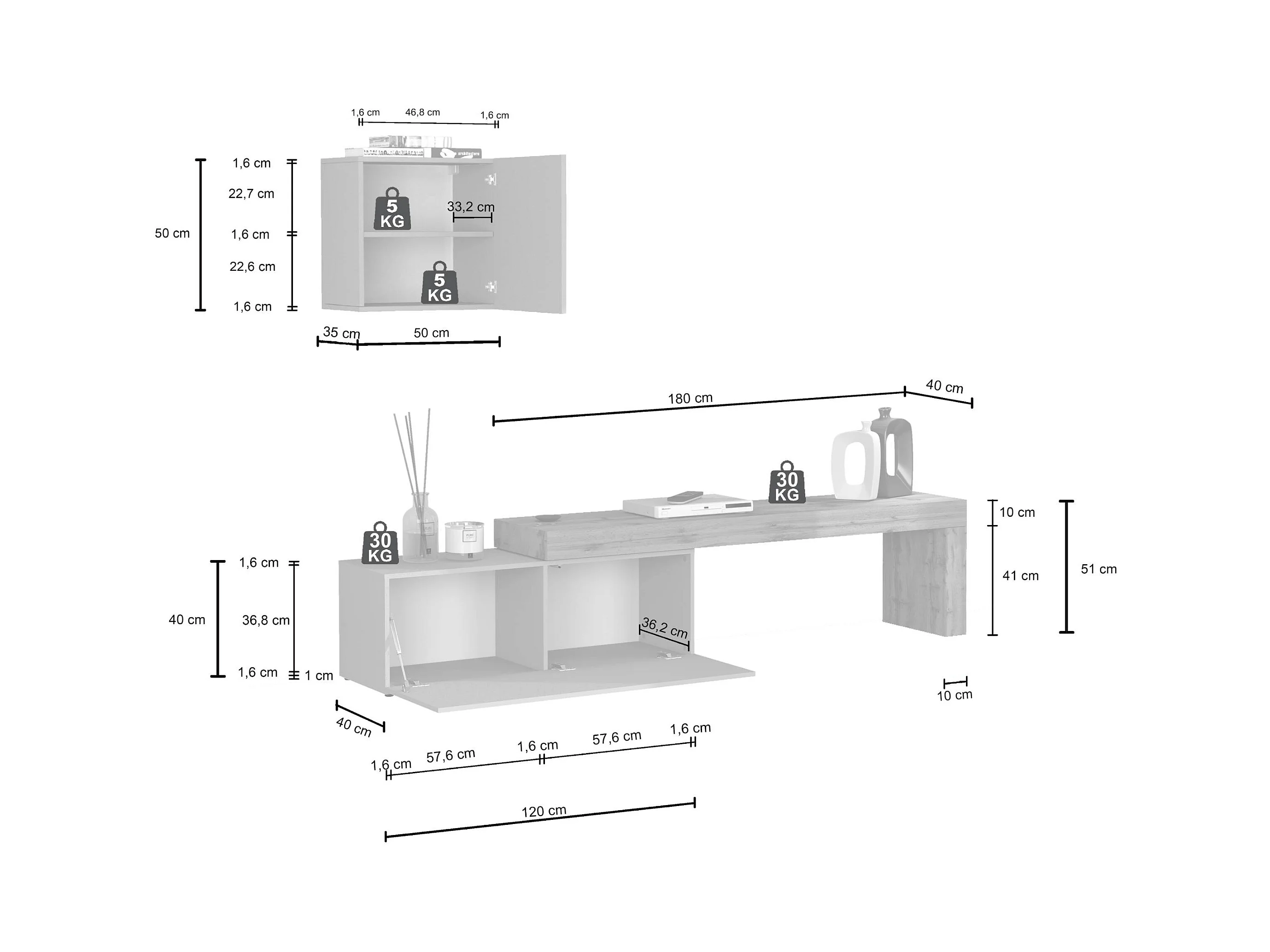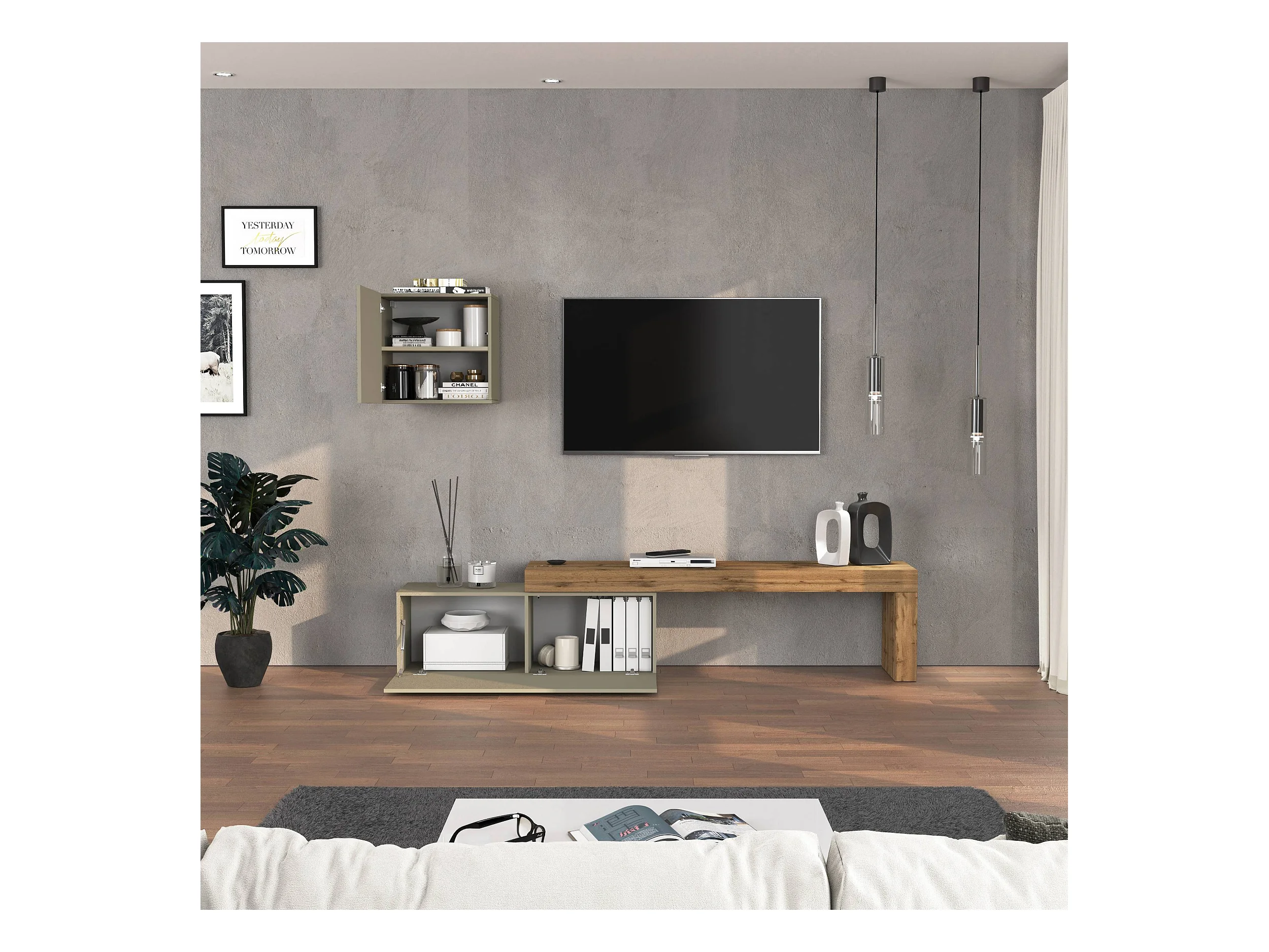 Parete attrezzata Chronos set soggiorno tortora opaco e rovere 180/290x40 cm