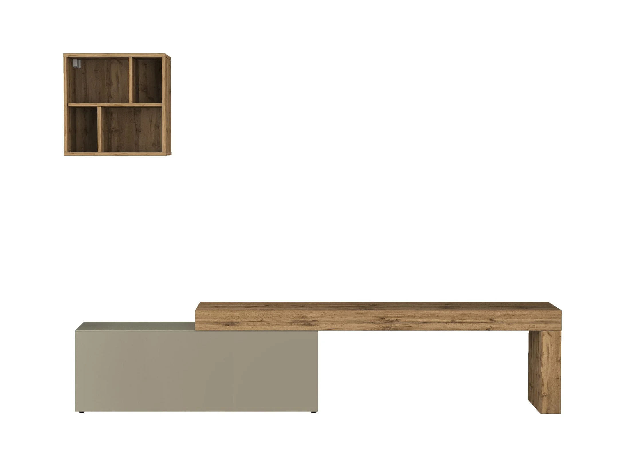 Parete attrezzata Chronos set soggiorno tortora opaco e rovere 180/290x40 cm