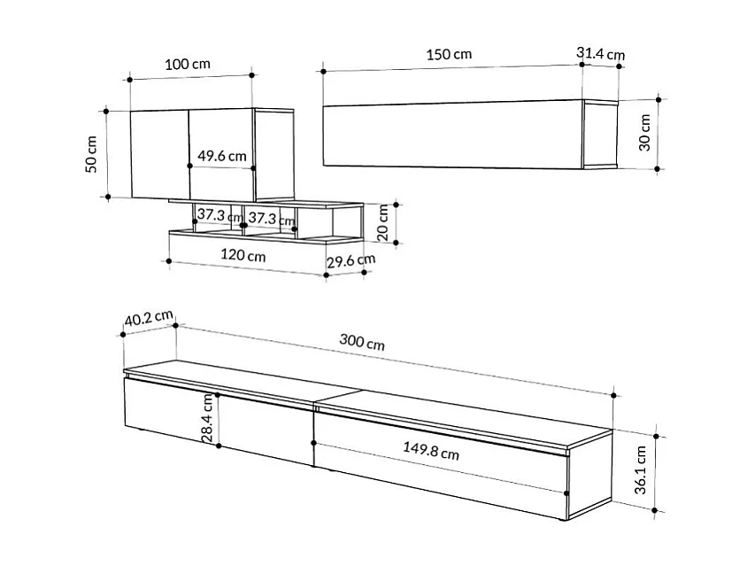 Parete attrezzata colore antracite e tortora con particolari noce Monica 300