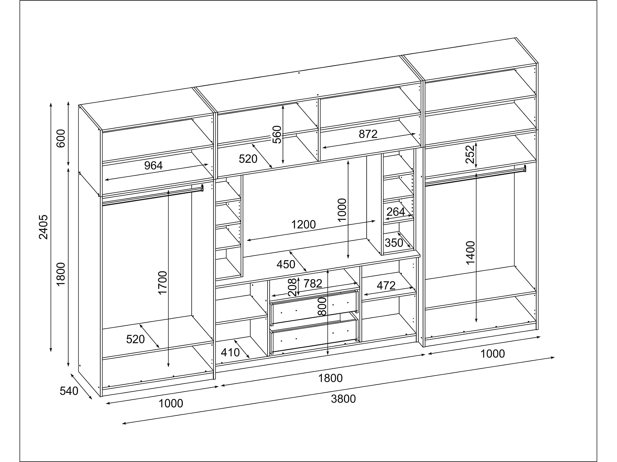 Parete attrezzata con grandi armadi e pensili DAKO – Direttamente dal produttore EMEBLAST