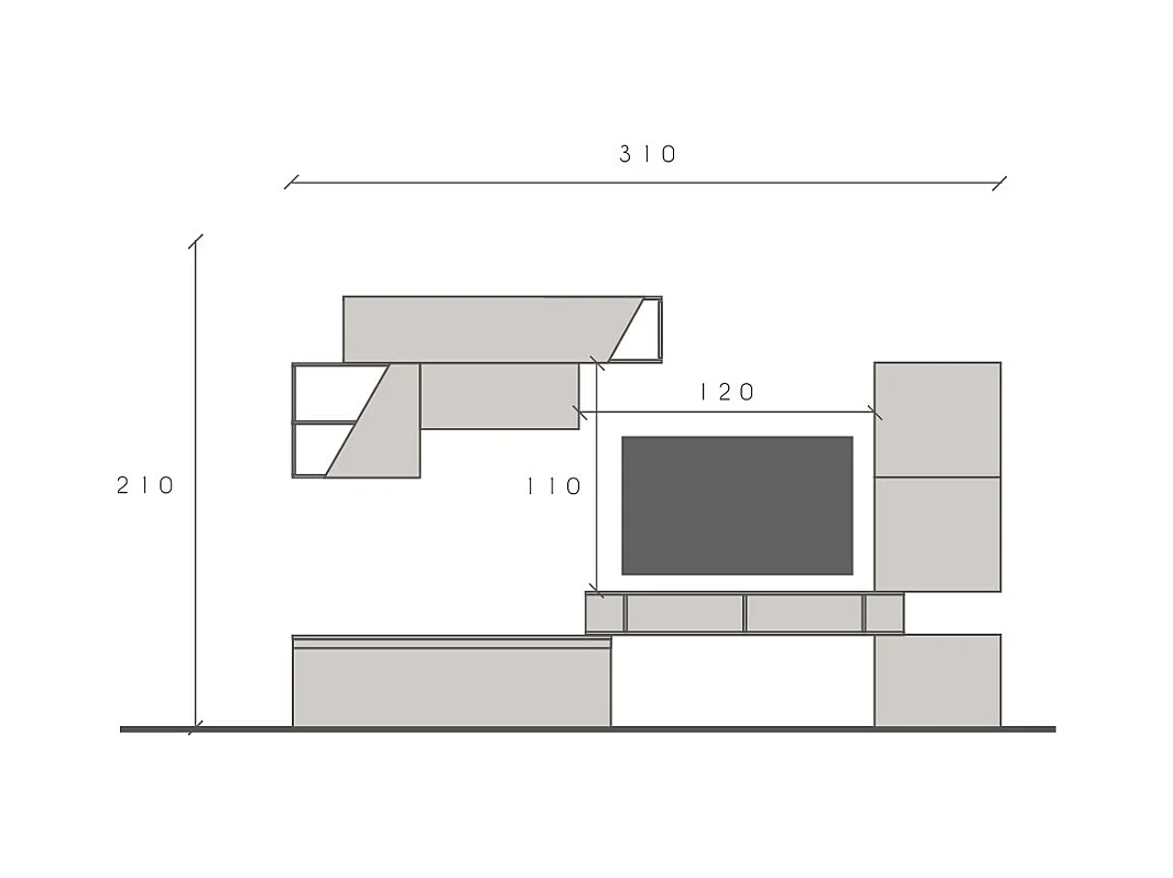 Parete attrezzata da soggiorno 310x210 cm bianco lucido e grigio chiaro PAL82