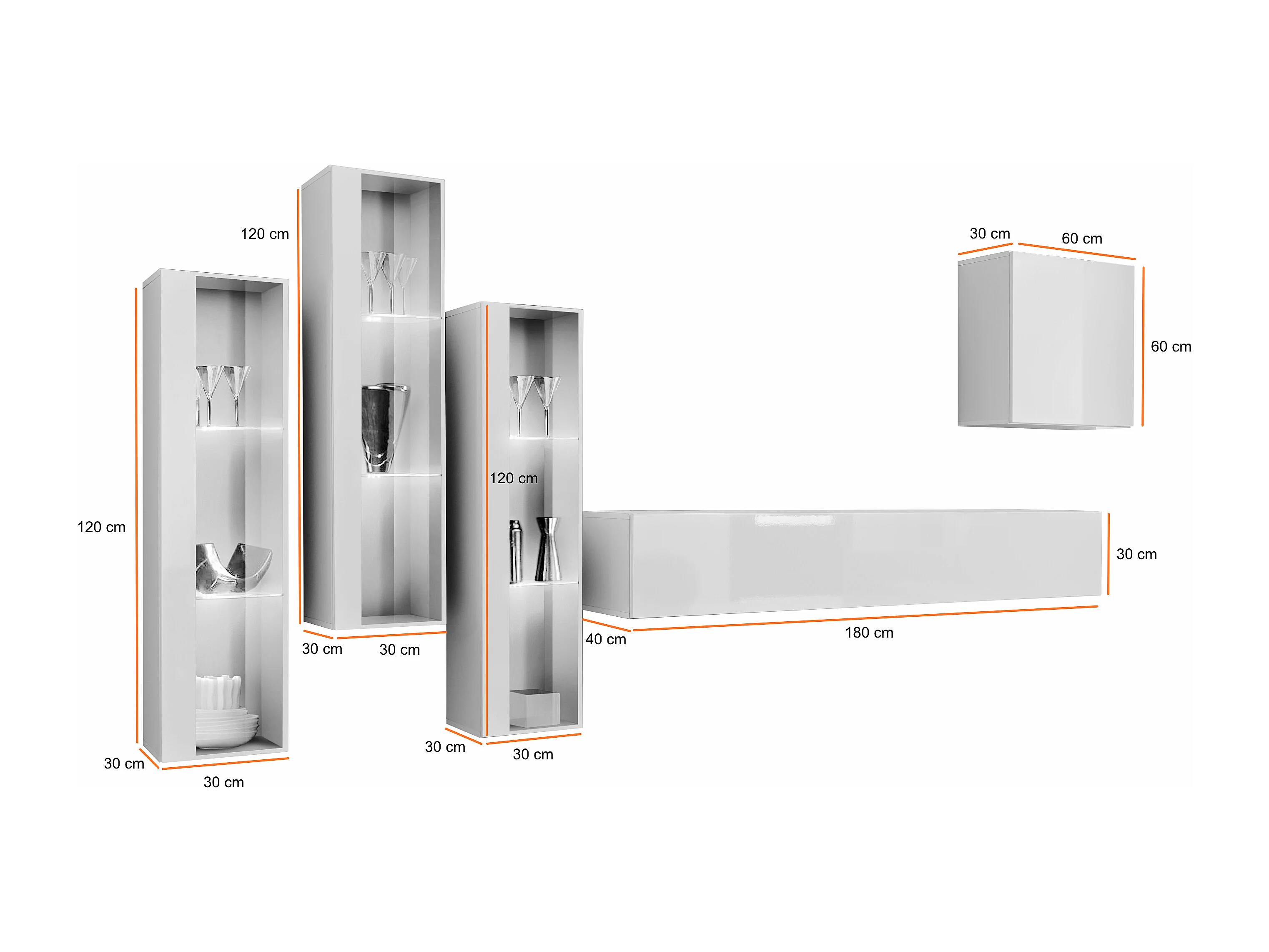 Parete attrezzata da soggiorno con luci LED 270x160 bianco e nero PAP57