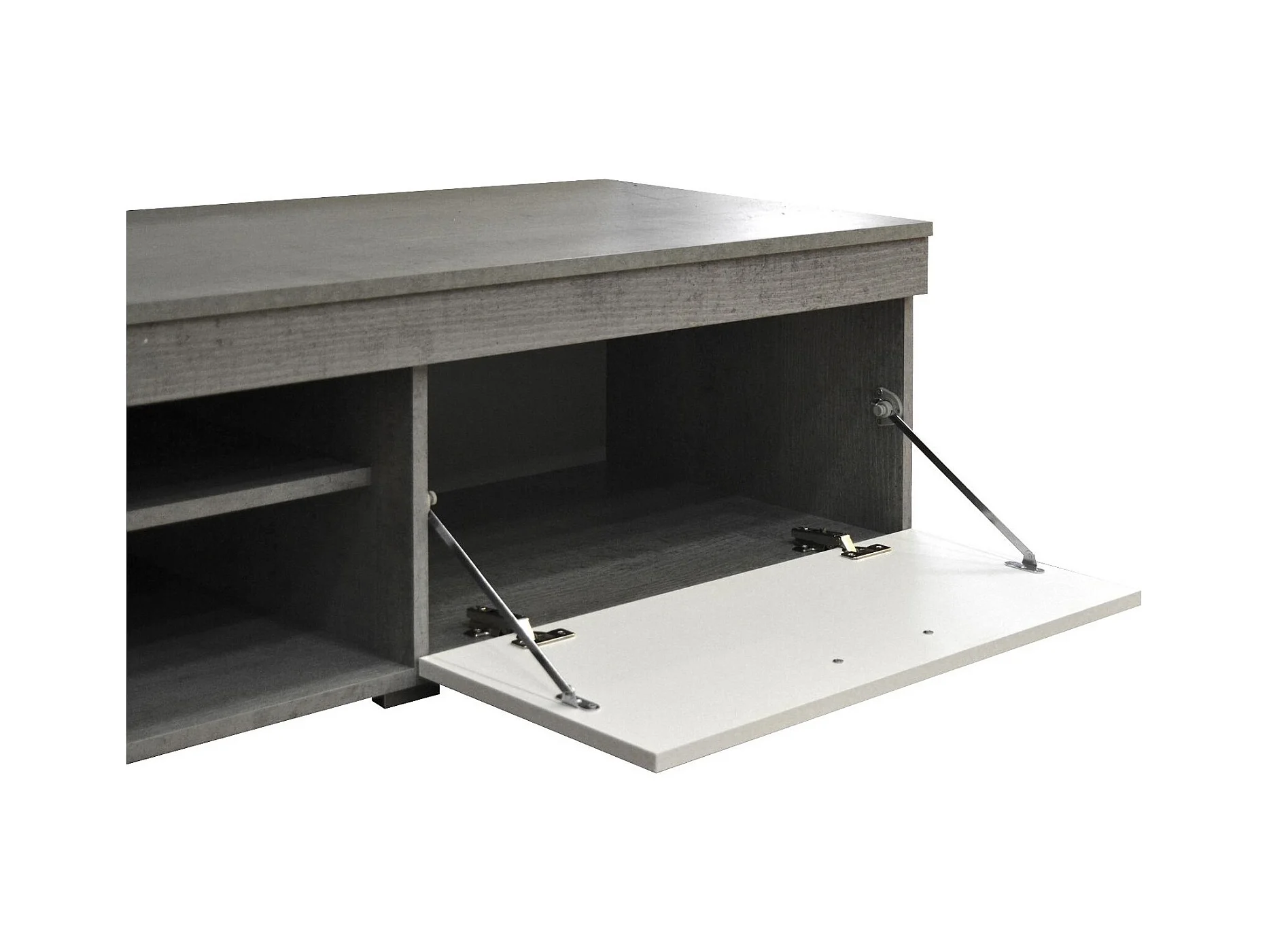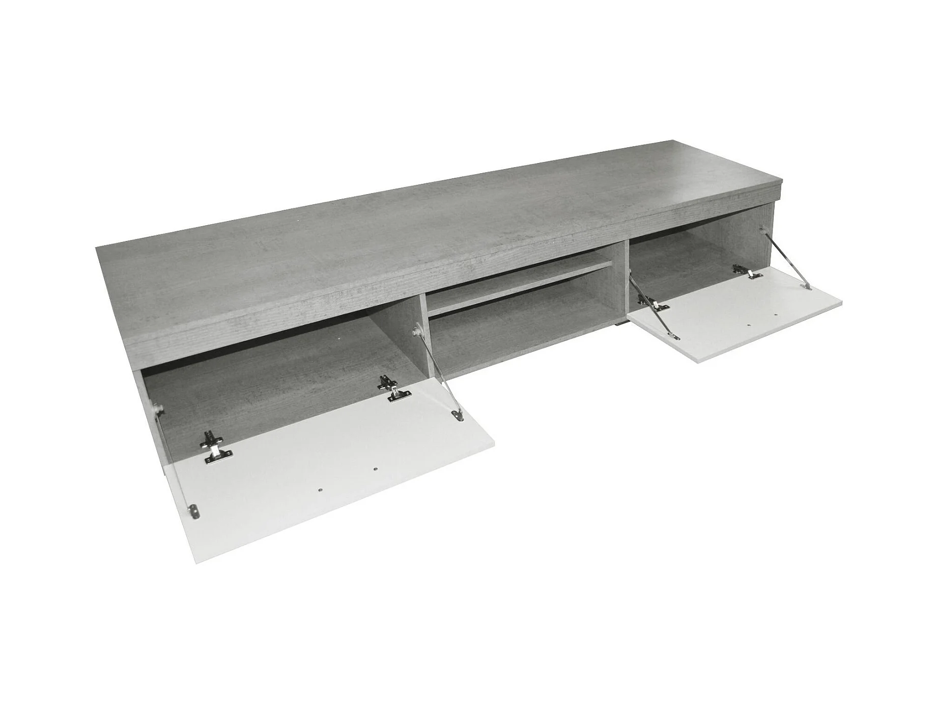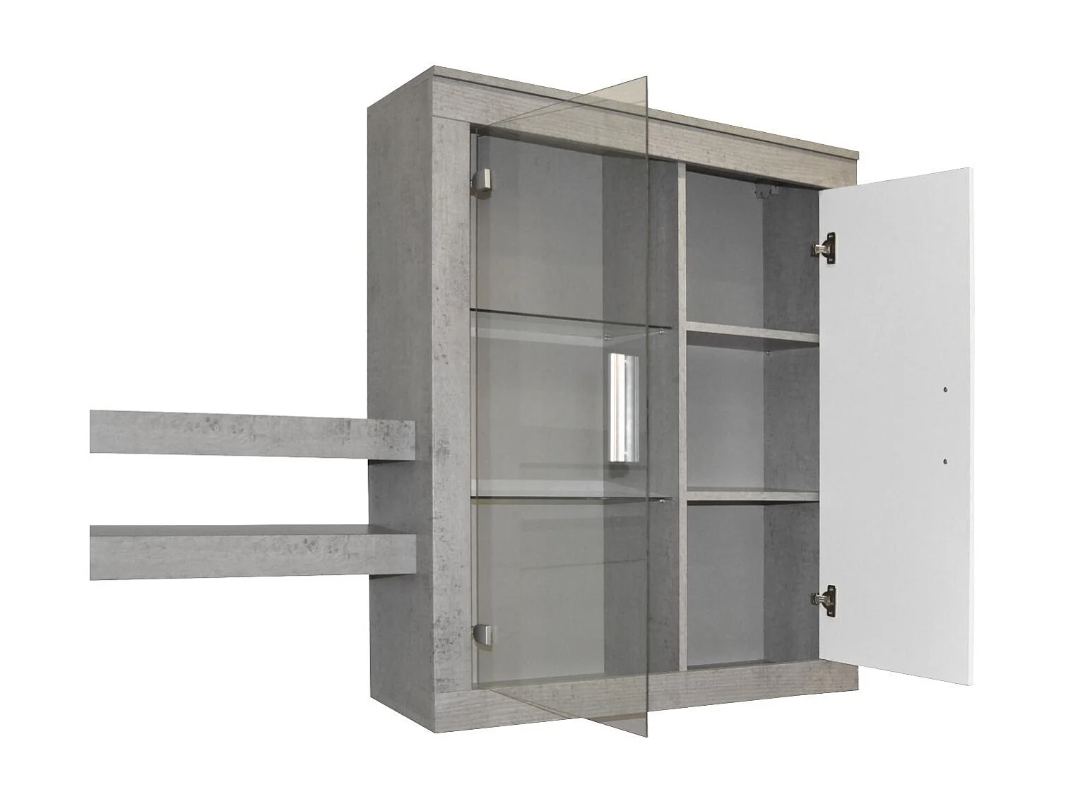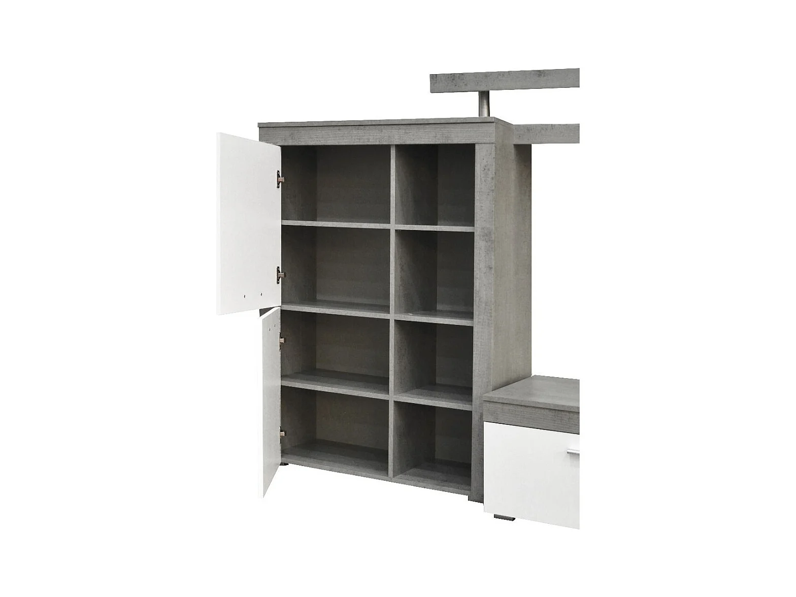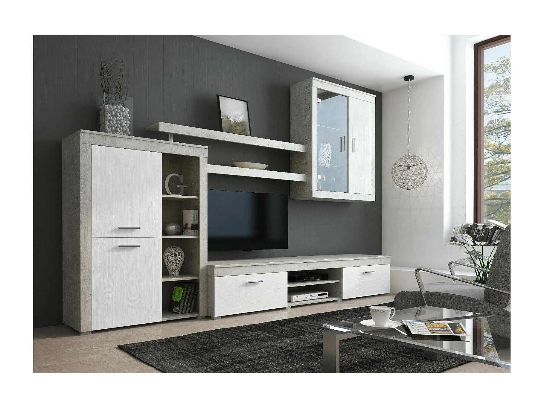 Parete Attrezzata Da Soggiorno Salotto Moderna Con Ante Vani A Giorno Vetrinetta Mobile TV Design Moderno Moduli Sospesi 293 x 193 x 50 Cm Bianco E Grigio Cemento