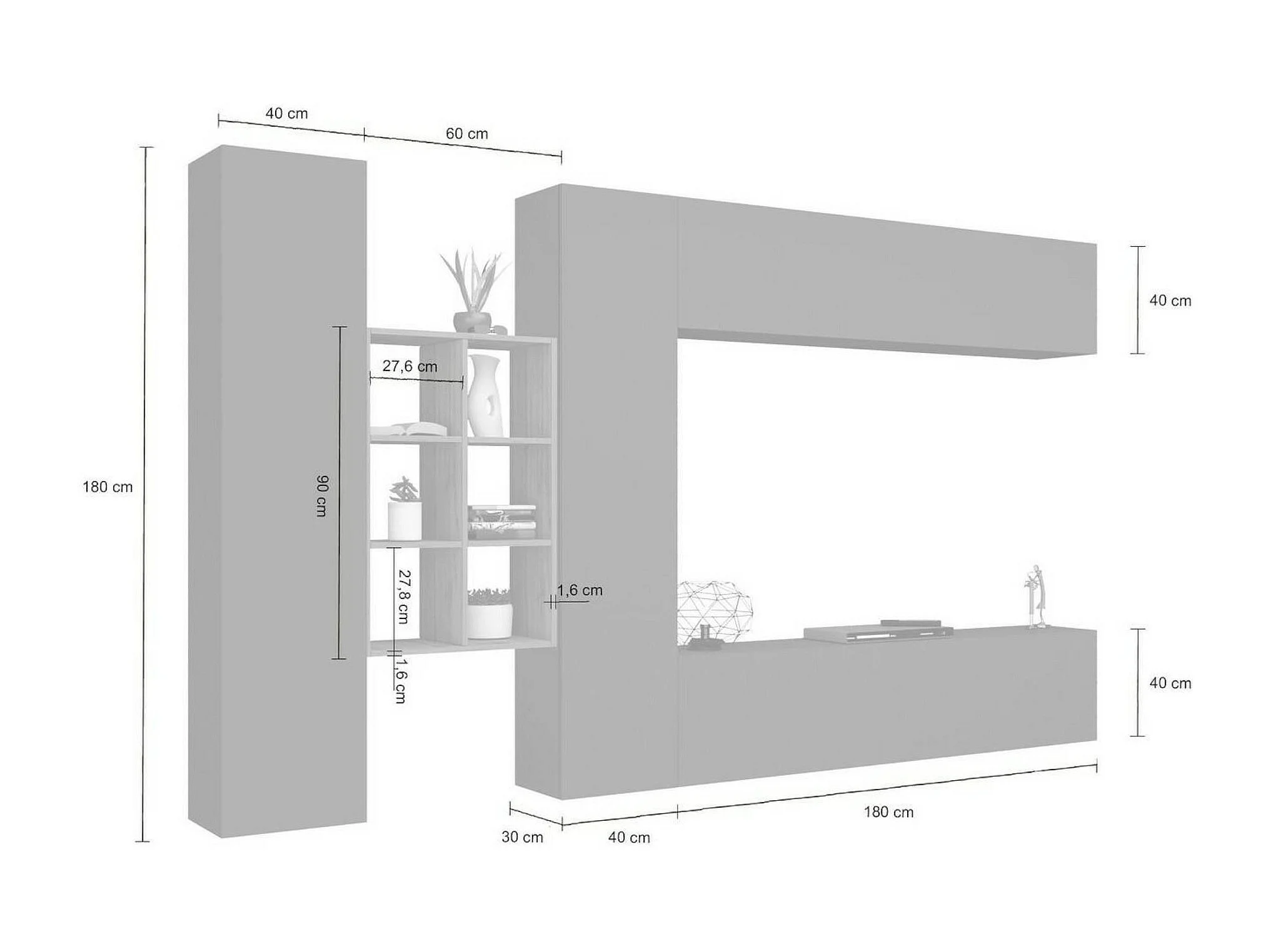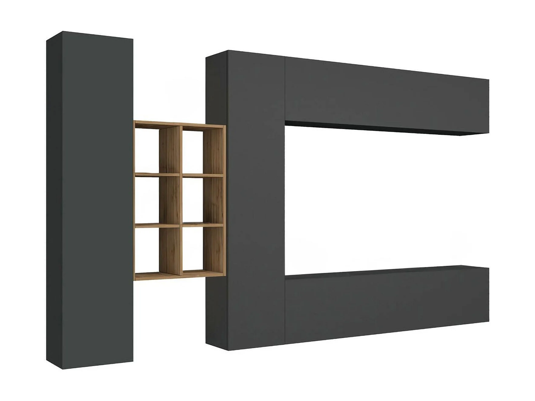 Parete Attrezzata Agna, 17 Ripiani Made in Italy, 30x280x180h cm Nero Antracite
