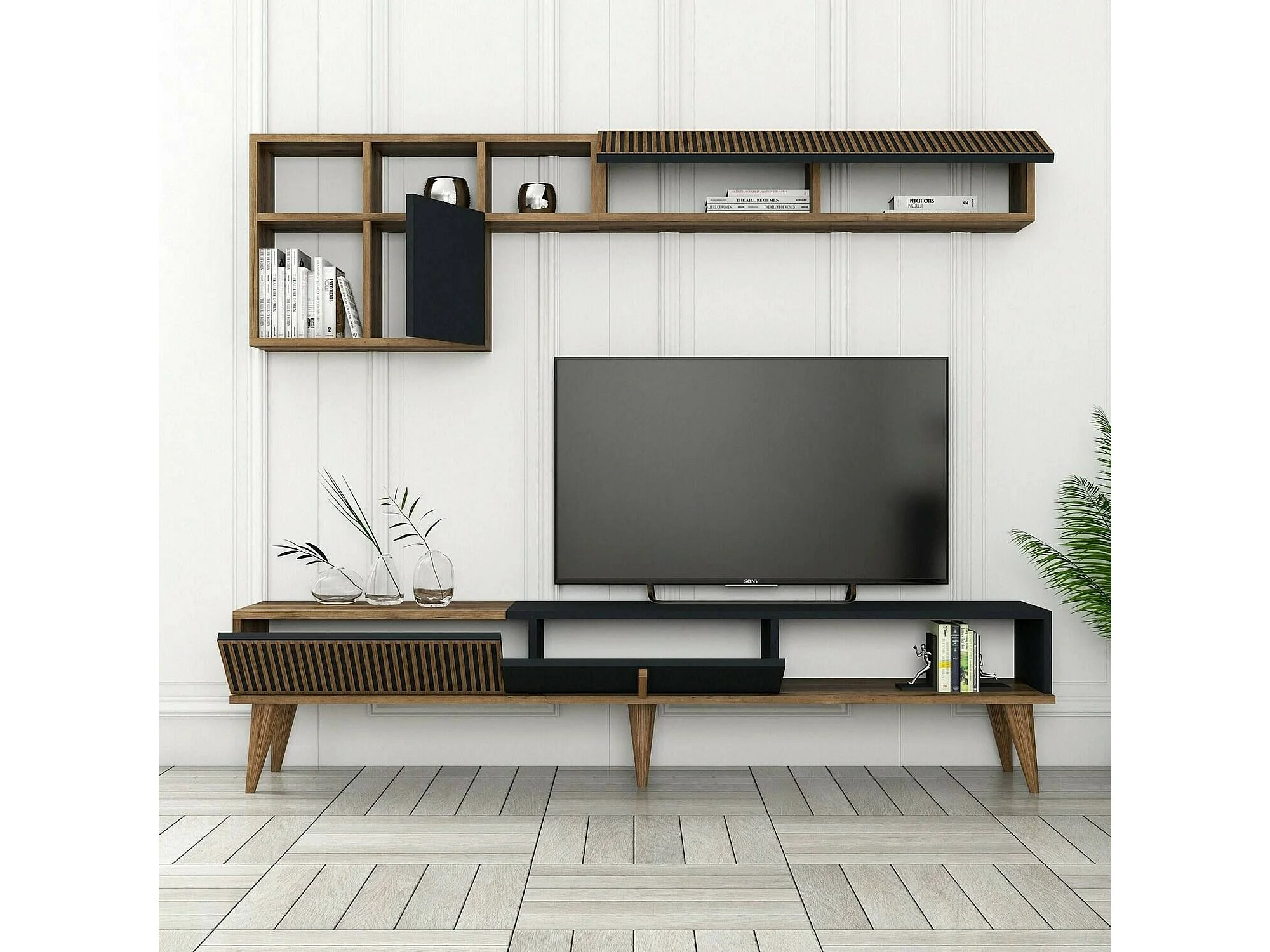 Dmora - Parete attrezzata Ostro, 180x35h40 cm, Noce e Antracite