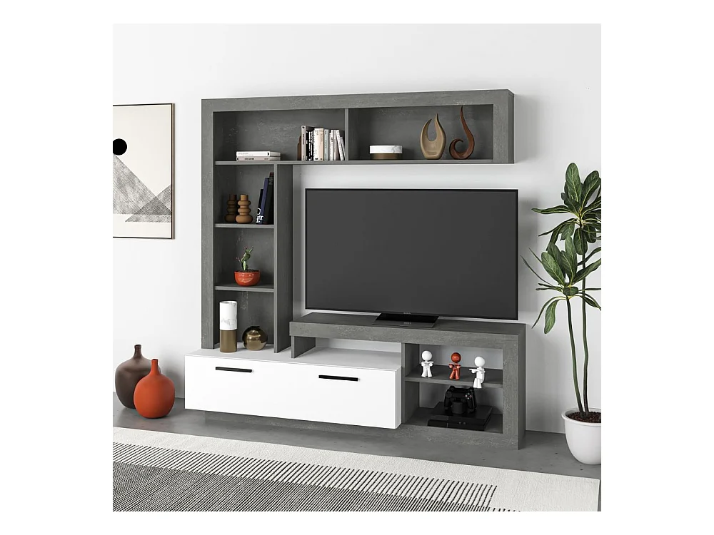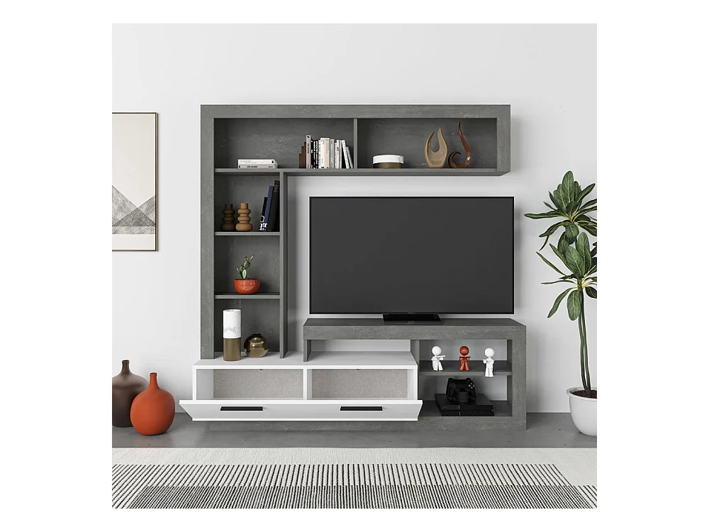 Parete attrezzata Leo 171x42x171 colore cemento bianco