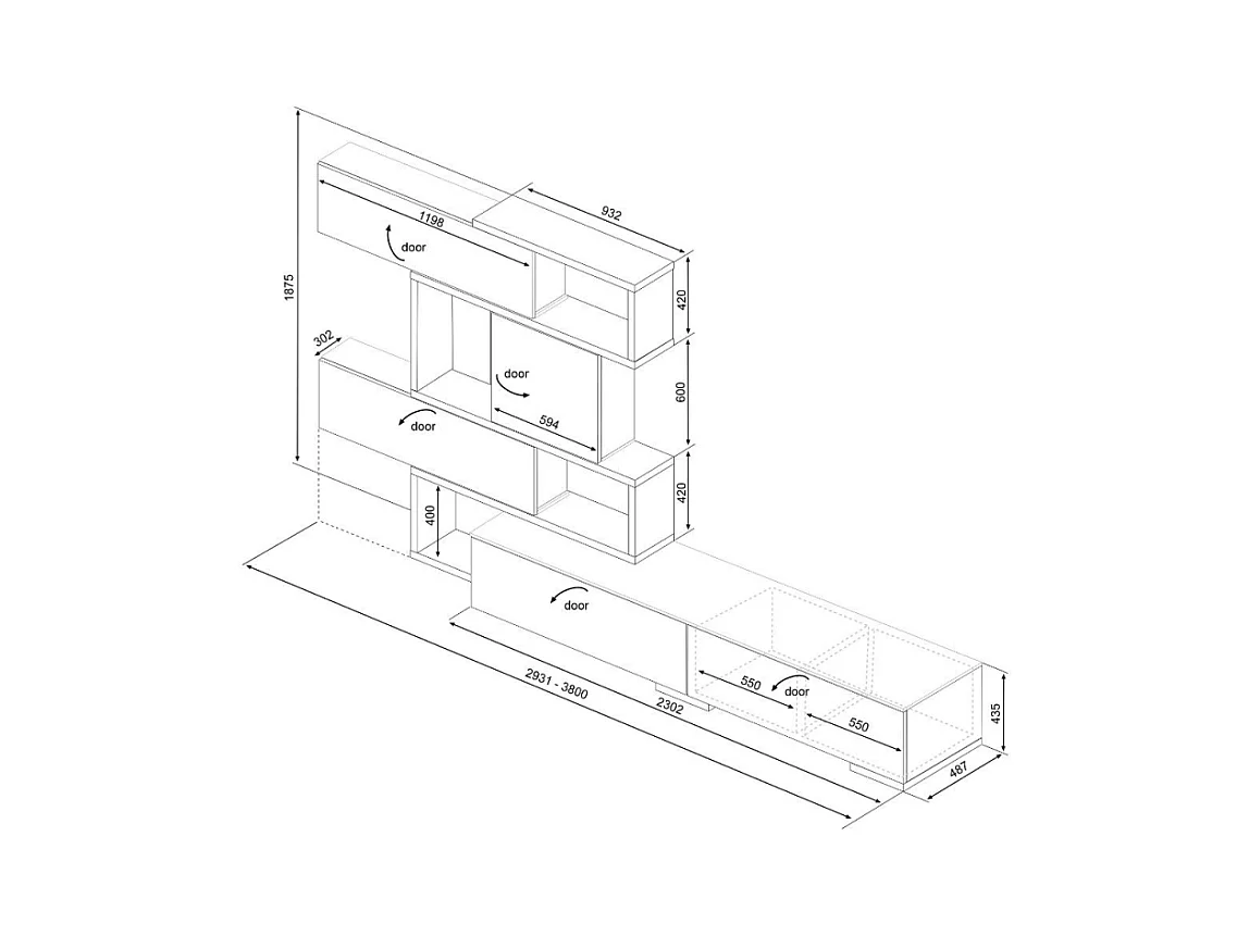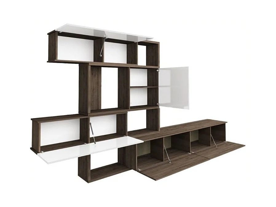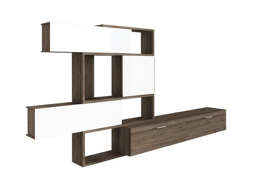 Parete attrezzata lineare o angolare reversibile 8025 colore noce e bianco
