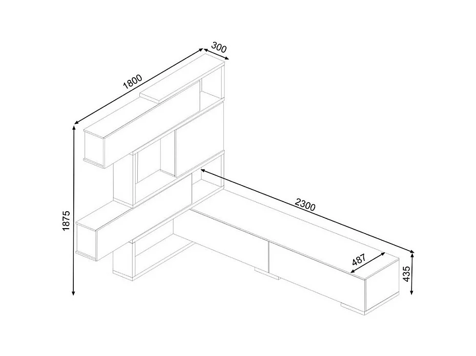 Parete attrezzata 301x44x195h Sabry colore bianco lucido rovere Kadiz