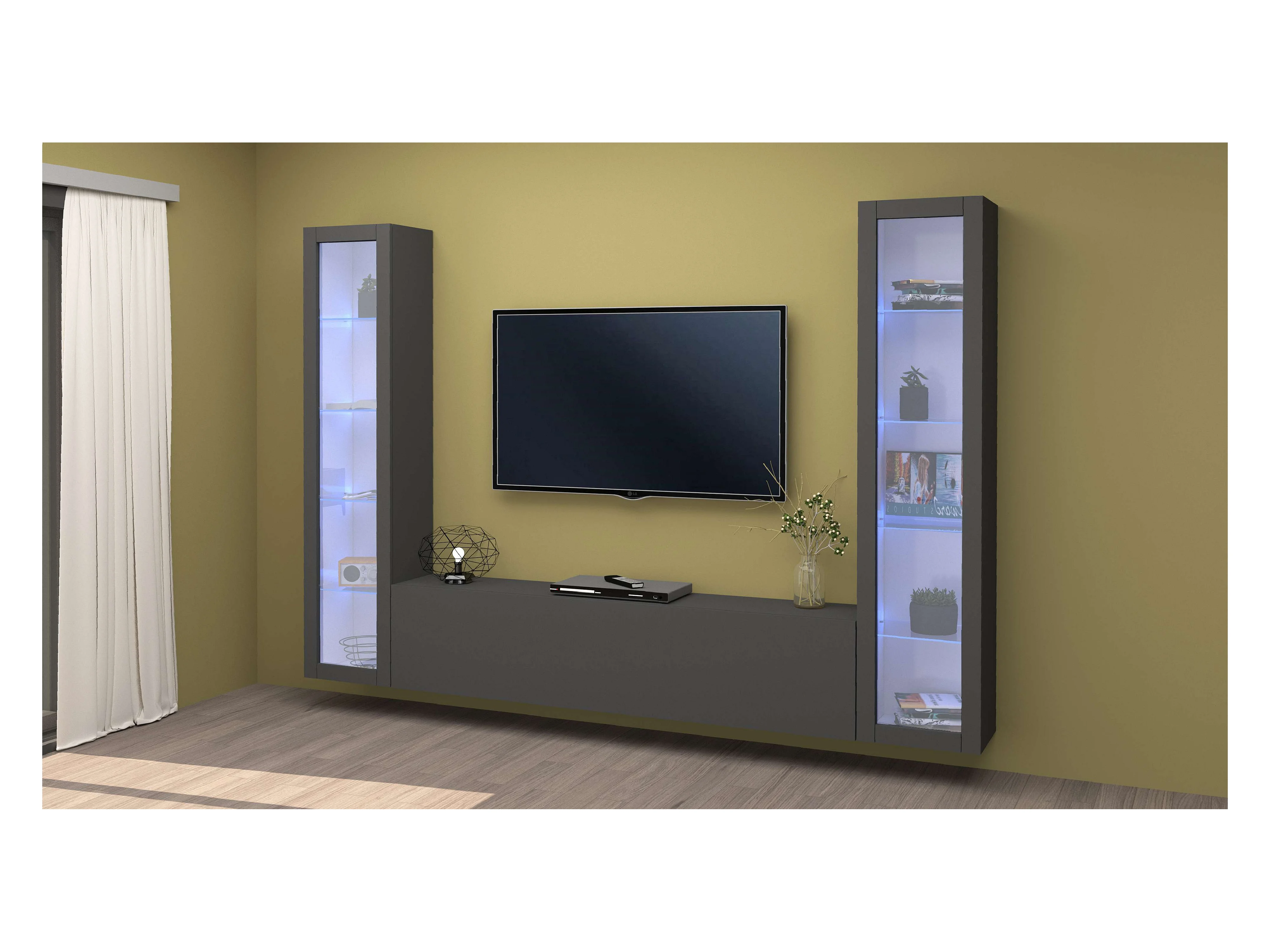 Parete attrezzata moderna porta TV vetrina pensile armadio Note Ledge antracite