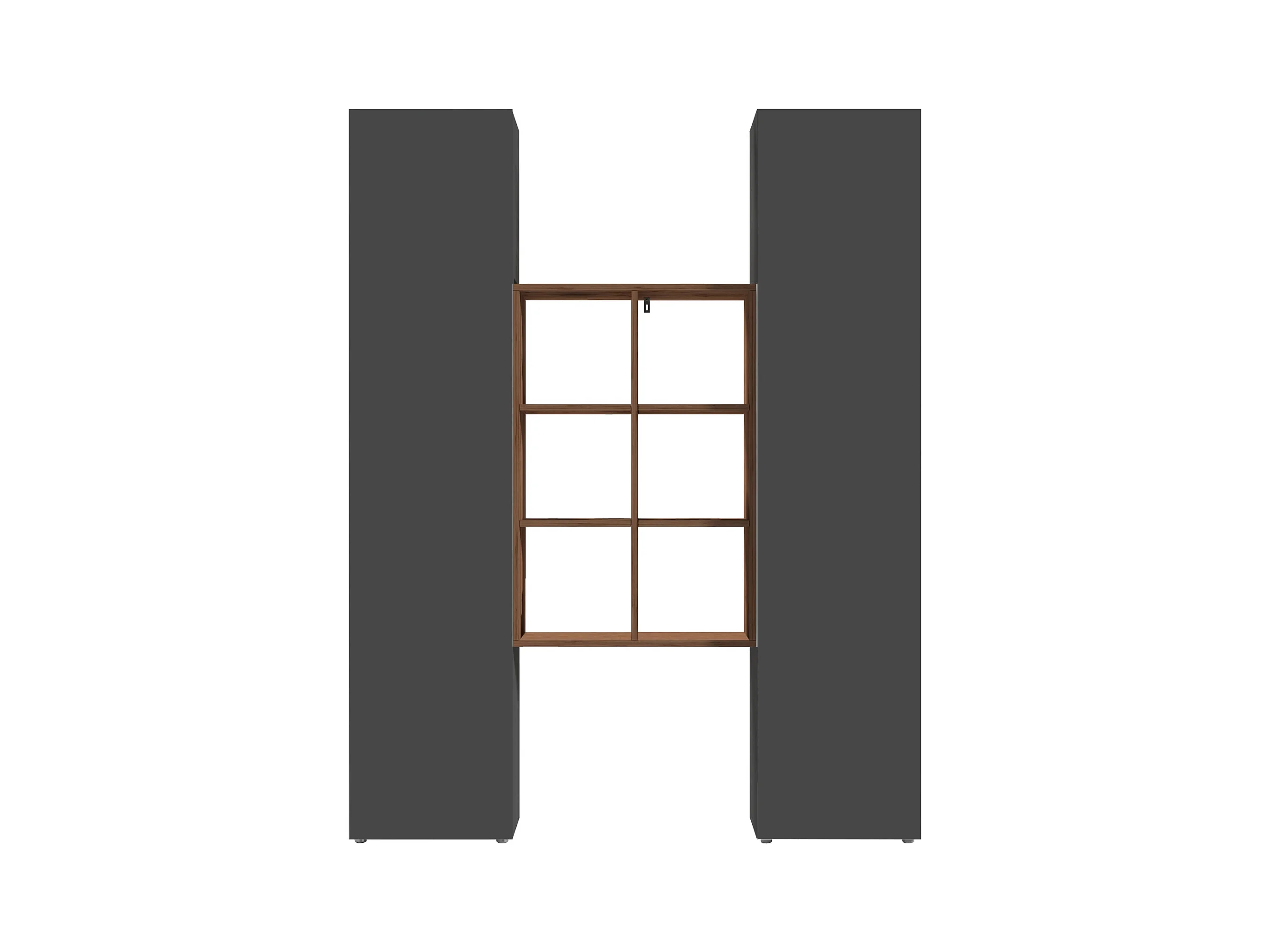 Set soggiorno Maruska con libreria e 2 colonne antracite opaco e rovere 170x30x180 cm