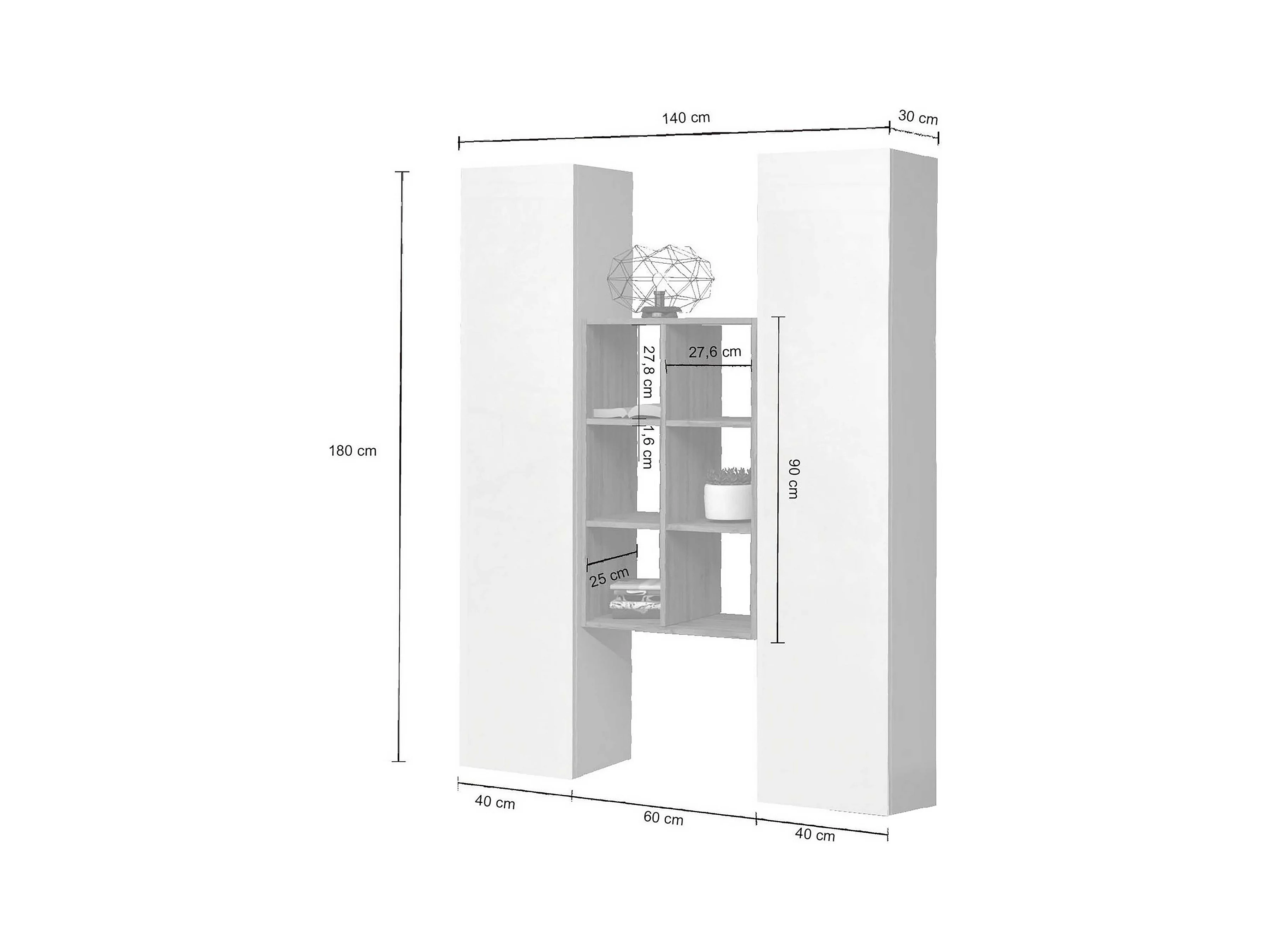 Armadio colonna sospeso - Grigio - Collezione SWITCH - 30x120 cm - Design moderno