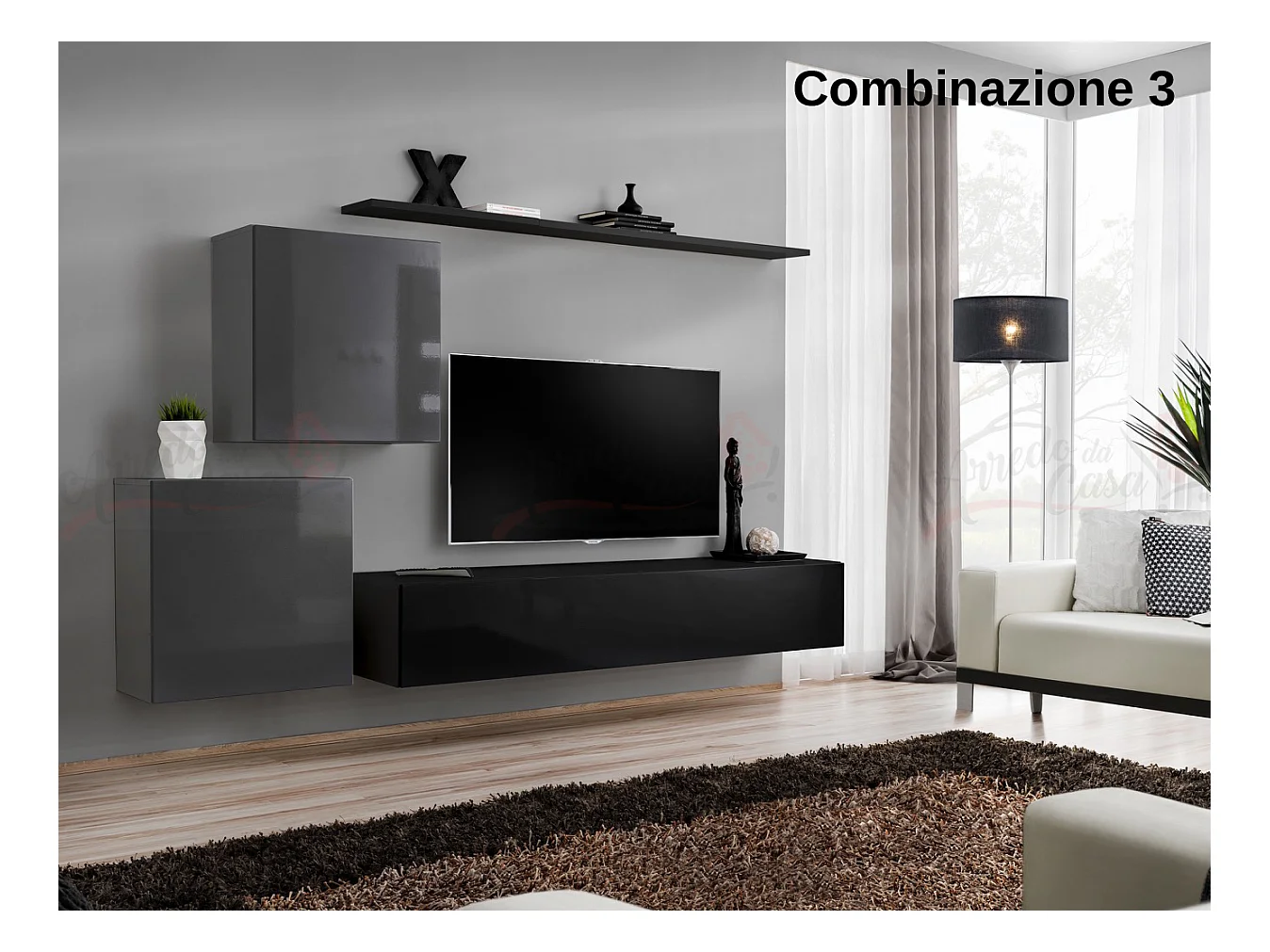 Parete attrezzata moderna sospesa PAP45 330x160 grigio e nero
