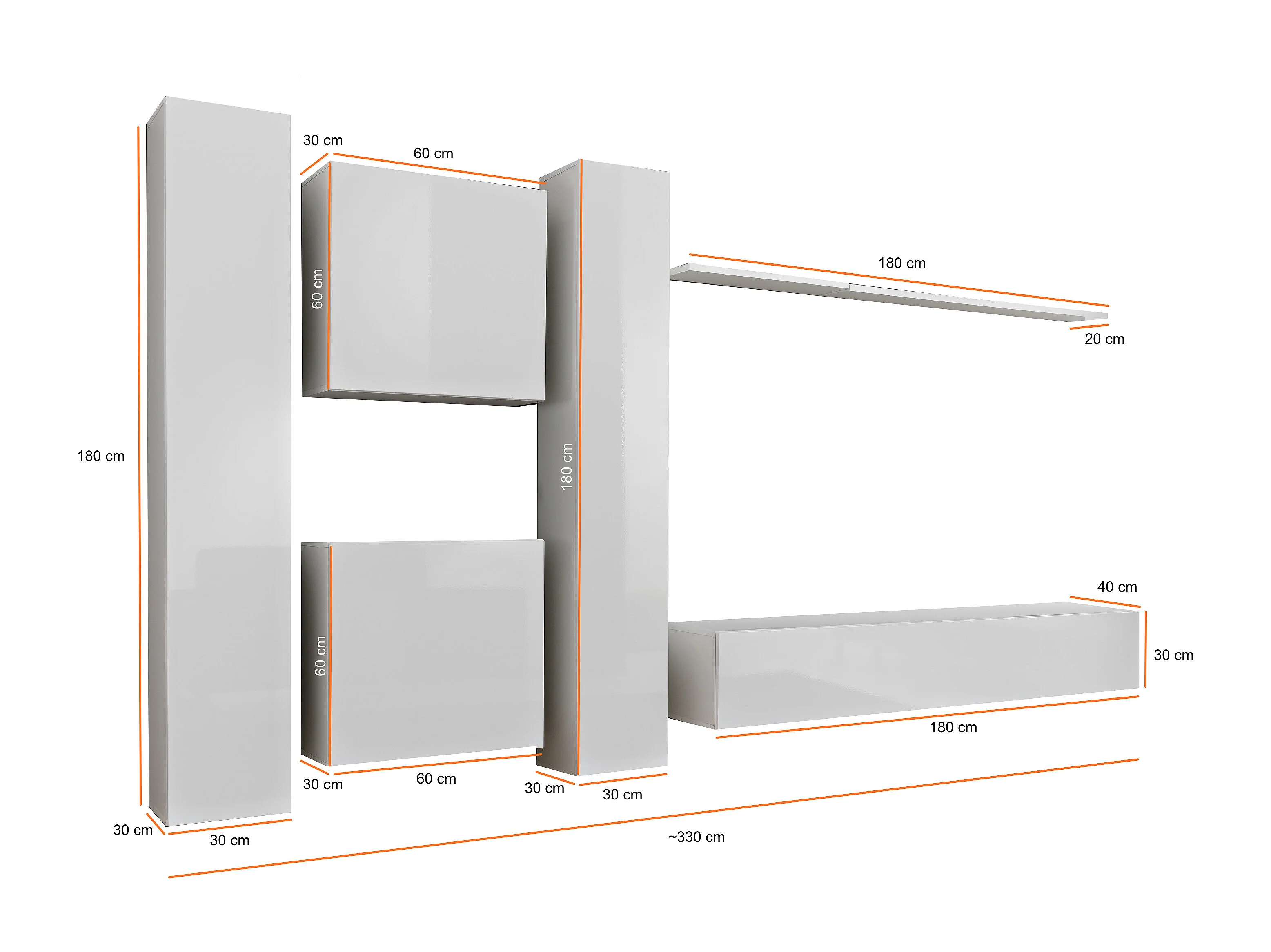Parete attrezzata moderna sospesa PAP50 330x180 rovere e nero