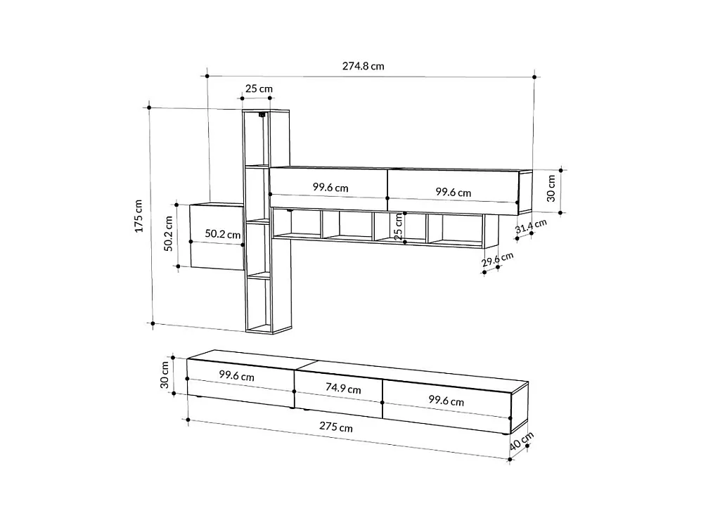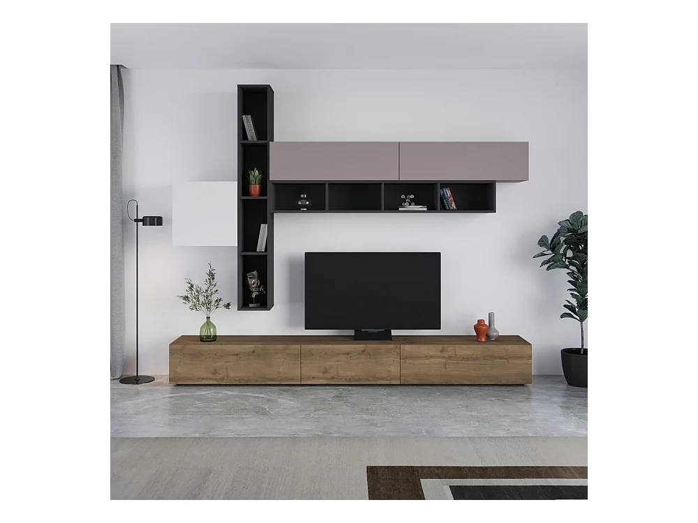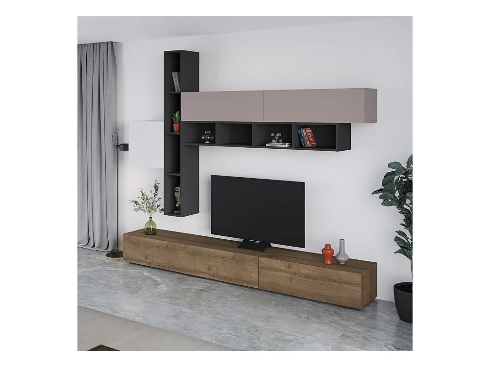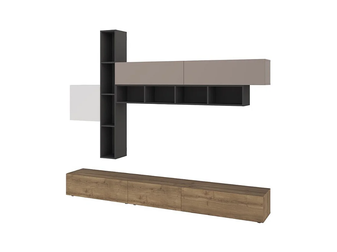 Parete attrezzata noce antracite bianco e tortora Fashion 275x40x205H